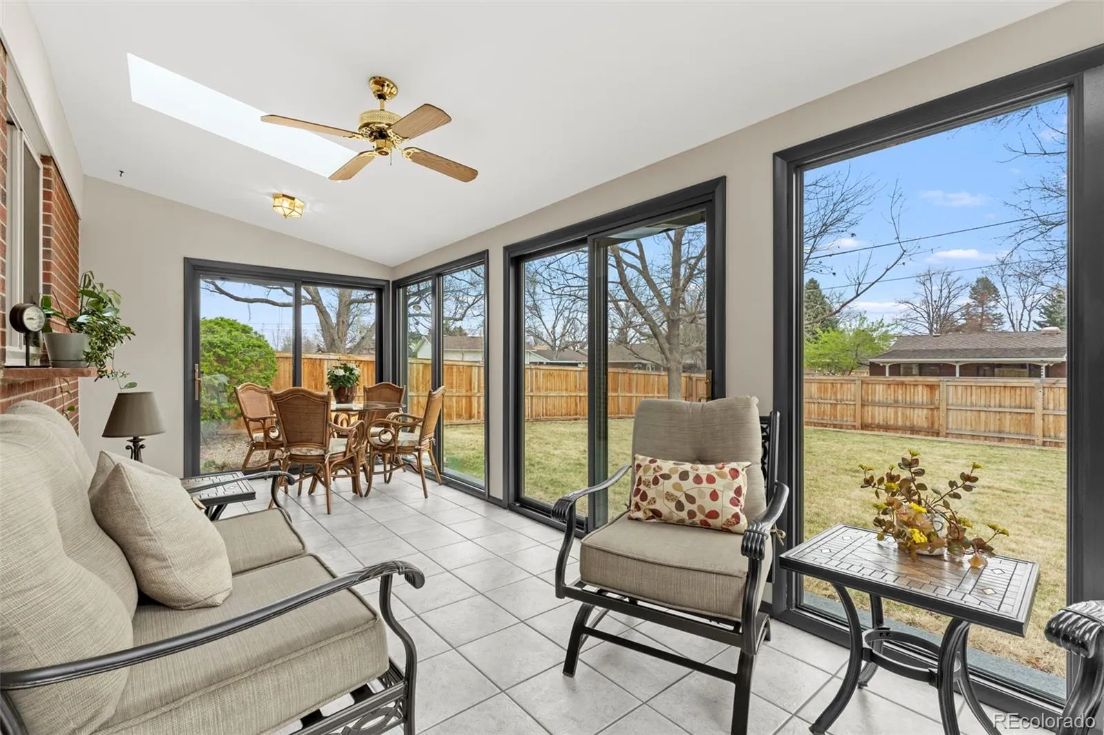 The updated kitchen opens to a bright and airy sunroom featuring skylights, floor-to-ceiling windows, and two sliding glass doors that overlook the beautifully manicured, private backyard. The main level also offers a cozy family room with a fireplace, a spacious primary suite with ensuite bath, two additional bedrooms, and a full bathroom.