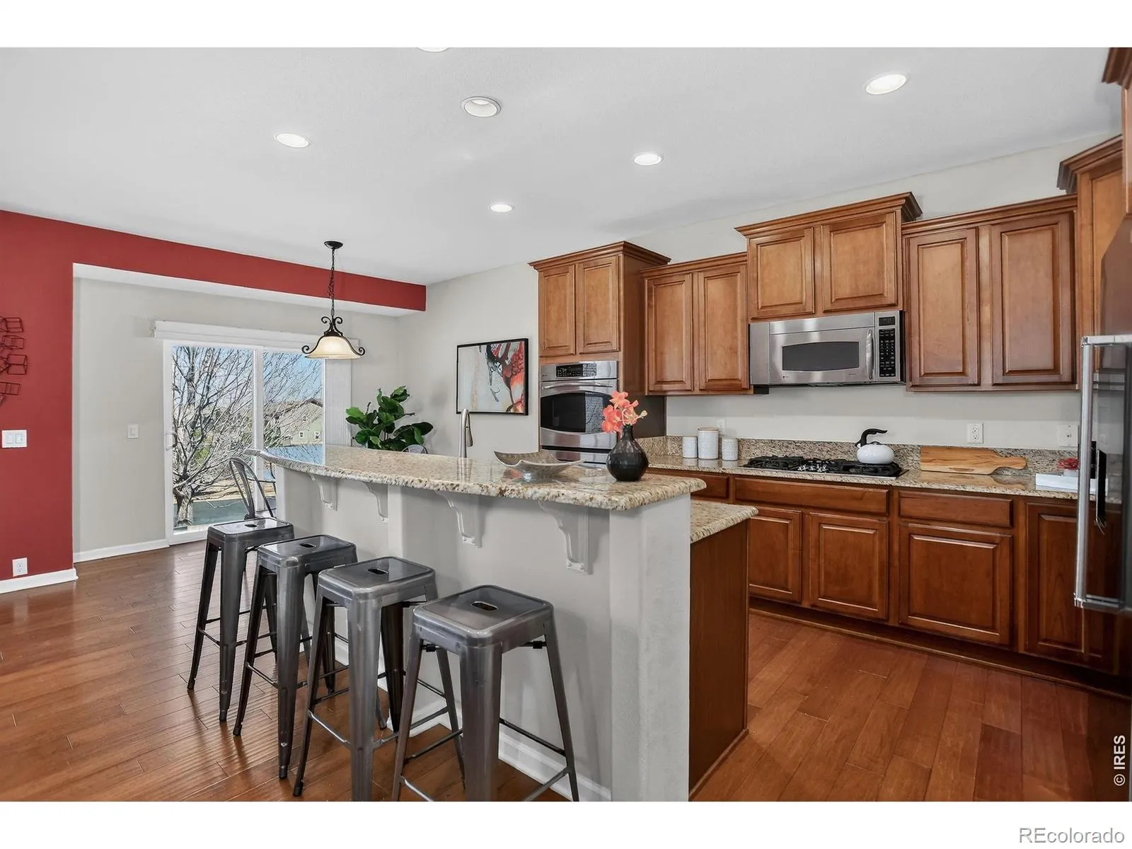 Enjoy single level living at it’s finest in this impeccable Anthem Highlands ranch floor plan. Enter from the covered front porch to gleaming hardwoods, vaulted ceilings and tons of light. As you enter the home the office is on your left and both formal living and formal dining are on your right. The gourmet kitchen features granite counters, double ovens, gas cook-top, huge pantry, a breakfast bar that seats 4, and a wonderful nook with patio doors leading to the yard. The kitchen is wide open to the family room featuring a gas fireplace. There are fantastic views from the yard. The Primary bedroom has a wonderful 5 piece, spa-like bath and a huge walk-in closet. There are additional 3 bedrooms and 2 full baths. This resort-like community features a 32,000 sq. ft. Rec/Fitness Center, 2 pools, 22 parks, 48 miles of trails, tennis & basket-ball courts.