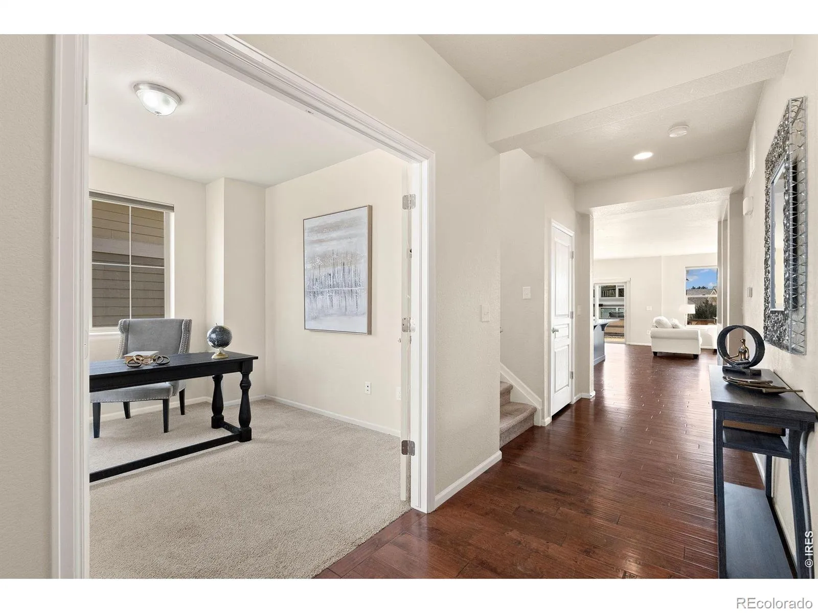 Stunning two-story home in an unbeatable location, just two blocks from Boyd Lake and ideally positioned between Horseshoe Lake and Equalizer Lake. Enjoy breathtaking mountain views and exceptional curb appeal, highlighted by a spacious and inviting front porch-perfect for relaxing mornings or Colorado sunsets.This home offers the perfect balance of convenience and lifestyle, located just one block from High Plains School (K-8) and surrounded by multiple walking and biking trails. You’re also less than one mile from shopping, dining, and entertainment, with Loveland Sports Park just minutes away. Easy access to I-25-only five minutes-makes commuting a breeze.Step inside to a bright and open floor plan featuring beautiful hardwood floors and thoughtfully designed living spaces. The kitchen is both stylish and functional, complete with granite countertops, stainless steel appliances, and ample cabinetry-ideal for both everyday living and entertaining. Central A/C and ceiling fans provide year-round comfort.Seamlessly extend your living space outdoors through the glass door connecting the dining area to a covered patio deck-perfect for indoor-outdoor dining, entertaining, or simply enjoying Colorado’s beautiful weather year-round.Upstairs, the spacious primary suite offers a true retreat with stunning mountain views, including views from the soaking tub. The luxurious five-piece bathroom and generous walk-in closet complete this private retreat. Additional bedrooms are well-sized, offering flexibility for family, guests, or a home office.The fully finished three-car garage provides excellent space for vehicles, storage, or a workshop. Step outside to a private yard, perfect for entertaining, relaxing, or enjoying Colorado’s outdoor lifestyle.With its prime location near lakes, trails, top-rated schools, and everyday conveniences, this home delivers the best of Northern Colorado living.