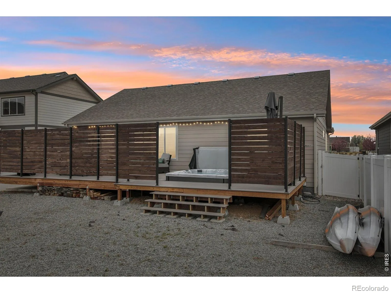 Sellers Are Offering a $5000 Concession at Closing to Buyers (Rate Buydown or Closing Costs!) Simply amazing! 4 Year Old without the Crying! Located in southeast Loveland! Built new in 2020, now completely updated, no builder grade home, here! Step inside to a stunning beautifully maintained home! Amazing kitchen has a huge island, brand newer cabinets with soft close & roll out drawers, sleek countertops, updated lighting, double trash and brand new stainless appliances. The open layout flows seamlessly! This home is no longer builder grade! Updated bathrooms, all new flooring throughout! Need room to expand? Full unfinished basement has some framing. Enjoy a very private Trex deck that makes it your own private, peaceful retreat. Brand new hot tub is negotiable. Backyard is Xeriscaped. Ideally located directly across the street from the neighborhood park and close to everything in east Loveland! Super easy commute to I-25, shopping, schools, restaurants and soon to be grocery stores! This home combines comfort convenience and charm in one super cute package!