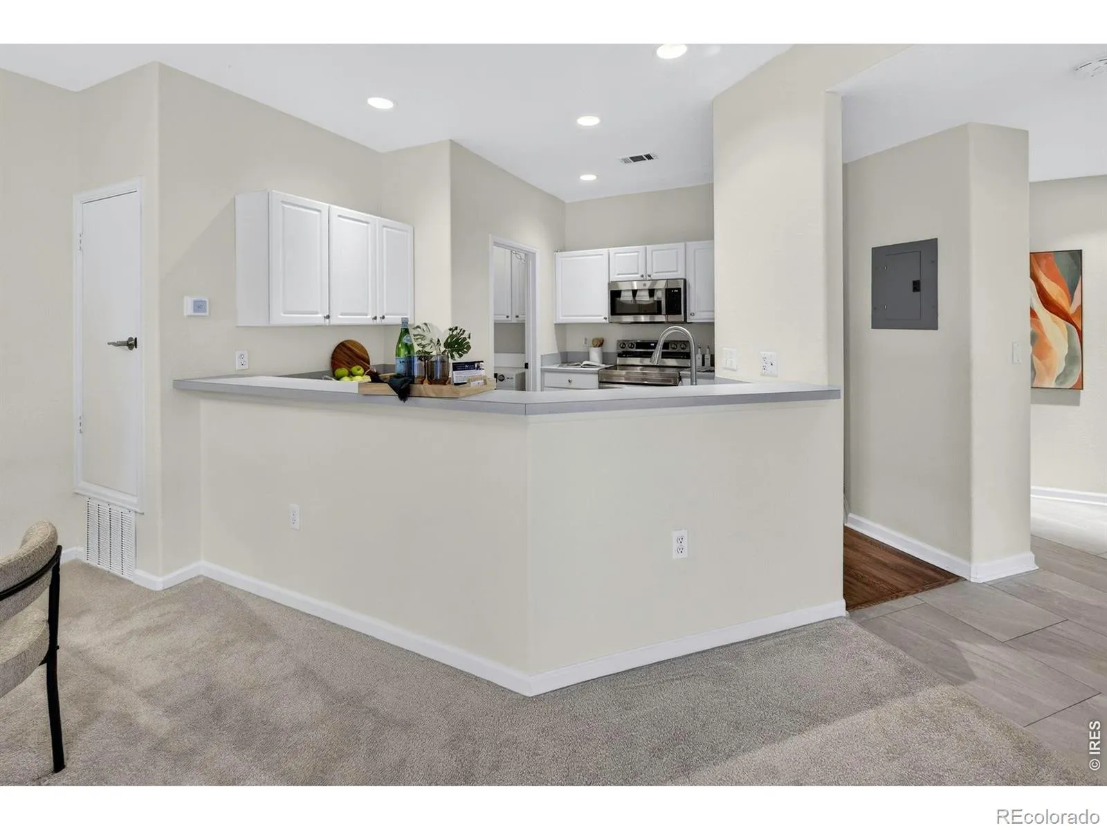 Move right into this remodeled sunny & bright 2 br unit with Flatiron views! Fantastic location – you are literally steps away from shopping, dining, Starbucks, and the library. The owner has taken great care in this home and has put in new carpet, new LVP flooring, new light fixtures, new shower stall, new handles and faucets, BRAND NEW appliances – washer, dryer, range/oven, dishwasher, microwave and refrigerator. There is one underground parking spot, a 6×5 storage closet next to parking spot plus another storage closet off the balcony. The HOA includes trash, water/sewer, snow removal and includes a pool, hot tub and clubhouse with exercise room.