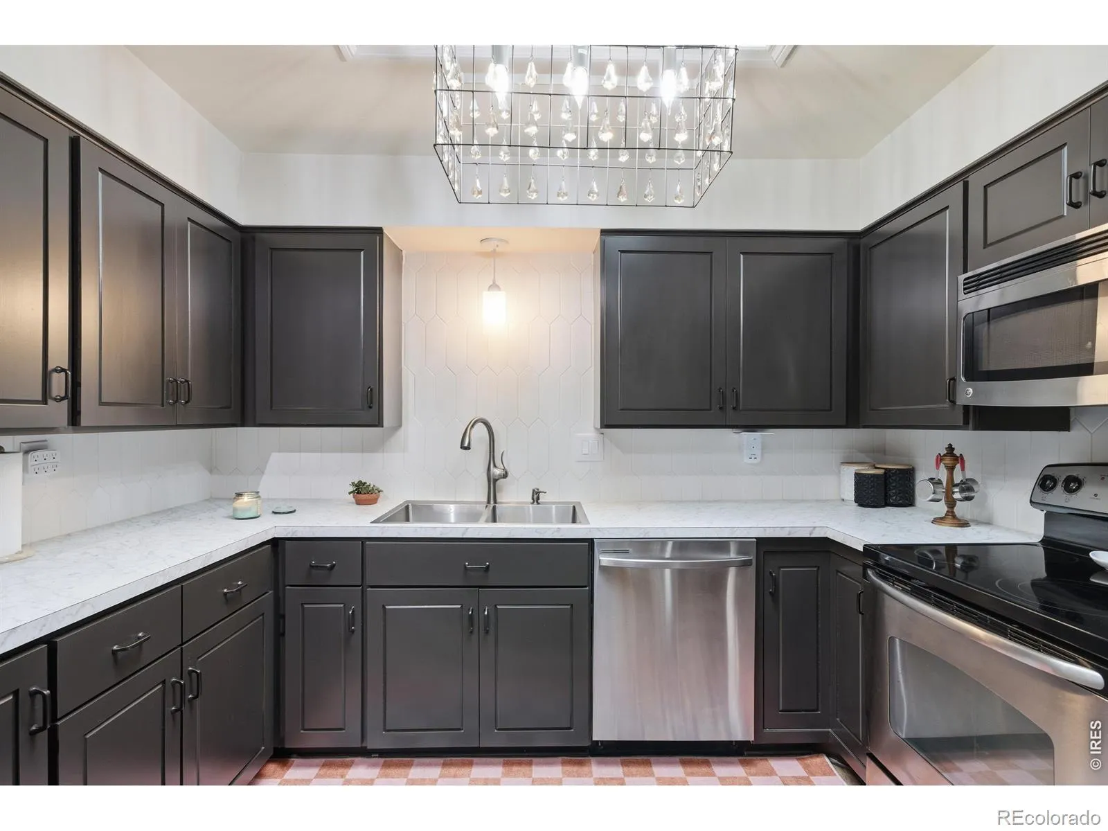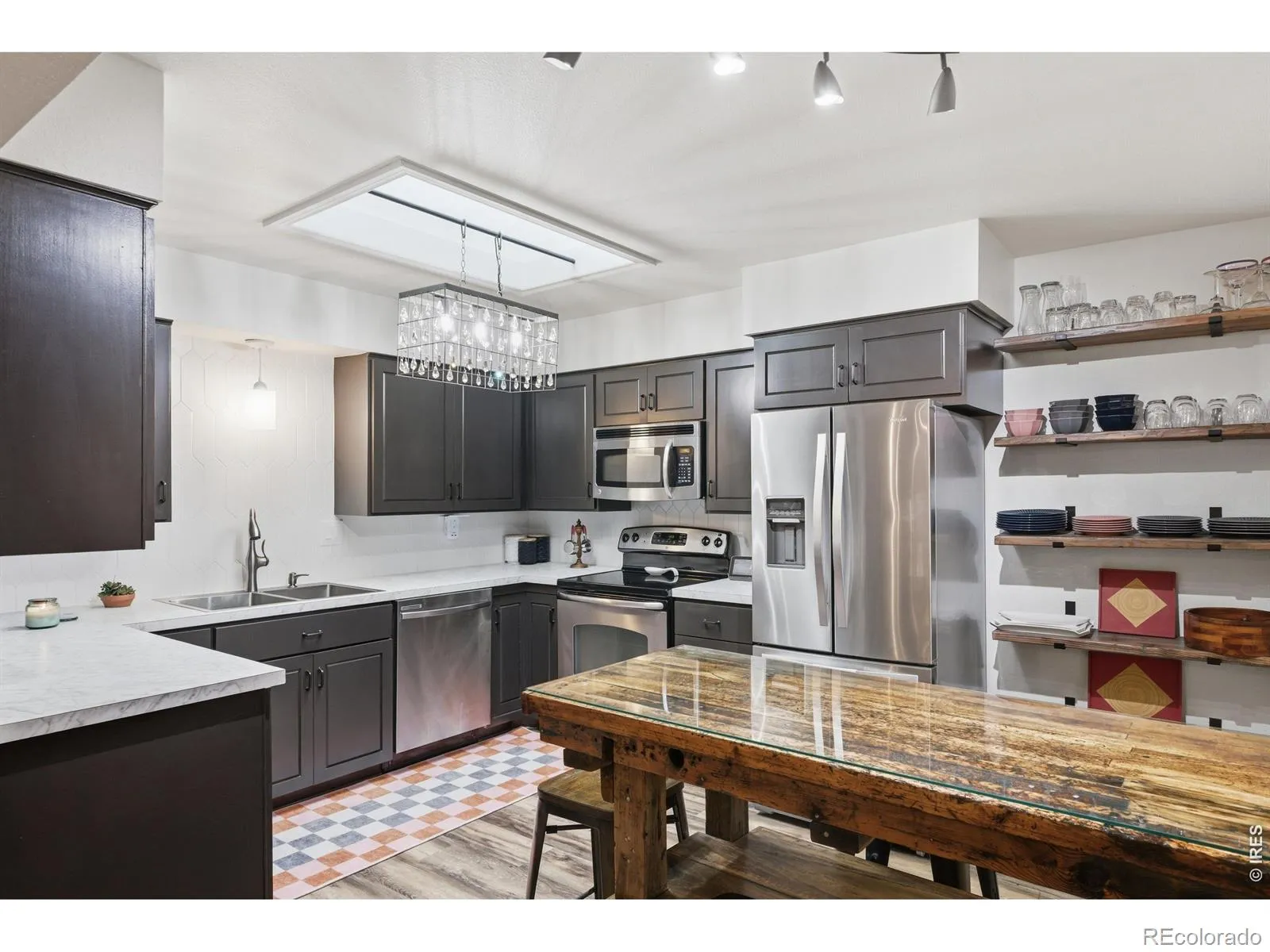 Welcome to 4715 W 12th St in Greeley, a beautifully updated 2 bed, 2 bath corner unit townhome offering comfort, privacy & convenience. With only one neighboring unit, this home provides a quiet setting while still being close to everything. Inside, you will find an open concept layout filled with warm natural light, enhanced by a skylight in the kitchen & large windows throughout. The living room features a cozy gas fireplace & elevated views from the home’s unique position on a gentle hill.The kitchen & living spaces flow seamlessly, showcasing modern finishes, custom light fixtures & a thoughtfully selected paint palette. Both bedrooms are spacious yet inviting, with the primary suite offering a relaxing sunken tub. The secondary bathroom features a large stall shower with a built in seat. Enjoy a private backyard oasis surrounded by mature shrubs & trees, with beautifully maintained landscaping handled by the HOA. Additional highlights include a 2 car garage with epoxy flooring & ceiling mounted storage racks for added functionality. Located just across from Greeley Country Club golf course & within walking distance to shopping, dining & a local brewery, this home offers the perfect blend of lifestyle & location.