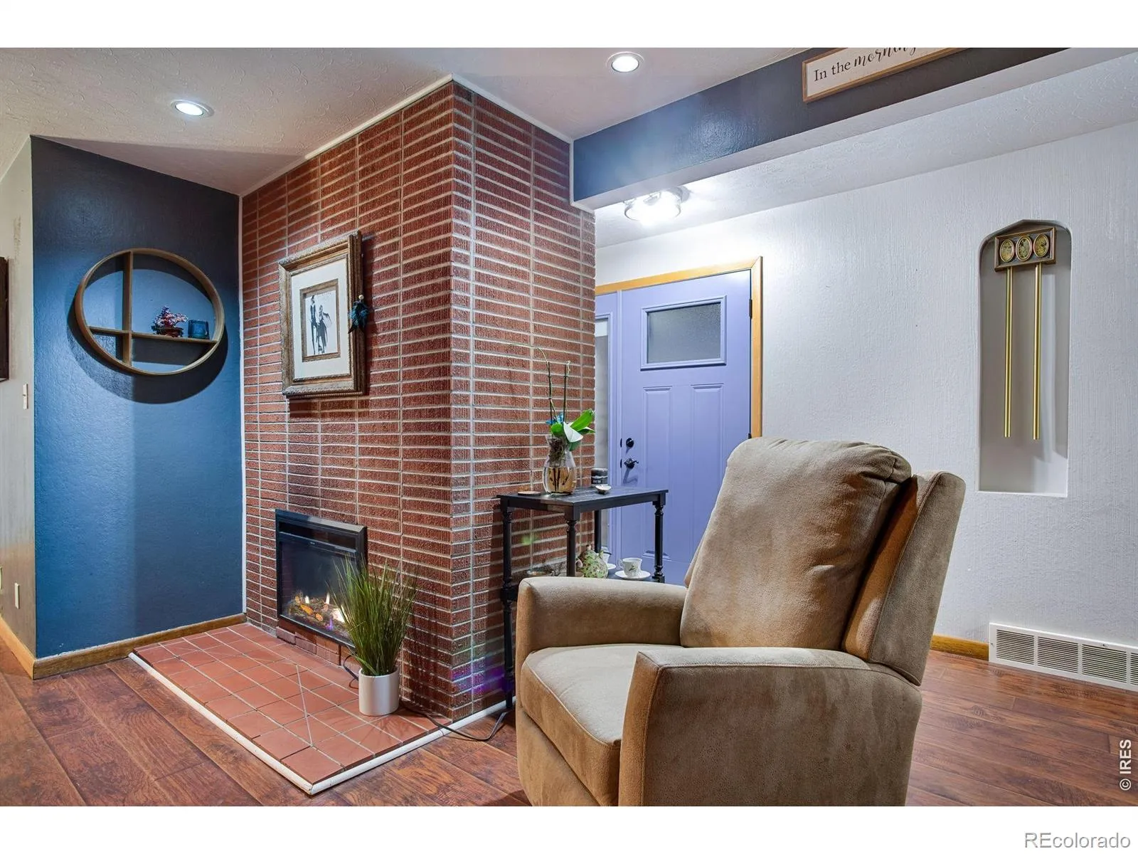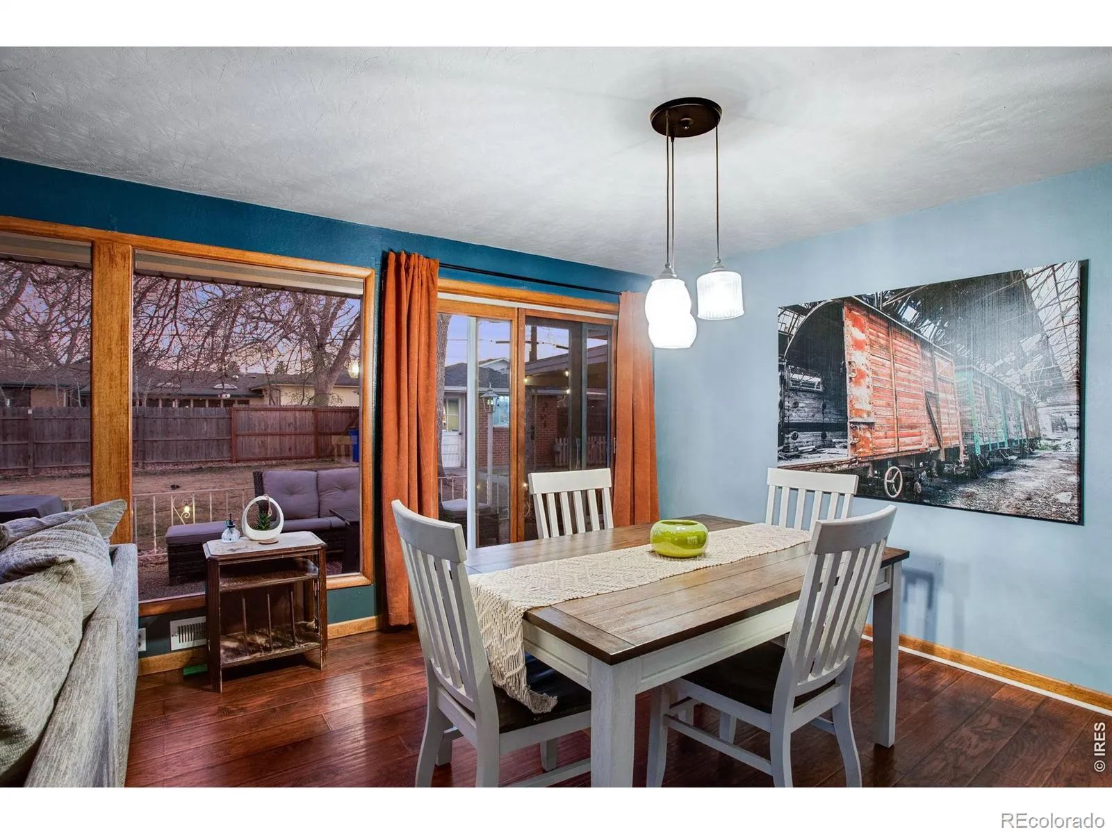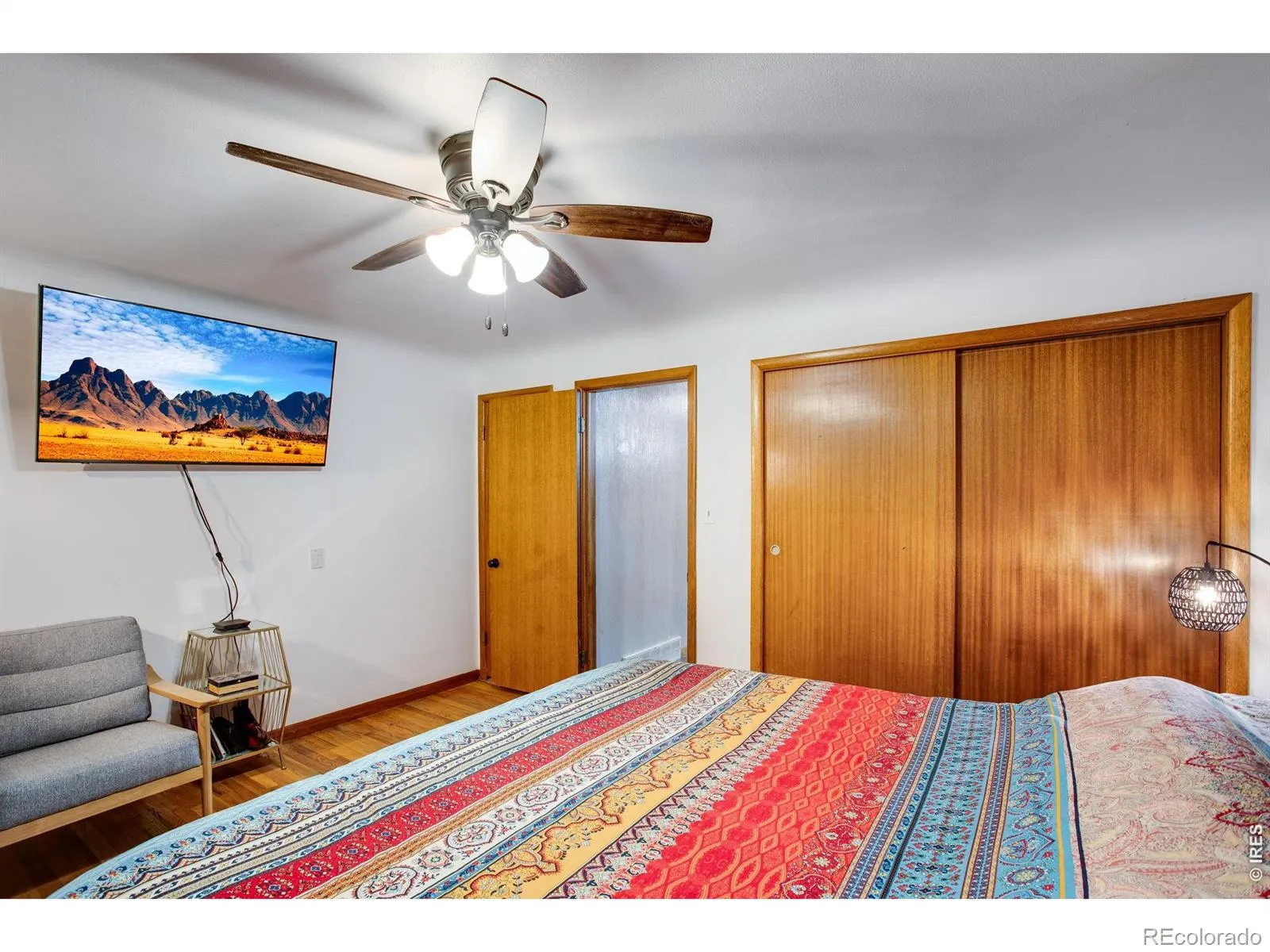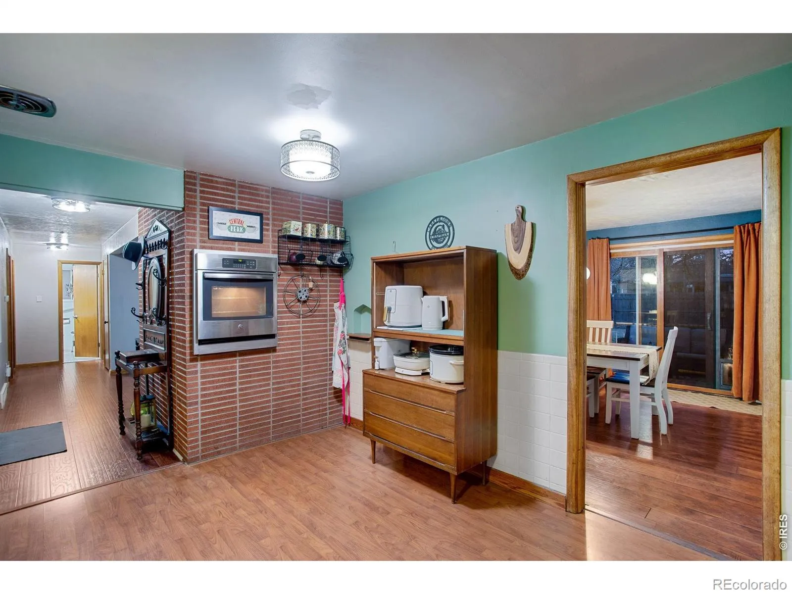 Beautiful mid-century modern 4-bed, 2-bath brick ranch in the heart of the Maplewood subdivision, directly across from Maplewood Elementary School and just blocks from North Colorado Medical Center. Built in 1956, this home showcases the craftsmanship of its era with elongated brickwork at both fireplaces and the kitchen’s wall-oven niche built into the original mid-century brick chimney structure, solid materials, and generous room sizes rarely found today.The main living area is filled with natural light from new 2025 south-facing bronze-coated picture windows, creating a warm, inviting space for everyday living. Wood-laminate flooring flows through the living and dining rooms, and the kitchen blends mid-century character with modern updates including a newer electric cooktop. The main bath features updated countertops and timeless tilework.Three main-level bedrooms offer comfortable proportions, while the finished basement adds a large 15′ 23′ rec room-big enough for a regulation pool table-plus a non-conforming 4th bedroom, 3/4 bath, extensive storage, and a laundry area (washer/dryer included). Two classic fireplaces (one up, one down) anchor each living space.Outside, the nearly quarter-acre fully fenced lot includes mature shade trees, a covered patio, relaxing hot tub, and a 14′ 14′ brick workshop with power. The oversized 2-car garage provides excellent storage with generous built-ins.A 2025 whole-house solar system (approx. 6.6 kW across 22 panels) offers exceptional energy efficiency; buyer to assume the existing loan, which is typically less than a standard power bill. Roof is only 8 years old. This is a well-cared-for, move-in-ready home with the quality, character, and updates buyers look for in this neighborhood.