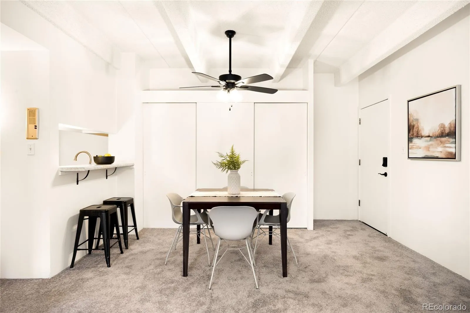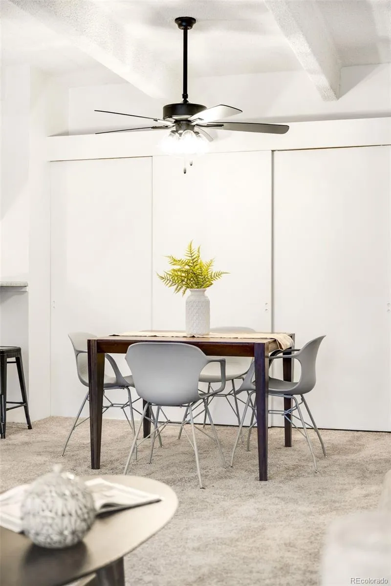 Sun-drenched and effortlessly inviting, this Congress Park condo offers an exceptional blend of indoor comfort and outdoor living with a rare, expansive private patio. Bathed in warm afternoon light, the open living area features sliding glass doors that create a seamless connection to the fenced outdoor retreat. Freshly updated with new carpeting, new light fixtures and neutral paint, the thoughtfully designed layout includes a dining area that flows easily into the kitchen. A spacious bedroom with ample closet storage is complemented by a renovated bath with a dual vanity. A reserved garage space and private storage locker add everyday convenience. Residents enjoy access to building amenities, including an indoor pool, hot tub, fitness center with a sauna and a community lounge with games and a kitchenette. Ideally located near Denver Botanic Gardens, Cheesman Park, City Park and neighborhood dining, this residence also benefits from an HOA that covers most utilities.