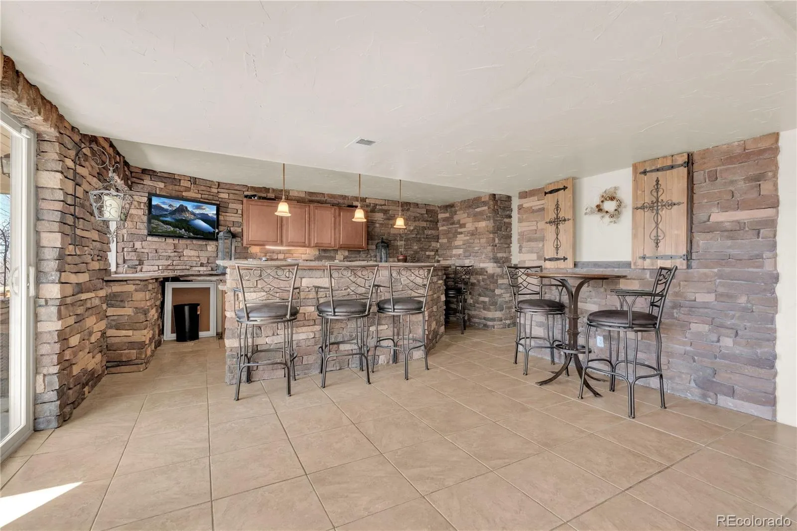 Tucked into the rolling landscape of Castle Rock, this distinctive 6-bedroom, 6-bath residence offers over 6,400 square feet across four thoughtfully designed levels, blending architectural character with exceptional indoor and outdoor living. From the moment you arrive, the home’s striking stonework, turreted design, and private front courtyard—reminiscent of a European-style palazzo—set the tone. Inside, rich hardwood floors flow throughout, complemented by three fireplaces, expansive living spaces, and a layout designed for both entertaining and everyday comfort. The home features two staircases leading to the upper level, including a dramatic curved staircase that creates a stunning architectural focal point. The two-level primary suite offers a true retreat with its own fireplace and generous space to unwind, while an additional main-level suite provides flexibility. Designed for those who love to entertain, the home includes an oversized dining room ideal for hosting, as well as a walk-out lower level complete with a bar and recreation space. Outdoor living is where this property truly shines. Enjoy multiple outdoor spaces including two balconies, a front courtyard patio, and a rear patio, all positioned to take in the surrounding scenery. The professionally landscaped backyard features a custom stream that flows across the property, a pond, waterfall features, and a gazebo, creating a peaceful, resort-style setting. The home backs to open space with no homes directly behind, offering a sense of privacy and expansive views, along with unforgettable Colorado sunsets. Additional features include a three-car garage, multiple living areas for privacy and flexibility, and a layout that balances grand entertaining with quiet retreat.