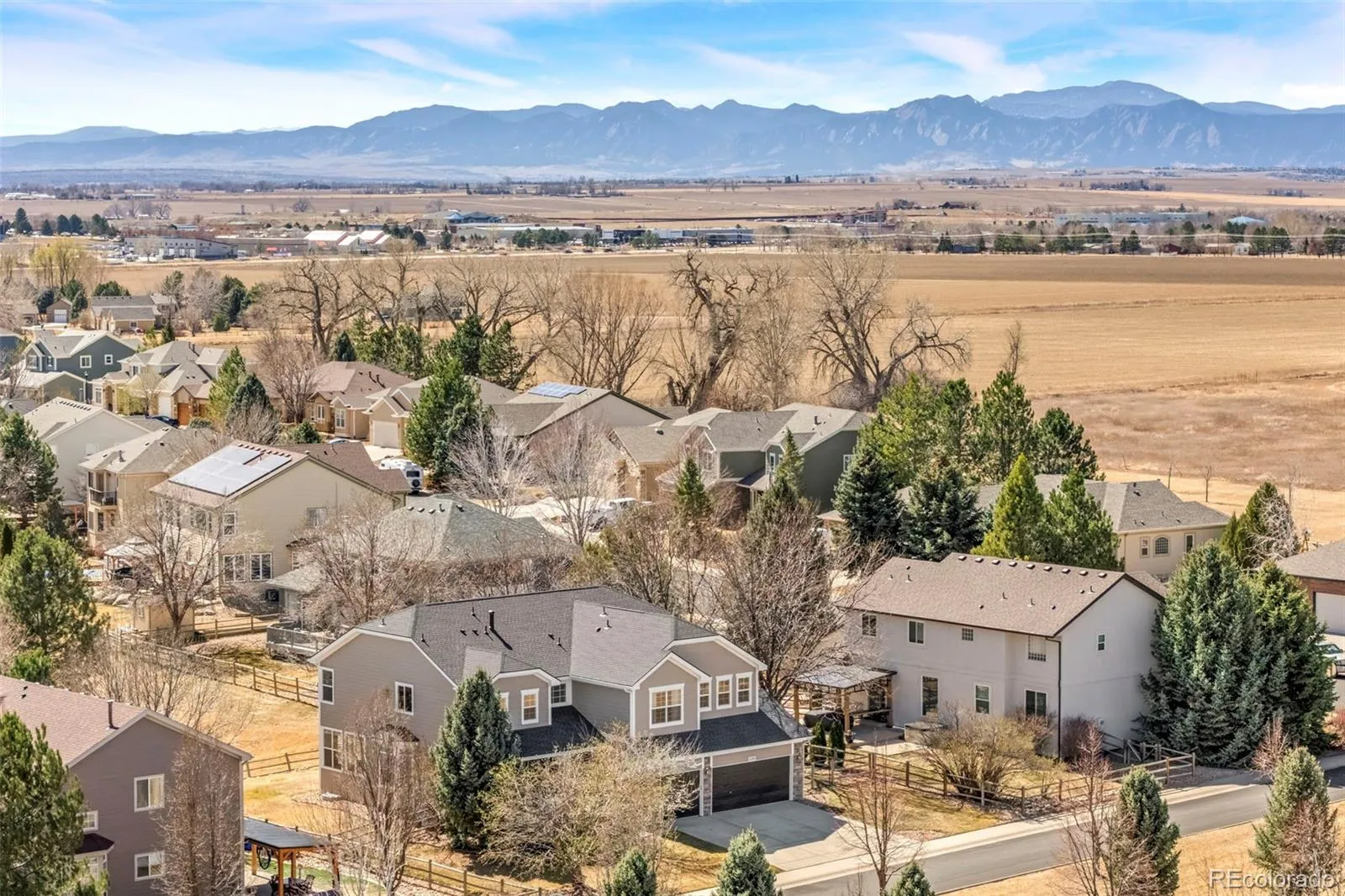 Welcome to this stunning, thoughtfully designed 2-story home in a highly desirable, friendly, retreat-like neighborhood. This 2003 “Champagne” model by Ryland Homes offers an open layout filled with natural light and elegant living spaces. The impressive curb appeal features a beautifully landscaped lot with fragrant trees, a flagstone patio, and a covered porch—creating an ultra-private, inviting setting. Inside, a grand foyer and grand staircase open to formal living and dining rooms, plus a dramatic two-story family room with a wall of windows and cozy fireplace. The spacious kitchen is perfect for entertaining with new quartz countertops, abundant cabinetry, a butler’s pantry, and seamless flow into the main living area with built-in surround sound. French doors lead to a large main-level office. Upstairs offers 4 bedrooms, including two with a Jack-and-Jill bath and a third with its own ensuite. Unwind in a private retreat, in a luxurious primary suite with spectacular views, vaulted ceilings with built-in speakers, a 3-sided fireplace, a five-piece bath with a stunning jetted tub, and an impressive walk-in closet with island. See multi-city fireworks shows on 4th of July or hot air balloons going overhead! Enjoy the serene backyard with a large patio backing to open the greenbelt—no rear neighbors—and mature landscaping with a full sprinkler system. Additional highlights include an oversized 3-car garage, energy-efficient UV window screens, whole-house humidifier and surge protector, and an unfinished basement. Major updates: new roof, gutters, exterior paint (2024); garage opener (2025); furnaces, A/C, water heater, and more (2026). Ideally located on a 0.25-acre lot near parks, trails, Union Reservoir, shopping, I-25, DIA, and Mead Schools in St. Vrain District. Low Weld County taxes add value. Homes like this rarely come available. This home offers comfort, privacy, efficiency, and convenience—an exceptional lifestyle opportunity you won’t want to miss.