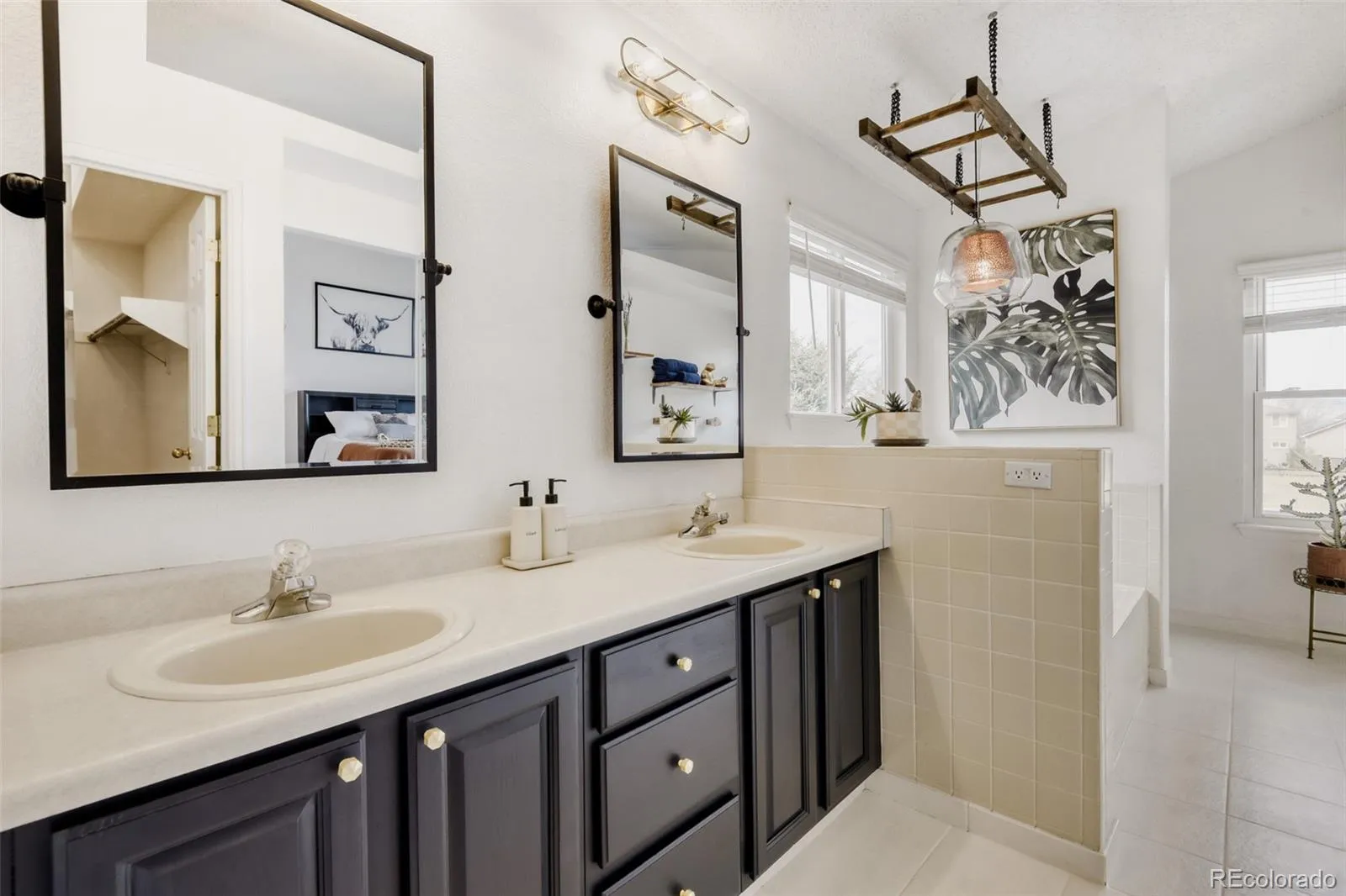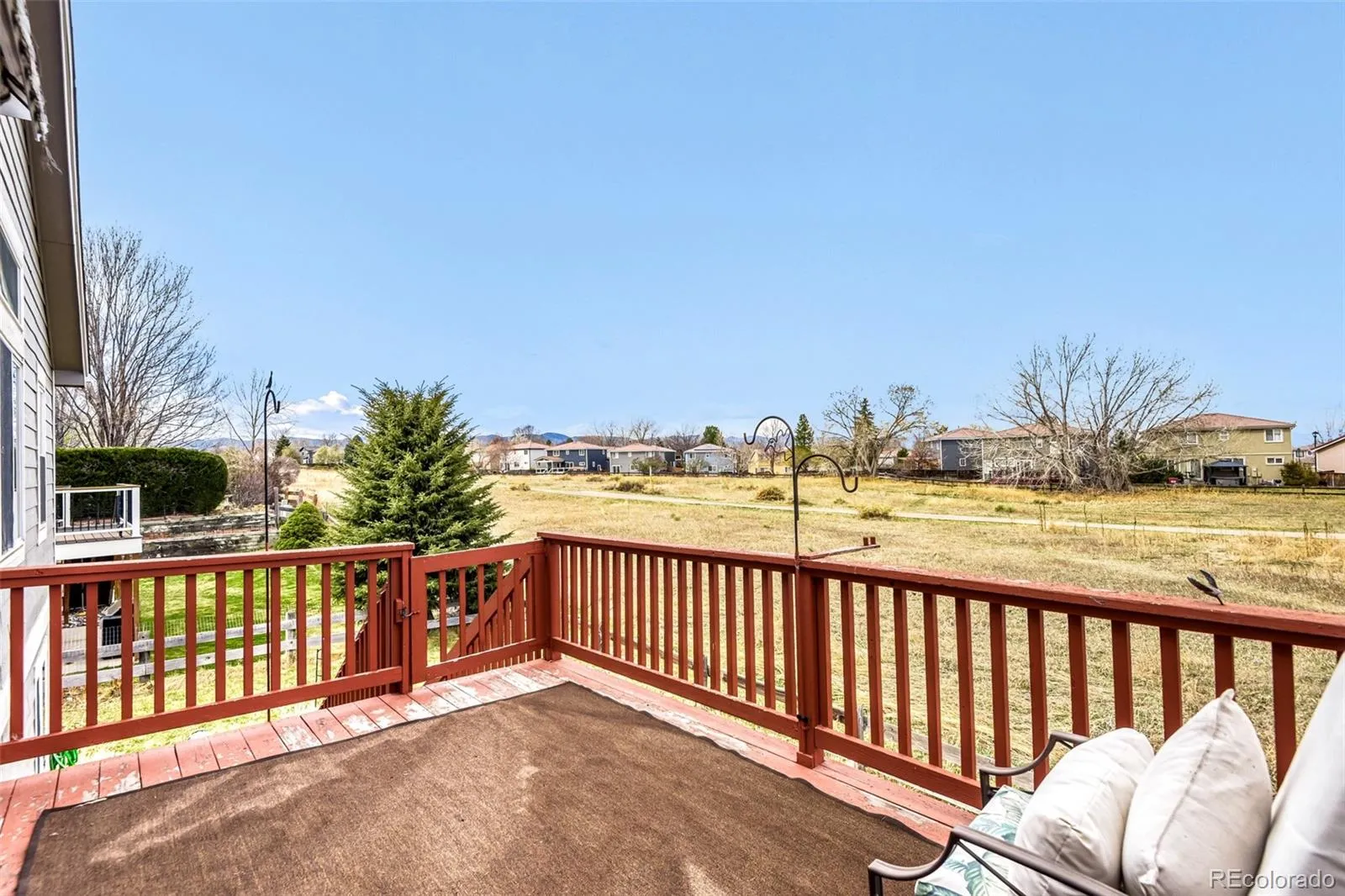 As you enter the home you’ll immediately discover the great room highlighted by vaulted ceilings, architectural beams, and the one-of-a-kind, custom built pipe shelving. Kitchen features stainless steel appliances, hardwood floors, warm skylight, and storage surrounding you on all sides. The sizable living room includes a gas fireplace attached to a stylized overmantel, and connects to the porch — the best vantage point for viewing sunsets and snowy winter landscapes. The undeveloped nature will never be built-out, a permanent fixture as part of the Highlands Ranch master planned community. French doors lead to the primary bedroom, gaze outside the expansive glass windows at the mountain views. Bedroom attaches seamlessly to your en suite 5-piece bathroom and oversized walk-in closet. Follow the hallway flanked by the custom laundry closet and sliding barnyard doors towards the other wing of the home, you’ll discover the second and third bedrooms adjacent to a full bathroom complete with recently updated sink and countertop.