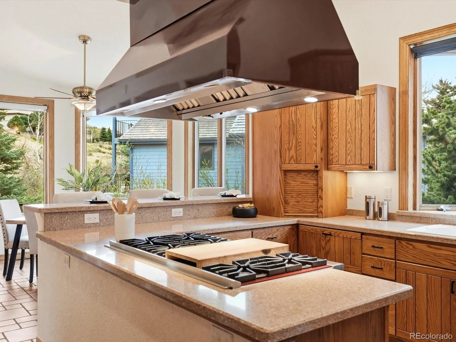 Set on a premium lot backing to open space, this 4,360 sq ft custom home delivers effortless main-level living with soaring vaulted ceilings that bring the big sky indoors. A residential elevator connects both levels with ease. Ideal for multigenerational living or everyday convenience. The main-level primary suite features an expansive walk-in closet and direct access to the sweeping wrap-around deck with a gas hookup for a grill and prewired for a hot tub, where unobstructed open space views and Colorado sunsets await. Multiple fireplaces create warmth and ambiance throughout both levels of the home. The oversized 3-car garage offers ample room for vehicles and all your Colorado adventure gear. A chef’s kitchen features Viking appliances- proof that every addition was chosen with intention.