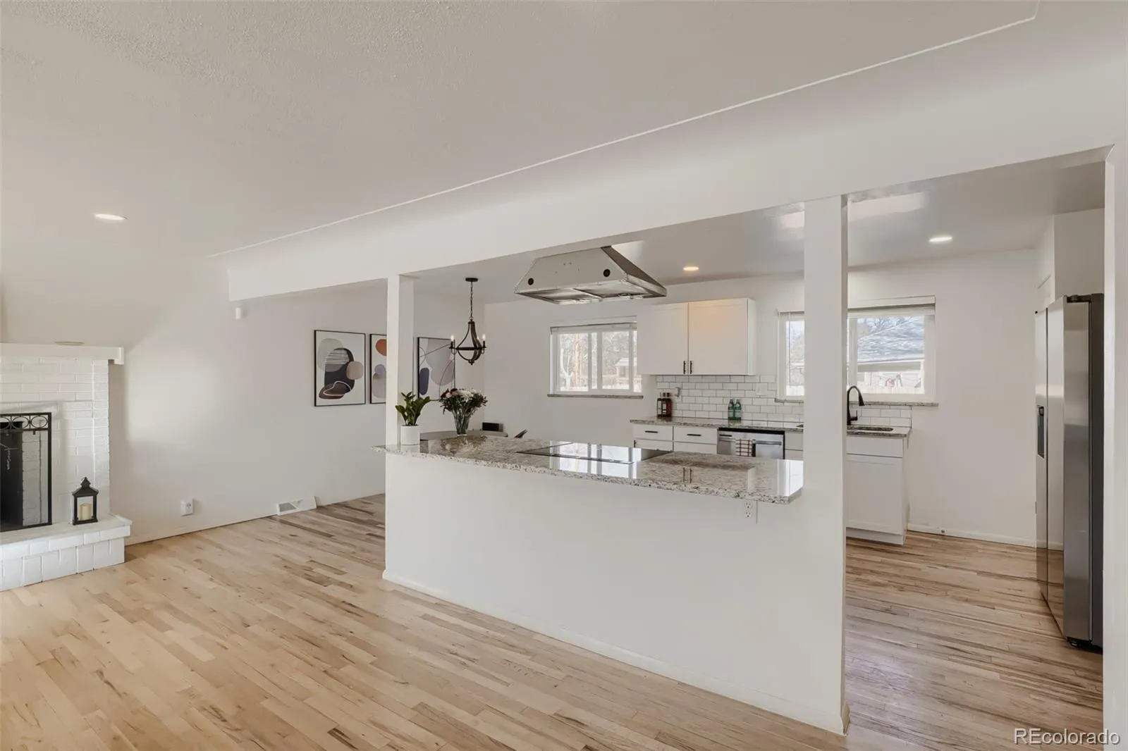 Updated, Lakewood Ranch situated on an oversized, West facing corner lot. Conveniently located less than a mile from Belmar Shopping District plus O’Kane Park right around the corner. An adorable front porch and beautiful red door welcome you to your new home. This residence boasts a sought after, open floor plan with tons of natural light and cozy fireplace. Rich hardwood flooring flows throughout the main living areas and into a well-appointed kitchen featuring a sizable island with cooktop, hood and modern stainless-steel appliances. The main floor showcases a beautifully updated, full bath and three bedrooms. The fully finished basement adds valuable living space, complete with an additional bedroom, updated/3/4 bathroom, designated laundry area and versatile flex room… office? storage? craft Room? Attention Garage people, the oversized/attached, two car garage provides many opportunities!