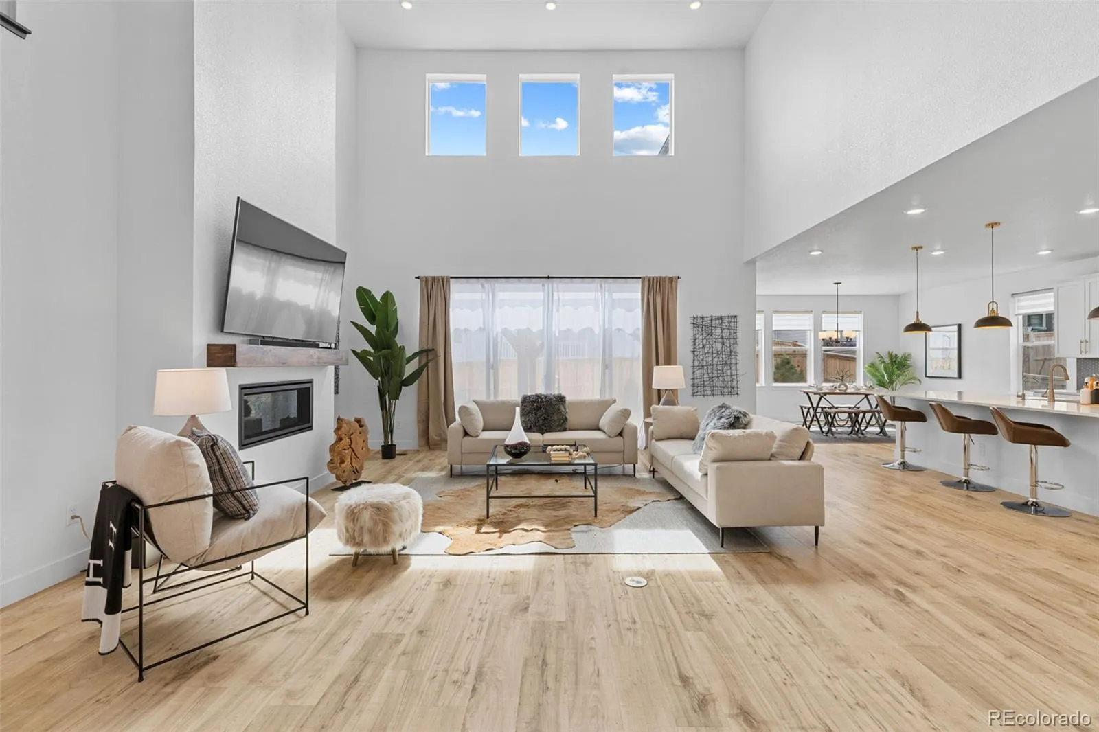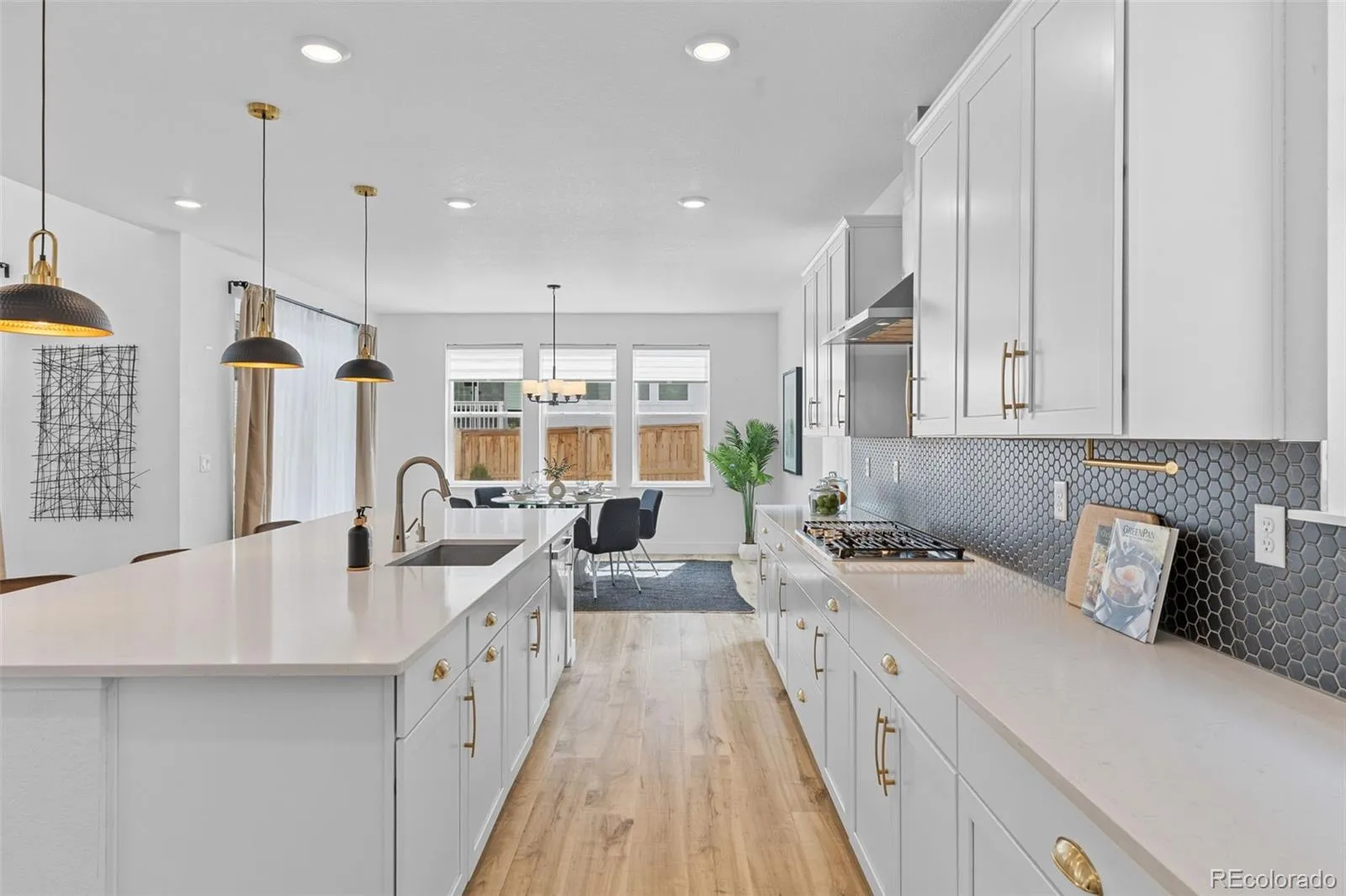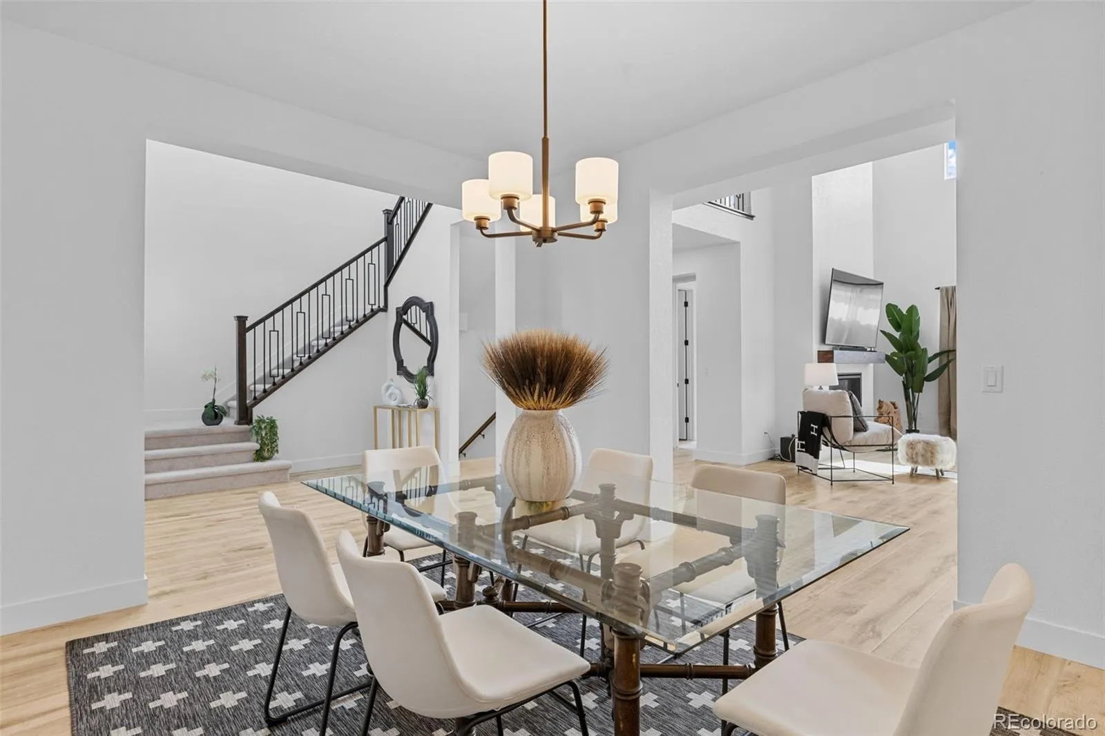 Welcome to the home of your dreams—the Keystone II, the most desirable model by Taylor Morrison at the Looking Glass. Built just two years ago, this home blends elegance and convenience. From the moment you arrive, you’ll fall in love with the impressive farmhouse-style exterior. Step inside to discover dramatic high ceilings, abundant natural light, and elegant, high-end finishes throughout. The main level flows seamlessly from the expansive living room to the formal dining area, impressive kitchen, and cozy breakfast nook. The living room is the largest in the neighborhood, featuring a gas fireplace and a center-meet sliding door that enhances indoor-outdoor living. The kitchen is every homeowner’s dream, complete with a massive island, elegant white cabinetry, modern backsplash, stylish hardware, gorgeous quartz countertops, high-end appliances, and a spacious walk-in pantry. The formal dining room is perfect for hosting holiday gatherings, while the breakfast nook offers a comfortable space for everyday meals. Also on the main level, you’ll find a bedroom with a ¾ bathroom that can also be your office AND a convenient powder room. Luxurious flooring throughout completes the magazine-worthy aesthetic. A contemporary iron and wood railing leads you upstairs. The massive primary suite is a true retreat- filled with natural light, spa-like bathroom features double shower, dual vanities, and elegant tile finishes, along with an impressive walk-in closet. Upstairs, you’ll also find two generously sized bedrooms with en-suite bathrooms and a versatile loft space. Step outside to a backyard designed for Colorado’s 300 days of sunshine—perfectly leveled with a large covered patio ideal for morning coffee or relaxing summer evenings. The community offers gorgeous brand new pool, several playgrounds, basketball, pickleball and tennis courts, dog park and endless trails. Easy access to I-25 and E-470. Why wait for new construction when this dream home can be yours today?