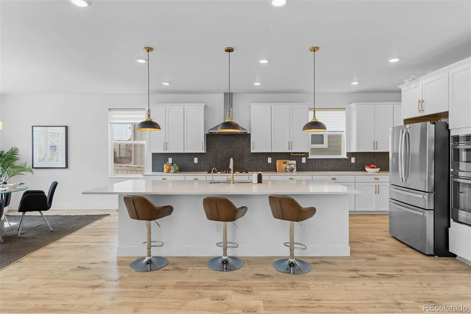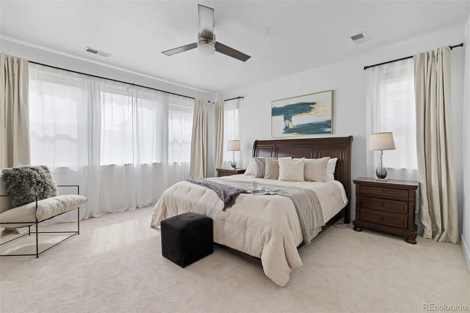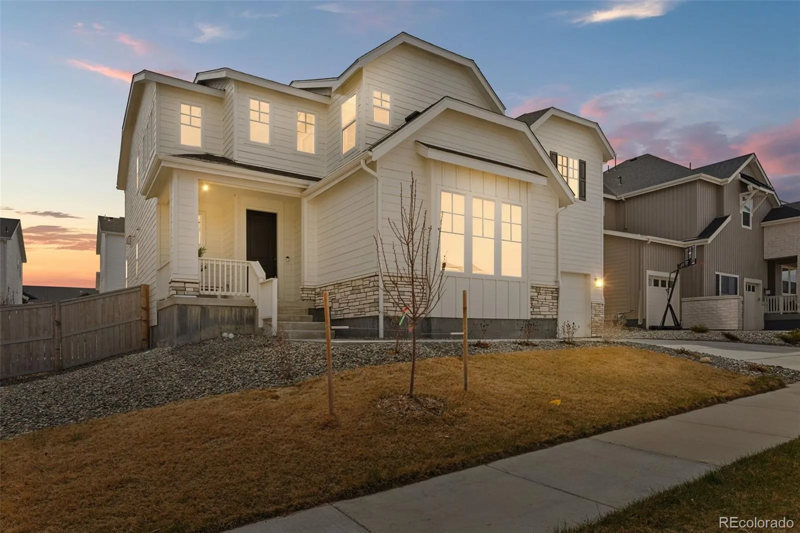 Welcome to the home of your dreams—the Keystone II, the most desirable model by Taylor Morrison at the Looking Glass. Built just two years ago, this home blends elegance and convenience. From the moment you arrive, you’ll fall in love with the impressive farmhouse-style exterior. Step inside to discover dramatic high ceilings, abundant natural light, and elegant, high-end finishes throughout. The main level flows seamlessly from the expansive living room to the formal dining area, impressive kitchen, and cozy breakfast nook. The living room is the largest in the neighborhood, featuring a gas fireplace and a center-meet sliding door that enhances indoor-outdoor living. The kitchen is every homeowner’s dream, complete with a massive island, elegant white cabinetry, modern backsplash, stylish hardware, gorgeous quartz countertops, high-end appliances, and a spacious walk-in pantry. The formal dining room is perfect for hosting holiday gatherings, while the breakfast nook offers a comfortable space for everyday meals. Also on the main level, you’ll find a bedroom with a ¾ bathroom that can also be your office AND a convenient powder room. Luxurious flooring throughout completes the magazine-worthy aesthetic. A contemporary iron and wood railing leads you upstairs. The massive primary suite is a true retreat- filled with natural light, spa-like bathroom features double shower, dual vanities, and elegant tile finishes, along with an impressive walk-in closet. Upstairs, you’ll also find two generously sized bedrooms with en-suite bathrooms and a versatile loft space. Step outside to a backyard designed for Colorado’s 300 days of sunshine—perfectly leveled with a large covered patio ideal for morning coffee or relaxing summer evenings. The community offers gorgeous brand new pool, several playgrounds, basketball, pickleball and tennis courts, dog park and endless trails. Easy access to I-25 and E-470. Why wait for new construction when this dream home can be yours today?