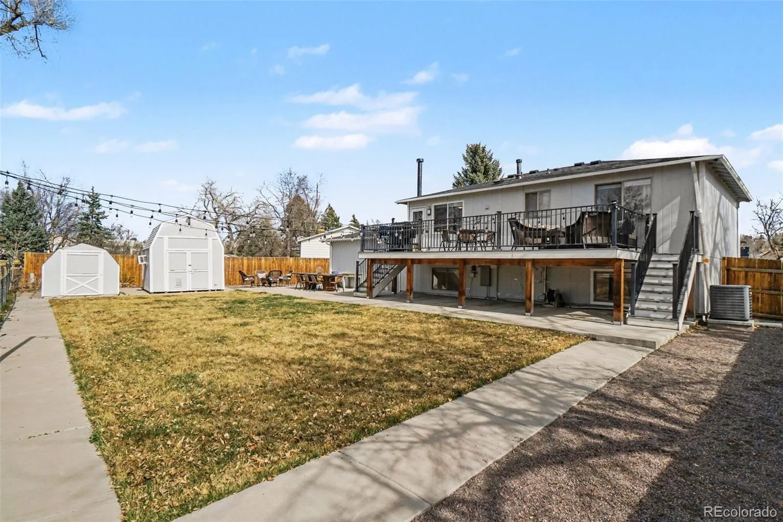 Welcome Home! Thoughtfully updated in the heart of Arvada, tucked into a quiet cul de sac and backing to Leyden Creek in the Woodland Valley neighborhood. This home has been well maintained and improved throughout, including interior paint, carpet, refinished hardwood floors, updated fixtures and switches, as well as a newer furnace, water heater, & upgraded 200 amp electrical panel. The overall feel is light, bright, and inviting with updates carried throughout the home. The upper level features two bedrooms, a full bathroom, and a comfortable living and dining space that flows into the kitchen. From the kitchen, step directly onto the composite deck, which spans the width of the home perfect for enjoying morning coffee or an evening cocktail. Ideal for entertaining or simply enjoying the open space behind the home, with stairs providing easy access to the backyard complete with newer sod and new sprinkler system. The lower level offers great flexibility with a spacious family room or potential primary suite, along with a full bathroom and two additional bedrooms, one with an attached 3/4 en-suite. The other bedroom serves well as a home office, workout space, or hobby room. Outside, the property continues to stand out with an oversized driveway providing ample parking, and a large fenced backyard that backs to Leyden Creek. There is upgraded concrete throughout, extending from the driveway to the back patio, creating a great space for outdoor living with room for a future hot tub. Three storage sheds offer additional functionality, including one that is fully equipped with electricity and is the perfect place for summertime happy hour. Conveniently located just minutes from Old Town, Ralston Creek Trail and West Arvada. *New Roof in 2023, New Sewer Line 2023***