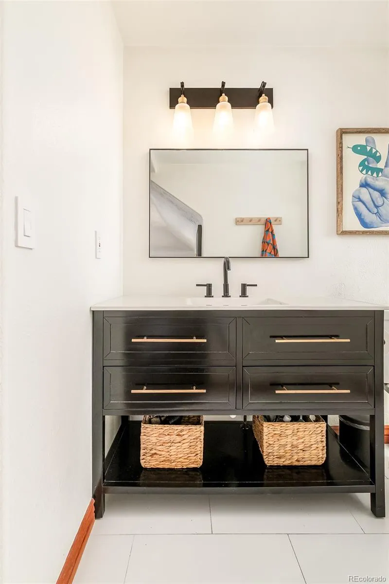 A rare opportunity awaits across from Sloan’s Lake in this stylishly updated two-story home. Fresh interior and exterior paint enhances its inviting presence, while a covered front porch welcomes residents into the light-filled interiors. The newly renovated kitchen features a peninsula, exposed brick accents and a striking ceiling beam, seamlessly connecting to a bright dining area. A sunny rear living space with Saltillo tile floors opens to a private, fenced backyard complete with a covered patio, irrigation and a sauna. Upstairs, the private primary suite offers a walk-in closet with built-ins and an en-suite bath with a walk-in shower. Two additional bedrooms on the main level share an updated full bath and provide flexibility for guests or a home office. With a detached two-car garage, extended driveway and coveted south-facing orientation, this home combines lifestyle, location and livability in a prime location. Additional upgrades include electrical panel (2024), roof (2024), sewer line with transferrable warranty (2023), AC and mini split (2024), garage doors and motors (2024), furnace, (2020) and front and rear doors (2023).