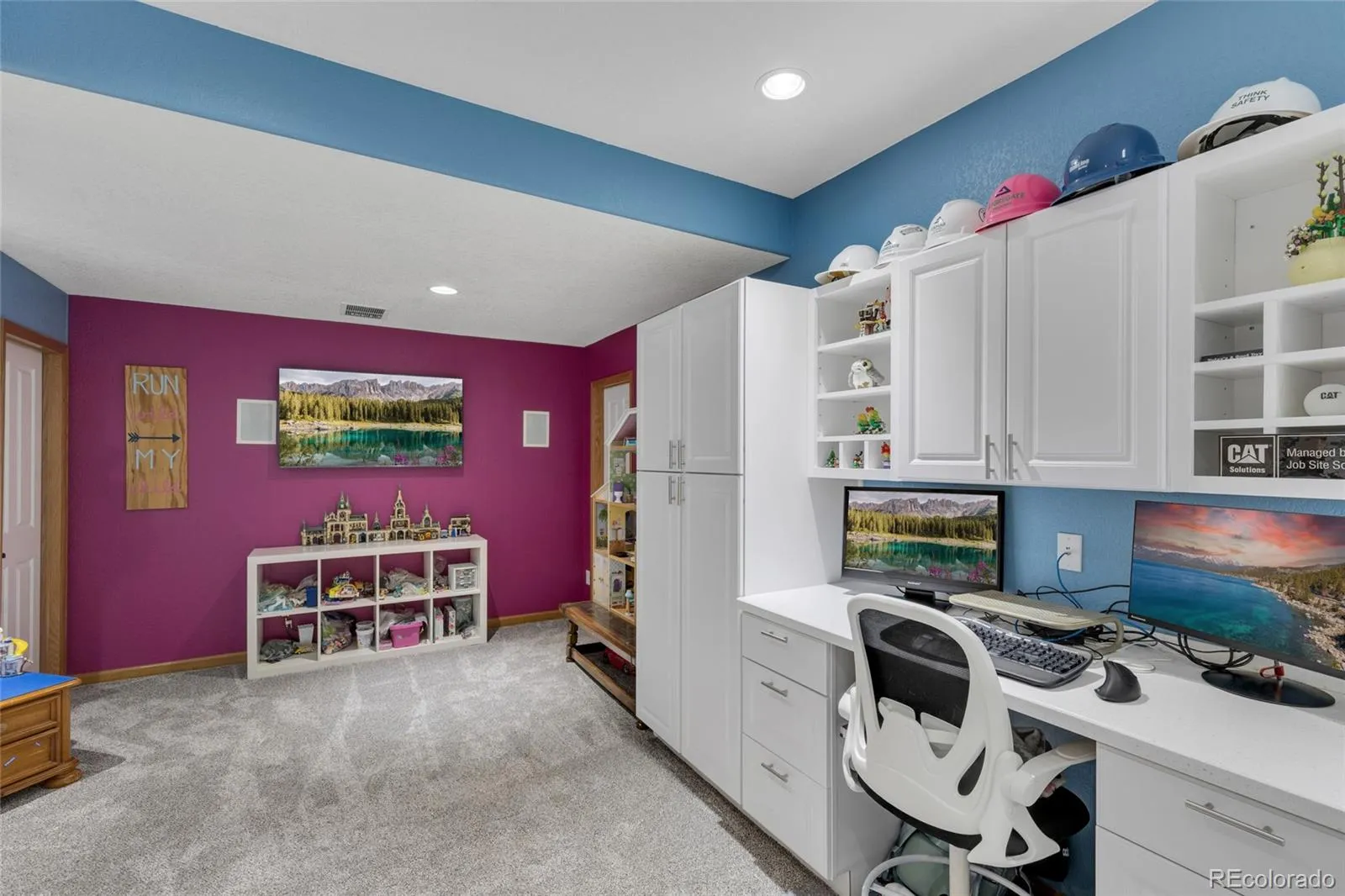 The main floor is designed for a modern rhythm of life, featuring a secluded private office perfect for deep work. Upstairs, the layout is a rare find, keeping everyone close with the primary suite plus three additional spacious bedrooms all on the same level. When it’s time to entertain, the lower level is the ultimate destination. Imagine hosting friends at the sleek wet bar—complete with a full-size refrigerator for all your local brews—or heading into the dedicated gym or settling into the craft room for a creative session. Whether you are walking the nearby Cherry Creek Trail, enjoying a round at the club, or simply taking in the mountain vistas from your deck, this home offers a lifestyle of quiet luxury and natural beauty that is impossible to replicate.
