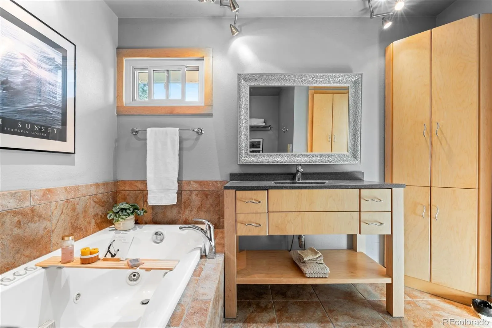The primary suite is a retreat with a spacious four-piece bath with in-floor radiant heating, walk-in closet, and incredible