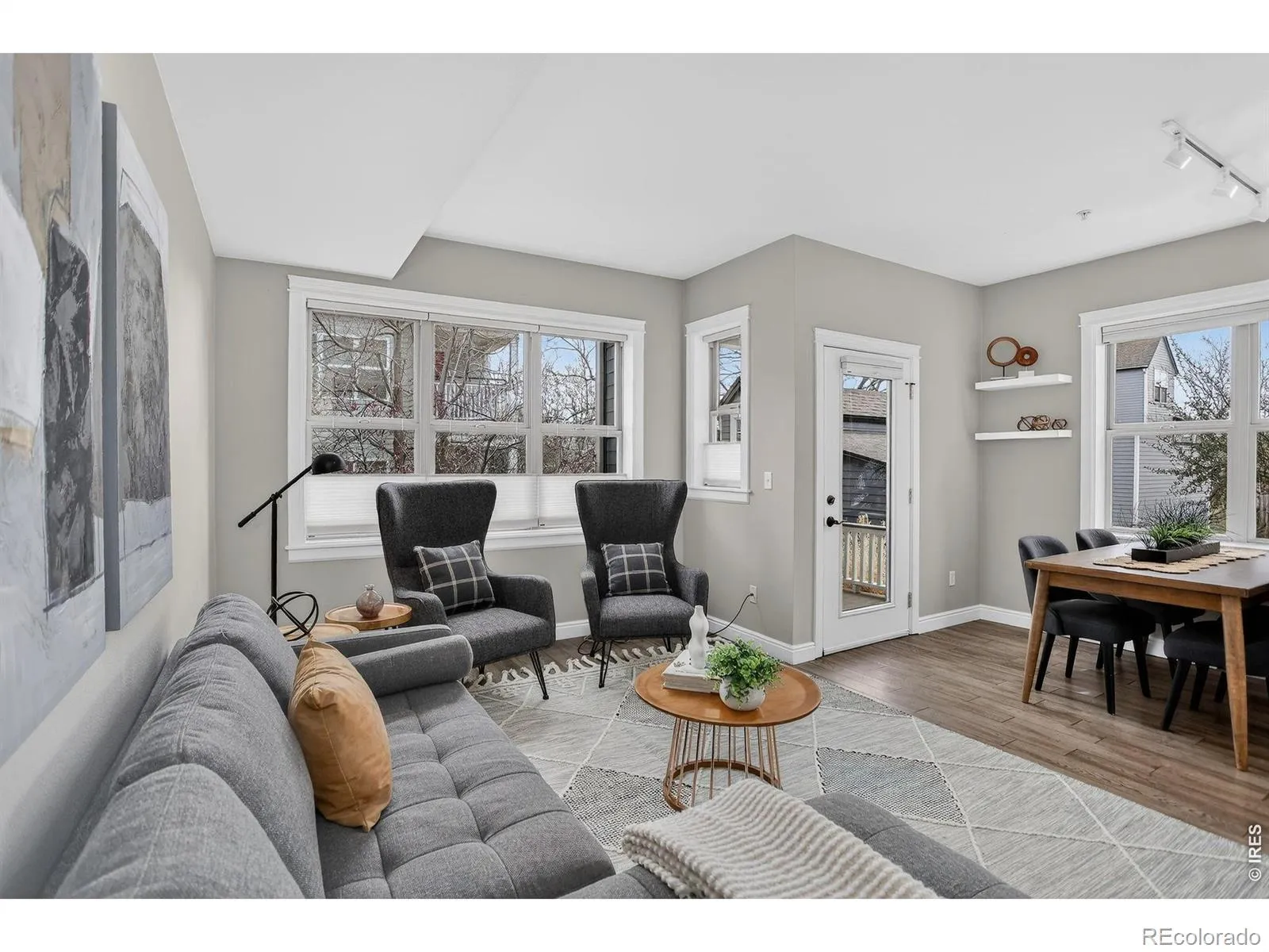 Welcome to the Holiday Community, nestled at the heart of the vibrant NOBO Arts District and surrounded by local eateries, cafes, bike shops, parks, and the new NoBo library. Hiking and biking trails just steps away. This sunny corner unit lives more like a cozy single-family home, complete with a front porch, a private balcony, and a conveniently located oversized assigned parking space just steps from your door.Updated from top to bottom, highlights include engineered wood floors, a remodeled modern bathroom, newer paint and windows, a custom closet system, updated lighting, a new water heater, and a premium washer/dryer. The spacious kitchen shines with full-height cherry cabinetry offering abundant storage, stainless steel appliances with a gas range, and generous counter space.The well-managed HOA has recently completed exterior improvements, including fresh paint on all buildings and a new roof. As spring arrives, the lush landscaping bursts into life with native grasses, ground covers, colorful perennials, and blooming shade trees-plus plenty of green lawn and nearby Holiday Park for playtime and picnics. Move-in ready and full of charm, this home offers not just an awesome place to live, but the quintessential Boulder lifestyle-walkable, bikeable, and rich with community spirit. Easy to show.