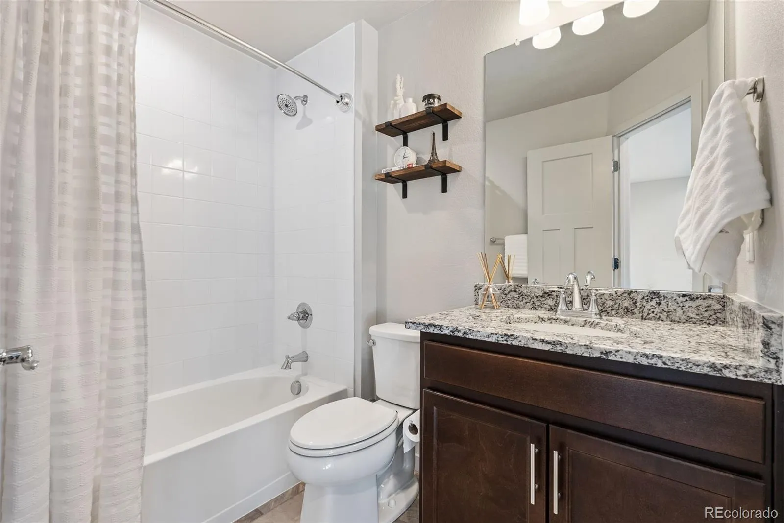 Upstairs, the spacious primary suite offers abundant natural light, a walk-in closet, and a well-appointed en suite bath with dual vanities, granite countertops, and a walk-in shower. Two additional bedrooms provide flexibility for guests, a home office, or additional living space, complemented by a full secondary bathroom.