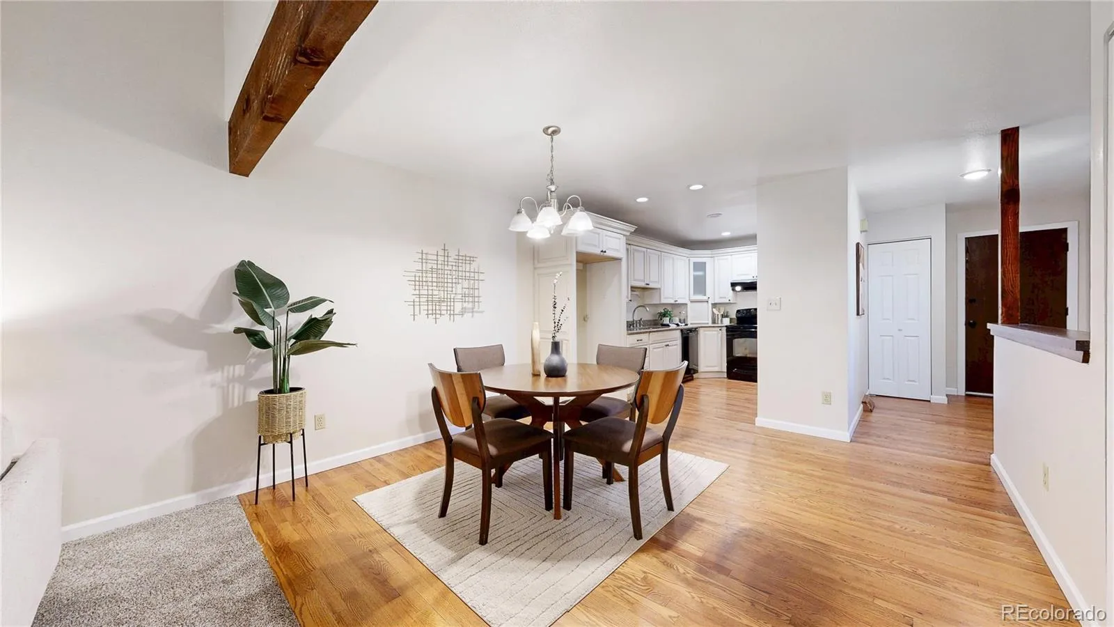The open floor plan creates a warm and inviting great room centered around a cozy wood-burning fireplace, while a screened-in patio offers the perfect spot to relax and enjoy Colorado evenings. The spacious main-level primary suite provides generous closet space and easy single-level living.