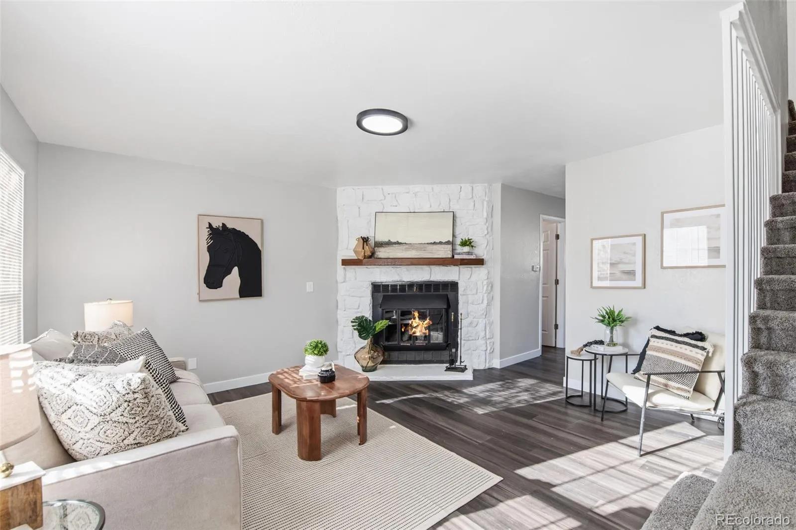 Completely reimagined from top to bottom with a fresh, modern aesthetic, this 3 bedroom Sunstone townhome offers turnkey living with stylish upgrades at every turn. Bright white interiors, new flooring and updated lighting create a cohesive, light-filled atmosphere, while the living room centers around a cozy wood-burning fireplace. The updated kitchen shines with new granite countertops, new cabinetry and a new refrigerator, along with an eat-in dining space. A new sliding glass door opens to a private outdoor patio. Convenience is elevated with a new washer and dryer tucked into a dedicated closet just off the kitchen along with an updated powder room. Upstairs, the sizable primary suite provides a comfortable retreat, complemented by two additional bedrooms which share a three quarter bathroom. All bathrooms have been fully remodeled with new tile, vanities and fixtures, and every bedroom features new doors on bedrooms and closets. With central A/C, a reserved parking space just outside the door and access to a community pool, this home delivers both comfort and ease in a well-maintained Aurora community.