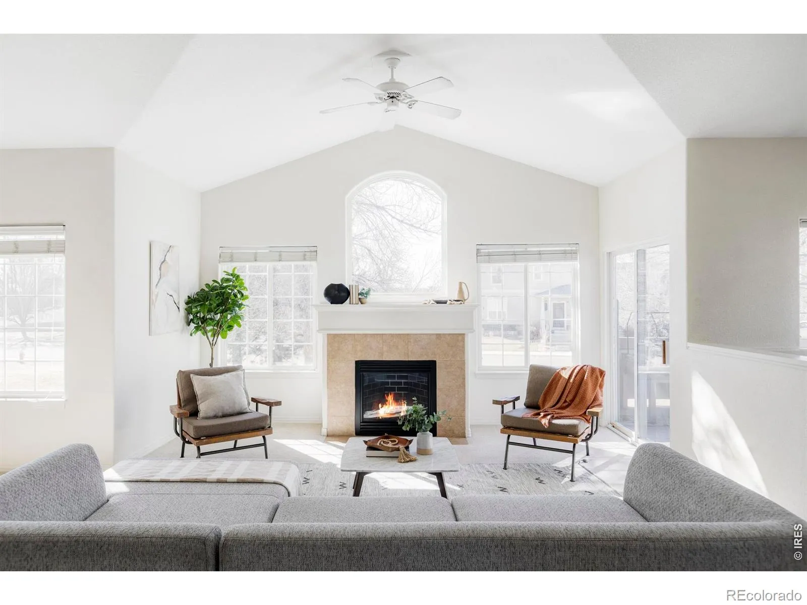 Welcome to 3804 Florentine Circle in Longmont’s Renaissance community, ideally located in southwest Longmont with easy access to Boulder, Niwot, and downtown Longmont via Diagonal Highway. This low-maintenance home features an airy, open floor plan with vaulted ceilings, large windows, and a gas fireplace anchoring the main living space. Sliding glass doors open from the living room to a south-facing patio, creating a seamless connection between indoor and outdoor living. The layout continues into the dining area and kitchen, which includes warm wood cabinetry, hardwood floors, and a breakfast bar for casual dining. The main-floor primary suite provides comfort and privacy with a walk-in closet, double vanity, soaking tub, separate shower, and private water closet. A dedicated office near the entry offers a quiet, light-filled space for work or flexible use. The lower level is a full height daylight level with substantial natural light and functional living spaces. It includes a spacious rec room, second bedroom with walk-in closet, full bathroom, and ample storage. Additional highlights include a laundry and mudroom with built-ins and an attached two-car garage. The HOA covers landscaping, snow removal, and exterior maintenance for easy living. Located near Dry Creek Trail and Dry Creek Community Park, with convenient access to nearby shopping, dining, a local coffee shop and brewery, highly rated schools, and bus routes providing service to downtown Longmont and the rec center, this home delivers comfort, functionality, and everyday convenience.