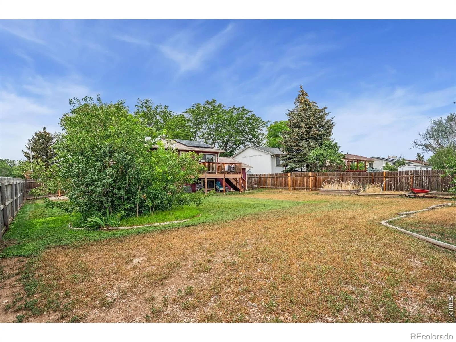 Possibilities abound on this large corner lot with alley access allowing for RV, boat, or trailer parking-plus no HOA, covenants, or metro district. This home features a fully owned, free-and-clear solar system, helping keep energy costs low year-round. The sunny upper level offers a comfortable living room, a bright kitchen with abundant counter space and a gas range, and two bedrooms with a full bath. The dining area walks out to a Trex deck overlooking the expansive backyard, creating a great space for outdoor dining and entertaining. (The sliding patio door will be replaced prior to closing). The lower level provides excellent flexibility with a large third bedroom that could easily serve as a family room or private primary suite. A fourth bedroom works perfectly as a home office, guest room, or hobby space. You’ll also appreciate the spacious laundry area with additional storage and the oversized one-car garage. Outside, the generous yard includes garden beds, a storage shed, and plenty of room to expand, play, or park your toys. A brand new roof and gutters will be installed prior to closing. Average utilities from May 2025-Oct 2025: Water-$155/month and Electric-$15/month.
