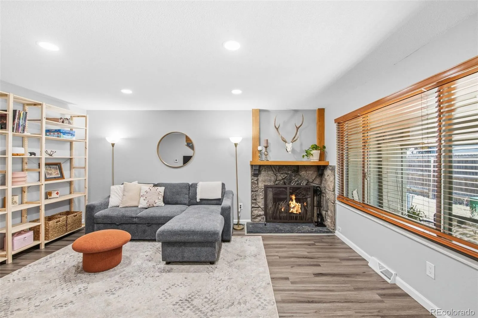 On the shores of Smith Reservoir within the serene lakeside enclave of Lake Lochwood Village, this beautifully maintained residence beams with welcoming comfort. Surrounded by mature trees, trails and peaceful water views, this townhome invites a truly connected Colorado lifestyle. Inside, an inviting living room centers around a cozy wood-burning fireplace, while the updated kitchen features modern finishes, ample cabinetry and an adjoining dining space. The main level also includes a refreshed powder room, laundry area and direct access to the attached garage. Upstairs, two spacious bedrooms share a well-appointed dual-entry bath, while the finished basement expands versatility with a large rec room, additional bedroom and a full bath. Newer windows, flooring, doors and a new A/C unit ensure year-round comfort. Enjoy quiet mornings on the private patio with space for a garden, or take advantage of community amenities including a pool, clubhouse and nearby fishing and trails.