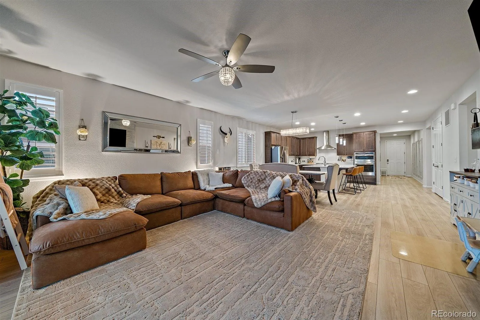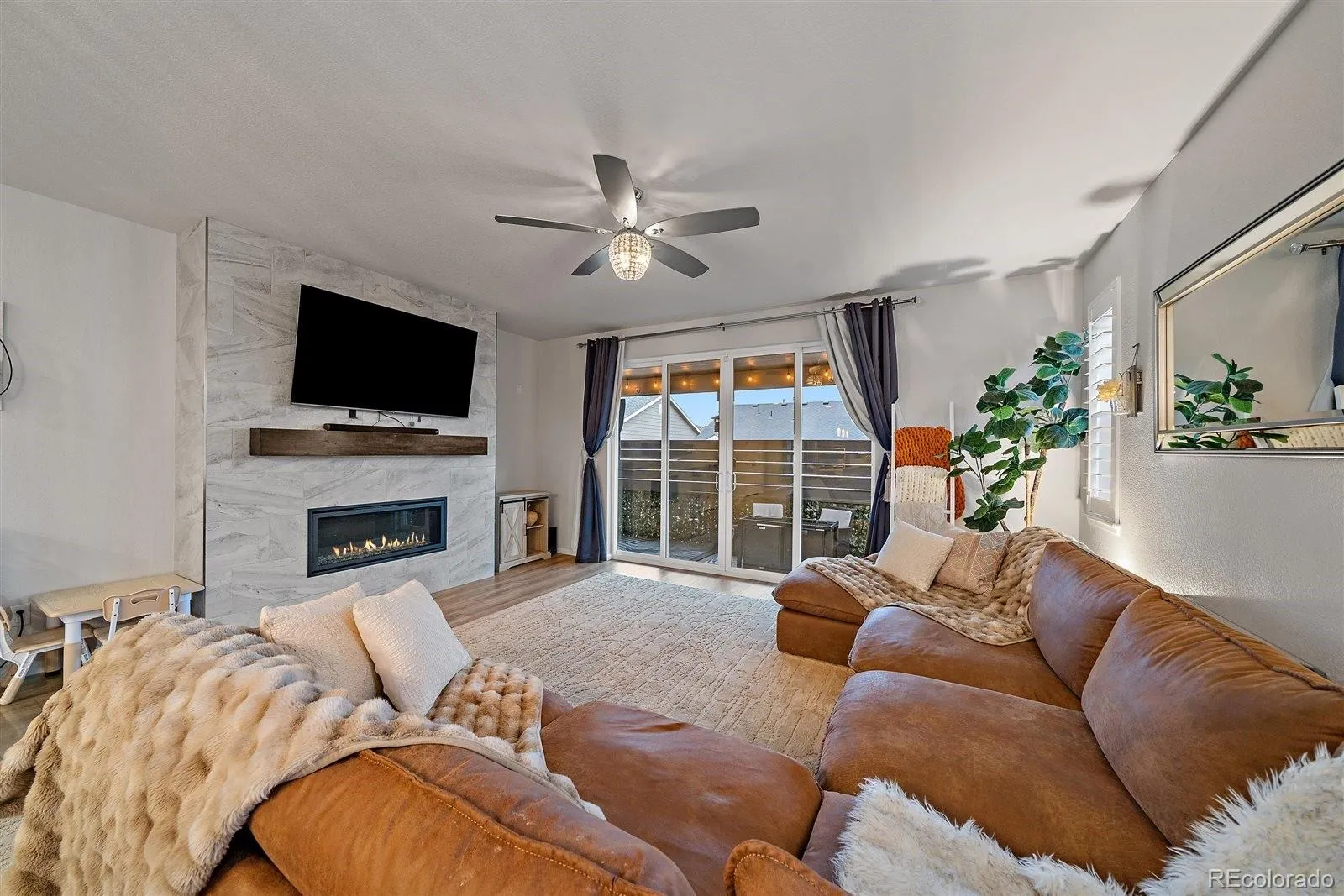 An Exceptional Ranch-Style Residence In Pristine Condition, Ideally Situated In The Highly Sought-After Cobblestone Ranch Community * Just Steps From Your Front Door, Enjoy Direct Access To Open Space And An Interconnected Trail System * Thoughtfully Designed, This Home Features 5 Spacious Bedrooms And 3 Well-Appointed Bathrooms * The Expansive Kitchen Serves As The Heart Of The Home, Showcasing Quartz Countertops, A Double Oven, Gas Range, Designer Lighting, And A Built-In Water Filtration System With On-Demand Hot Water * The Open-Concept Layout Is Elevated By Luxury Vinyl Plank Flooring Throughout The Main Level And Flows Seamlessly Into A Generous Great Room Anchored By A Sleek, Modern Fireplace * The Primary Suite Offers Serene Views Of The Landscaped Backyard And A Spa-Inspired Bathroom With A Luxe Walk-In Shower, Dual Vanities, And A Large Walk-In Closet * An Oversized Laundry Room With Utility Sink And Extensive Cabinetry Adds Convenience * Outdoor Living Includes A Private Covered Patio And A Built-In Fire Pit Area, Perfect For Entertaining * Low-Maintenance Turf And Rock Landscaping Enhance The Yard * The Finished Basement Expands Your Living Space With A Large Family Room, Game Area, Wet Bar, Two Bedrooms, And A Full Bathroom, Plus Room For A Home Gym And Additional Storage * Additional Highlights Include A 3-Car Garage With Built-In Shelving And A Winch-Driven Storage System * Enhanced By An Integrated Whole-Home Speaker System, Creating A Seamless And Elevated Living Experience Throughout * Equipped With Motion Sensors On Every Door And Window, Along With Security Cameras For Peace Of Mind * A South-Facing Orientation Promotes Efficient Snow Melt * Nearby Playground Perfect For Kids Or Grandchildren!