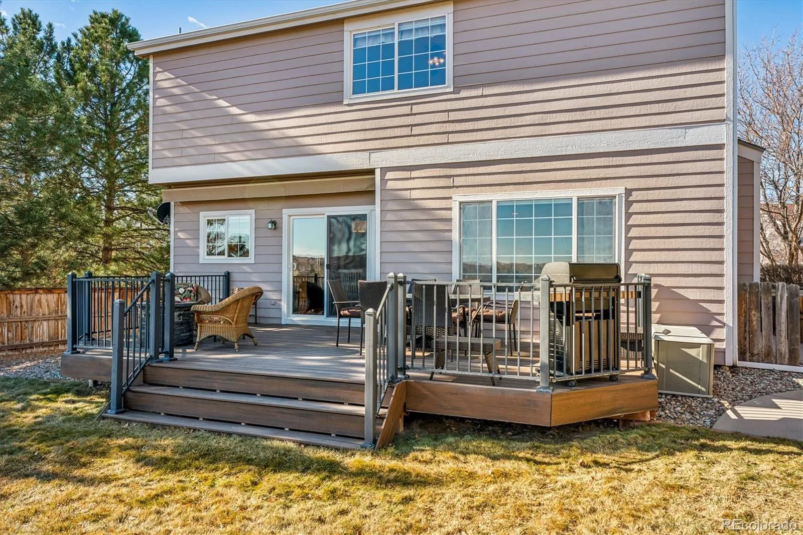 LOCATION! LOCATION! LOCATION! – This is the one you have been waiting for. This fabulous two-story home is situated on a perfect lot – backing to open space & greenbelts (right behind you enjoy awesome views, miles of trails, playground and a dog park). This lot not only offers views but the backyard will be the envy of your friends as you relax, BBQ and entertain on the beautiful trex with a new retractable awning while soaking in the views! Let’s not forget about the house – as you enter the front you are greeted with soaring vaulted ceilings and beautiful hardwood floors that extend throughout the main floor. The main floor features a living room, updated kitchen with new quartz counter tops, oversized undermount sink, SS appliances and 42 inch upper cabinets. Off the kitchen is a cozy family room highlighted with a gas fireplace. Off the garage is a half bath sharing the main floor laundry (washer and dryer included). The upstairs features the primary bedroom with a private 5-piece bath (oval soaking tub) upgraded with granite counter tops and tile flooring plus a nice size walk-in closet. Two additional bedrooms (both with mountain views), a shared full bathroom and a great 10.2 x 16.4 loft with built-in shelves. The unfinished basement offers plenty of storage or can be finished later to add more space. New motorized blinds throughout. New 5-inch gutters and downspouts! Class 4 Duration storm roof installed September 2016 (Great insurance discount). You are minutes away from the Highlands Ranch Town Center, shopping, groceries, library and multiple rec. centers. This one is a must see!