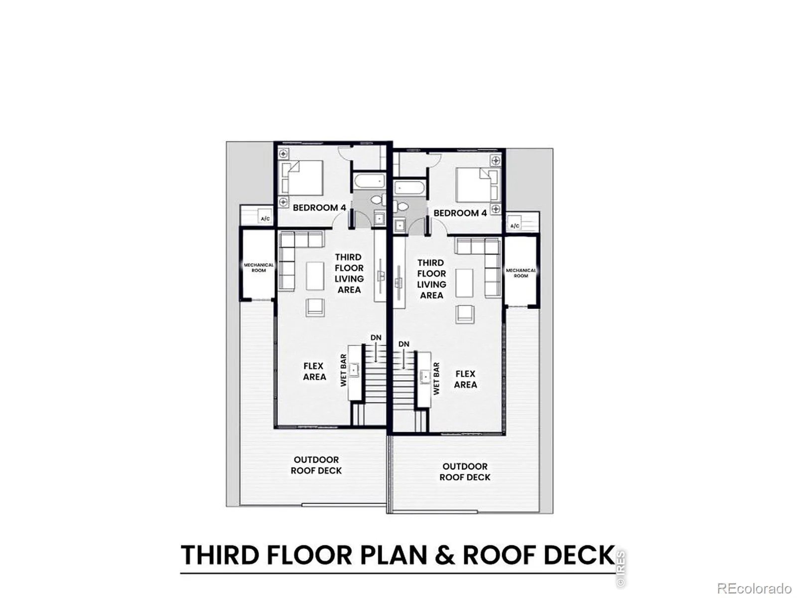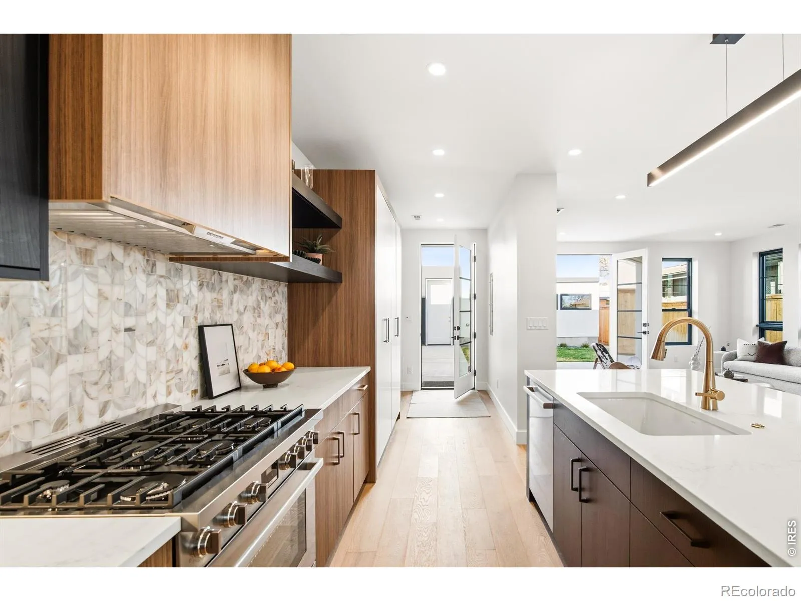 This bright and modern duplex is an entertainer’s dream with an extra-wide footprint that lives like a spacious single-family home. Engineered wood floors ground the main level, where a dedicted office sits behind French doors. Andersen dual-pane windows wash each space in generous natural light, illuminating the functional layout. At the heart of the home is a chef’s kitchen with Bosch appliances and custom cabinets. Among the home’s private escapes is a primary suite that features a wet-room style bathroom with dual vanities and an oversized walk-in closet. Crowning this home is a flexible upper-level loft complete with private wraparound rooftop deck access, a full wet bar, and an additional en-suite bedroom that is versatile for an exercise area, media room, or another home office. Additional conveniences include a quick recovery tankless water heater, oversized garage with 14′ ceilings and EV-ready capabilities, and three distinct HVAC zones for each level. The unparalleled location places residents near 9+CO, parks, Cherry Creek, and an eclectic food scene.