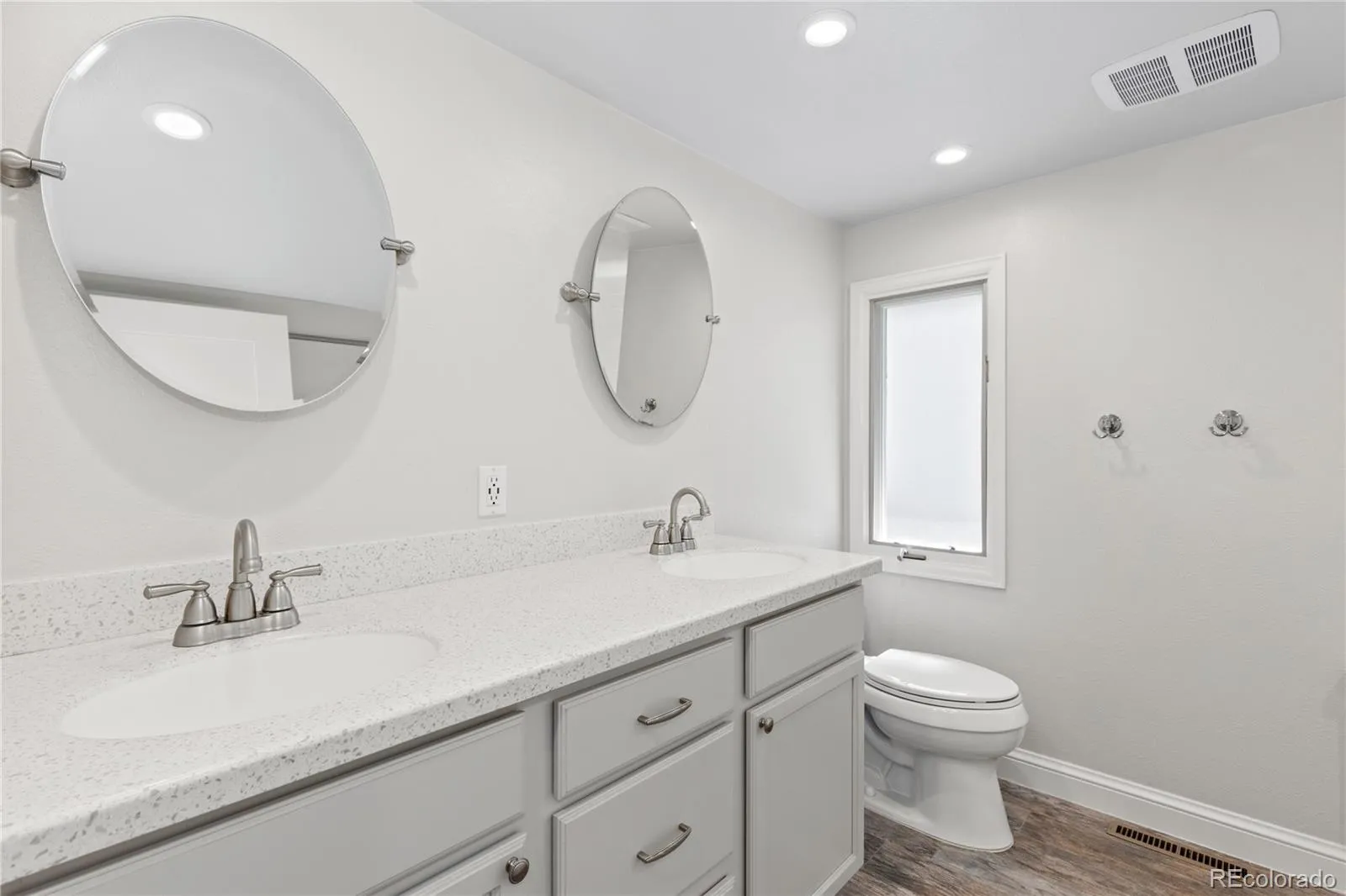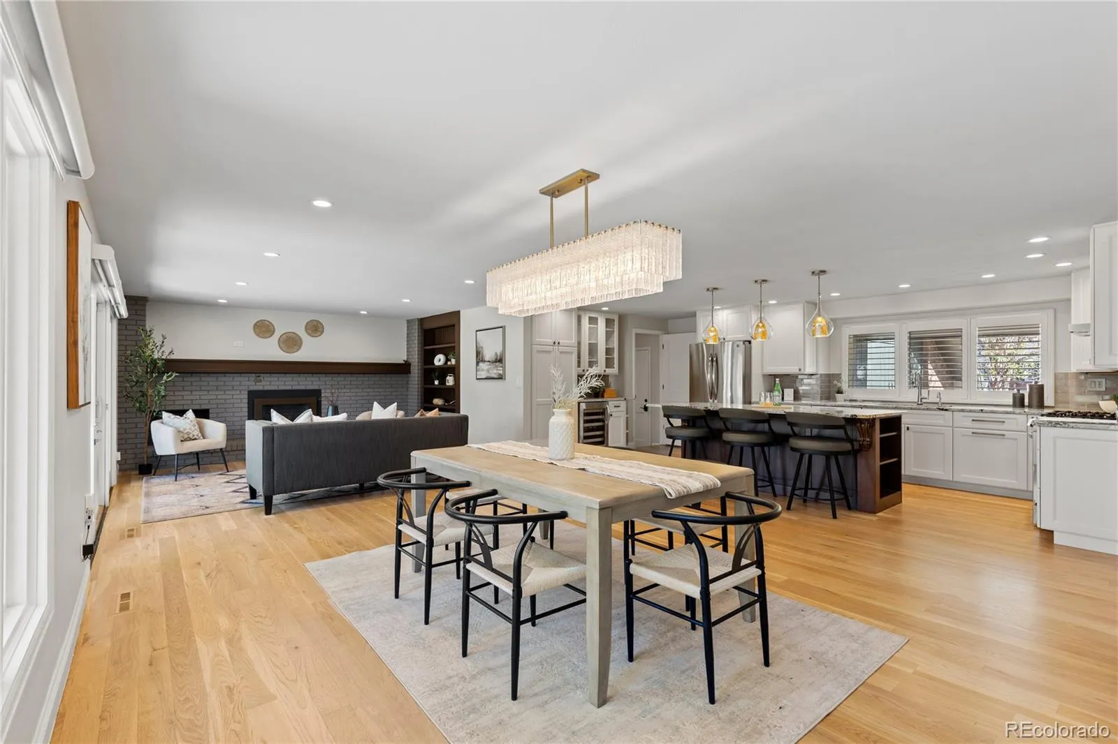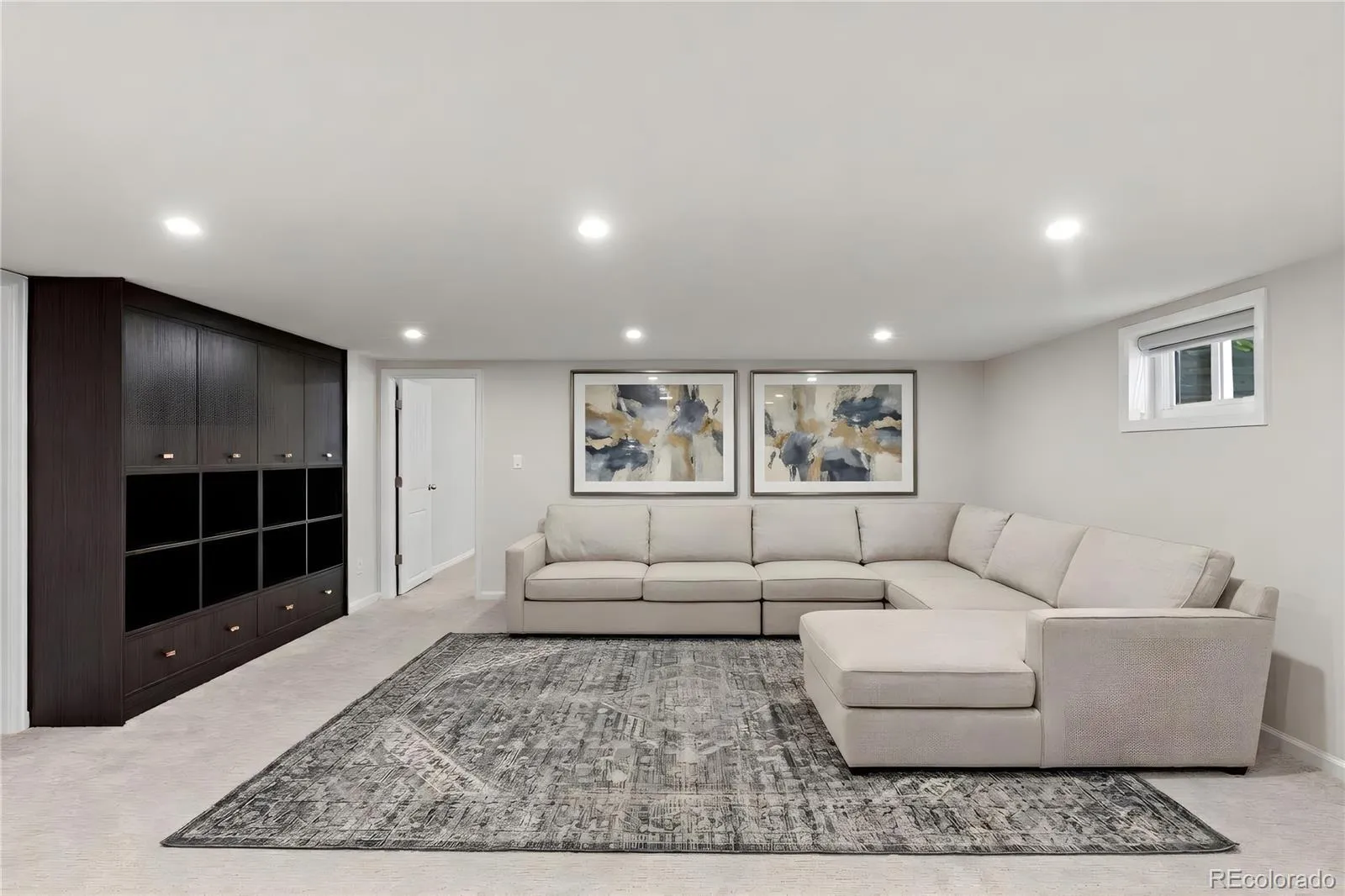 Gorgeous ranch-style home in the highly sought-after Heritage Greens community, perfectly positioned on a large corner lot with exceptional curb appeal and over $150,000 in recent upgrades. A beautifully landscaped front yard and inviting front patio create the ideal setting to enjoy Colorado’s sunny days, while the private backyard showcases mature trees and a spacious stamped concrete patio designed for effortless outdoor living and entertaining. A well-lit walkway leads to the front entry, complemented by a side-load garage featuring a newly coated floor and rare radiant-heated driveway. Inside, this thoughtfully designed home offers true main-level living with three bedrooms, three bathrooms, a dedicated office, laundry room, and multiple living spaces including a family room and formal living room. Vaulted ceilings and expansive windows flood the home with natural light, while new carpet, fresh interior paint, updated light fixtures, and custom window coverings elevate the home’s overall feel. The fully updated kitchen is equipped with new appliances, abundant counter space, and a large island with seating, seamlessly connecting to the main living areas. The primary suite serves as a private retreat, featuring custom closets and a beautifully remodeled bathroom with dual sinks, a freestanding soaking tub, heated floors, and a walk-in shower. Additional improvements include a stylishly remodeled main-level powder room and a new AC system for year-round comfort. The finished basement expands the home’s versatility with two additional bedrooms, a full bath, a massive recreation area, and a newly added bar—perfect for entertaining—along with generous storage.