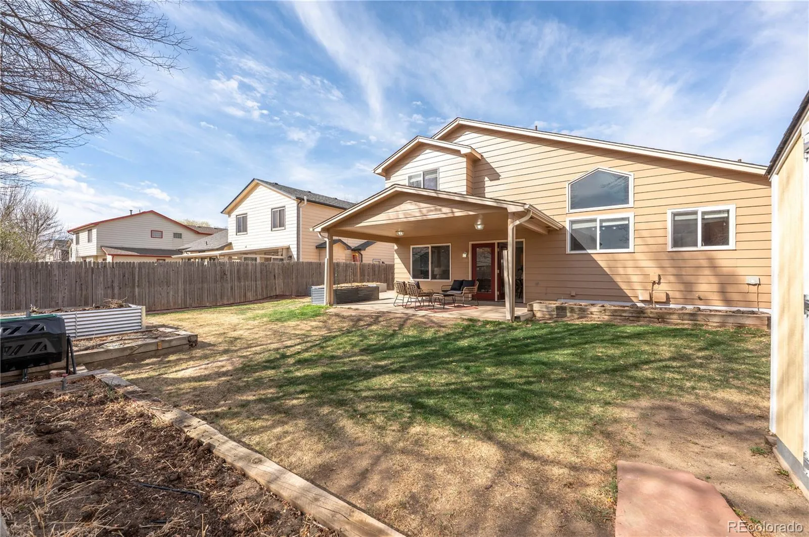Honey Stop the Car- We found our dream home- Step inside to discover a bright & open floor plan designed for both relaxing & entertaining. Natural light fills the living spaces, creating a warm, welcoming atmosphere from the moment you walk in. The kitchen features loads of cabinets, newer stainless steel appliances, solid surface counters, soft close cabinet drawers, and a generous island to work on with seating at the end to keep the chef company while seamlessly connecting to the dining and living areas-perfect for gatherings with family and friends. Primary suite offers a peaceful retreat, complete with ample space to unwind at the end of the day including a walk-in closet & ensuite bathroom with double sinks and a beautiful skylight. Basement is finished with a large rec room/flex room that could be used as an office, rec room, or separate guest space as there is a 3/4 bathroom in the basement as well. Outside, you’ll find a wonderful covered back patio area ready for summer barbecues, morning coffee, or simply enjoying the Colorado weather! Yard is large and features raised garden beds ready for planting and a good sized shed for more storage. South side of the house has an extended concrete pad behind 3rd bay of the garage so there is an option to open up the 3rd car garage and have a drive thru feature or use the extra space as a 2nd patio! This is a fantastic house with loads of character- make it yours today!