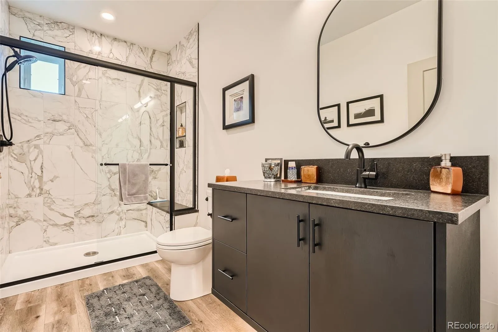 Amazing Mountain Views, Exceptional Design, & Premier Location! Perfectly set on 2+ private acres with sweeping Front Range views, this remarkable residence blends refined luxury with easy access to metro conveniences. Expansive windows and sliding glass doors frame breathtaking vistas, with open-concept living space, natural light, and stunning western sunsets. Designed for both grand entertaining and comfortable everyday living, the main level provides easy flow between the gourmet kitchen, dining, and great rooms—all opening to a massive, partially covered deck spanning the length of the home. The oversized primary suite is a true sanctuary, offering private deck access and a spa-like bath with heated floors, floating vanities, soaking tub, steam-sauna shower, and a custom walk-in closet with direct access to the laundry room. A second main-floor bedroom suite provides luxurious space for guests. A private office captures incredible mountain views and opens directly to the west-facing deck. The walkout lower level is equally impressive, featuring three additional bedrooms, two baths, a beautifully appointed media/recreation room with wet bar, and a dedicated game area. One bedroom is currently designed as a fully equipped home gym. A spacious multi-purpose utility room offers flexibility for storage, hobbies, or additional workspace. Step outside to a covered patio with gas fire pit and a backyard oasis ready for a future pool or hot tub. The 3.5-car garage provides ample space for vehicles, storage, and recreational gear. Just minutes from grocery, dining, banking, and everyday essentials, with Southlands, the town of Parker, and E-470 nearby. Quick access to Park Meadows, DIA, the Tech Center, and Downtown. Bordered by open green space to the south and surrounded by wildlife and natural beauty, this home offers a rare combination of privacy, views, luxury, and convenience. Experience elevated Colorado living at its finest. Schedule a private tour today!