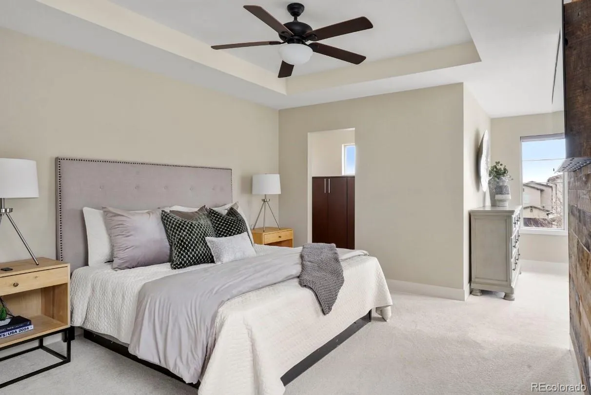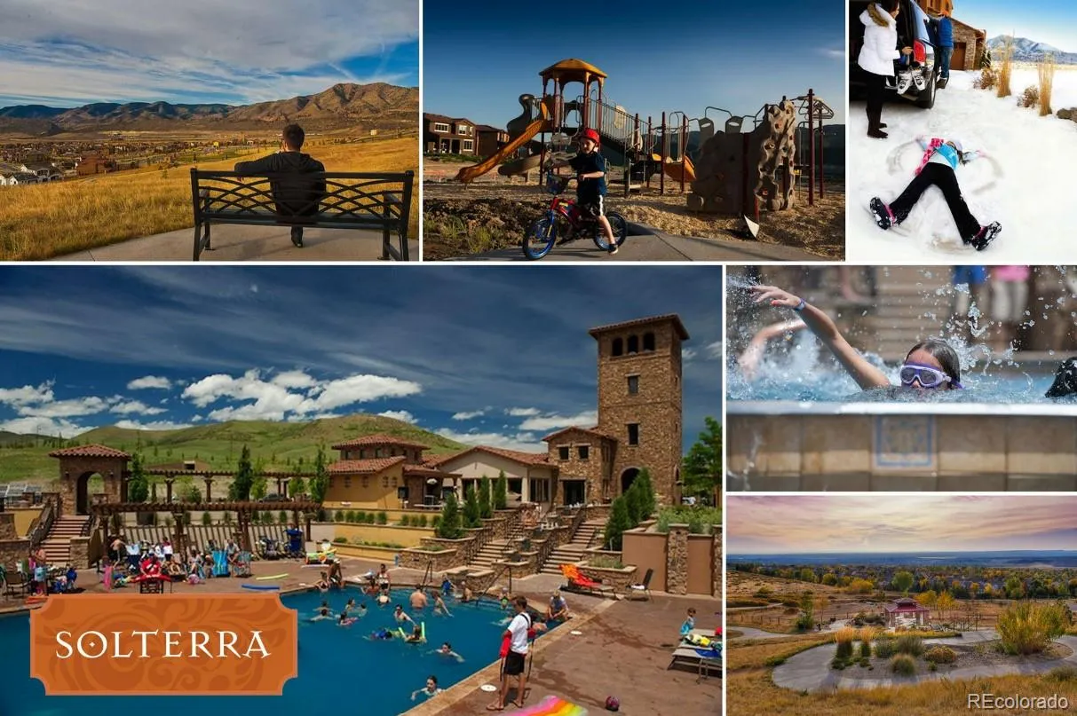 Experience the perfect blend of modern luxury and Colorado’s active lifestyle in this stunning 4-bedroom, 4-bathroom retreat nestled in the award-winning Solterra community. Built in 2016, this home offers “lock-and-go” convenience with high-end, on-point finishes including quartz countertops, designer tile, and engineered hardwood floors. The open-concept main floor is an entertainer’s dream, featuring an entertainment-sized kitchen with a new quartz island and a great room anchored by a rustic barn wood accent wall and cozy fireplace. Upstairs, the primary suite serves as a private sanctuary with mountain views, a dual-entry en-suite bath, and a flexible 10×10 space perfect for a home office. The fully finished basement adds massive value with a large rec room and a fourth bedroom featuring a spa-like steam shower. Step outside to your private patio with cafe lights—ideal for alfresco dining without the burden of yard upkeep. Solar panels (owned) and a high-efficiency HVAC system keep utility costs low year-round. Enjoy world-class community amenities including the “Retreat” clubhouse, infinity pool, and miles of hiking/biking trails right at your doorstep.