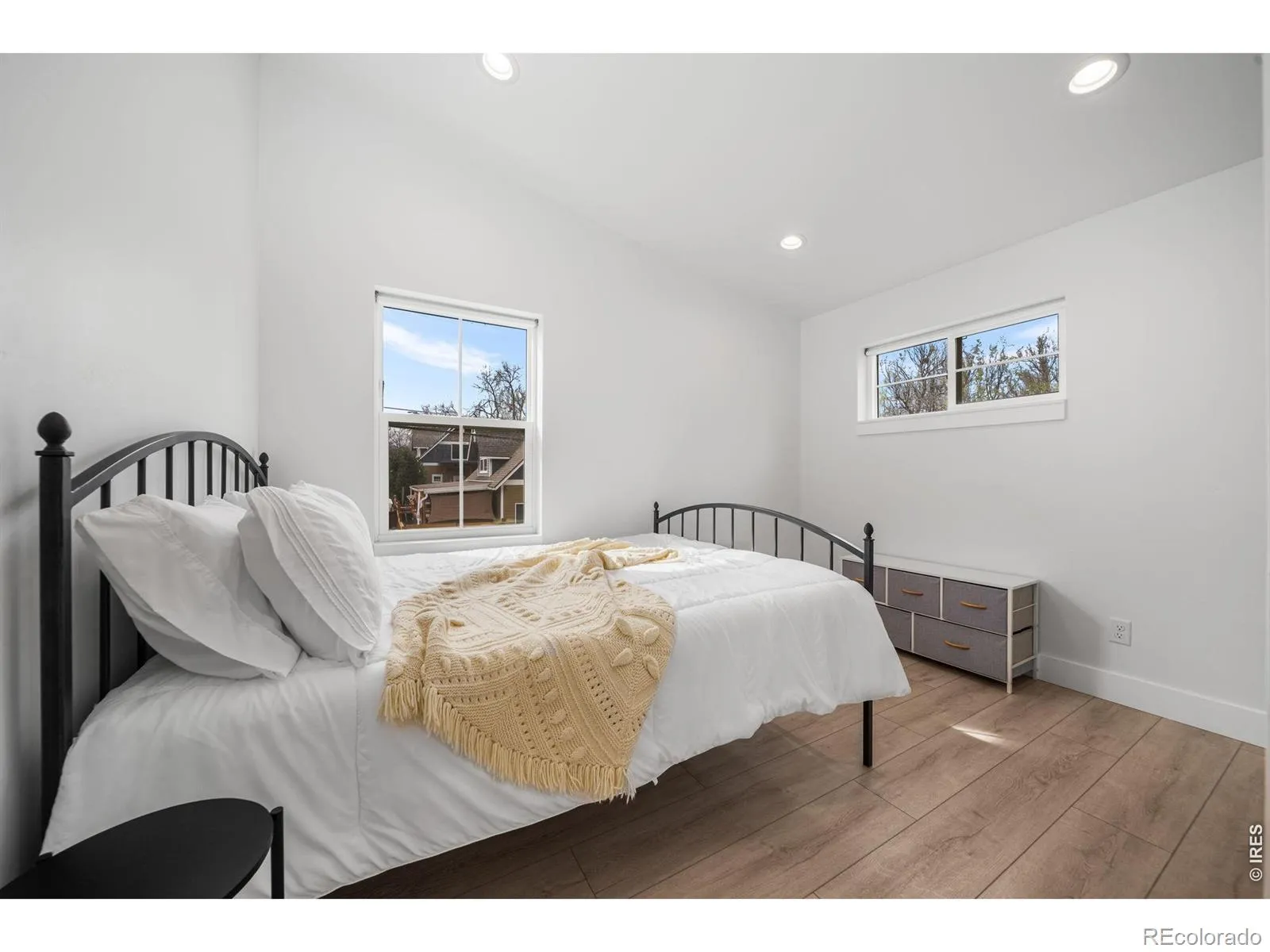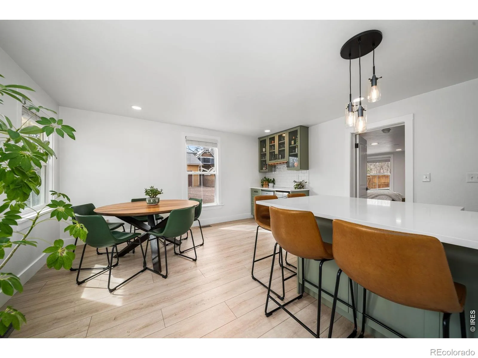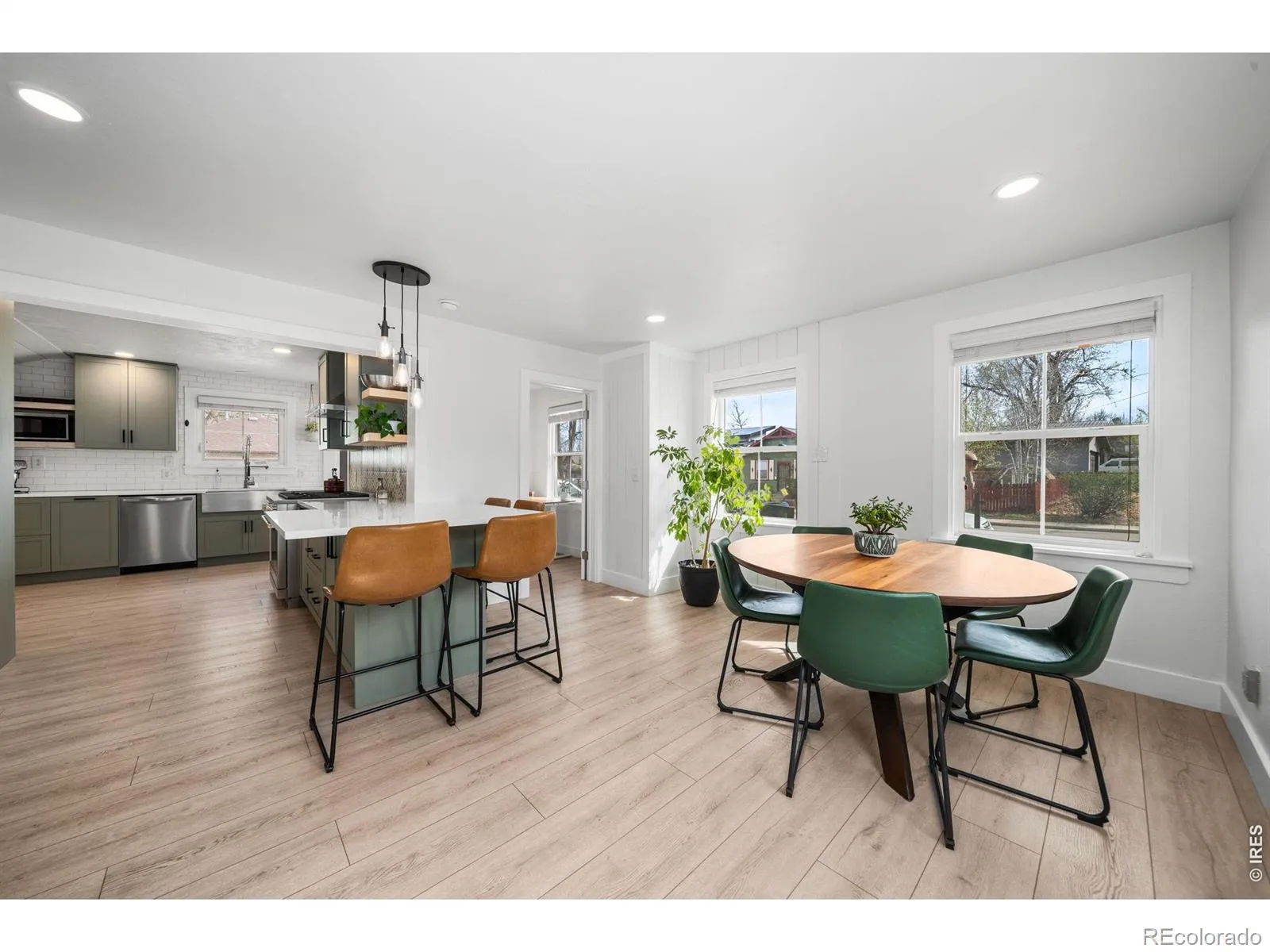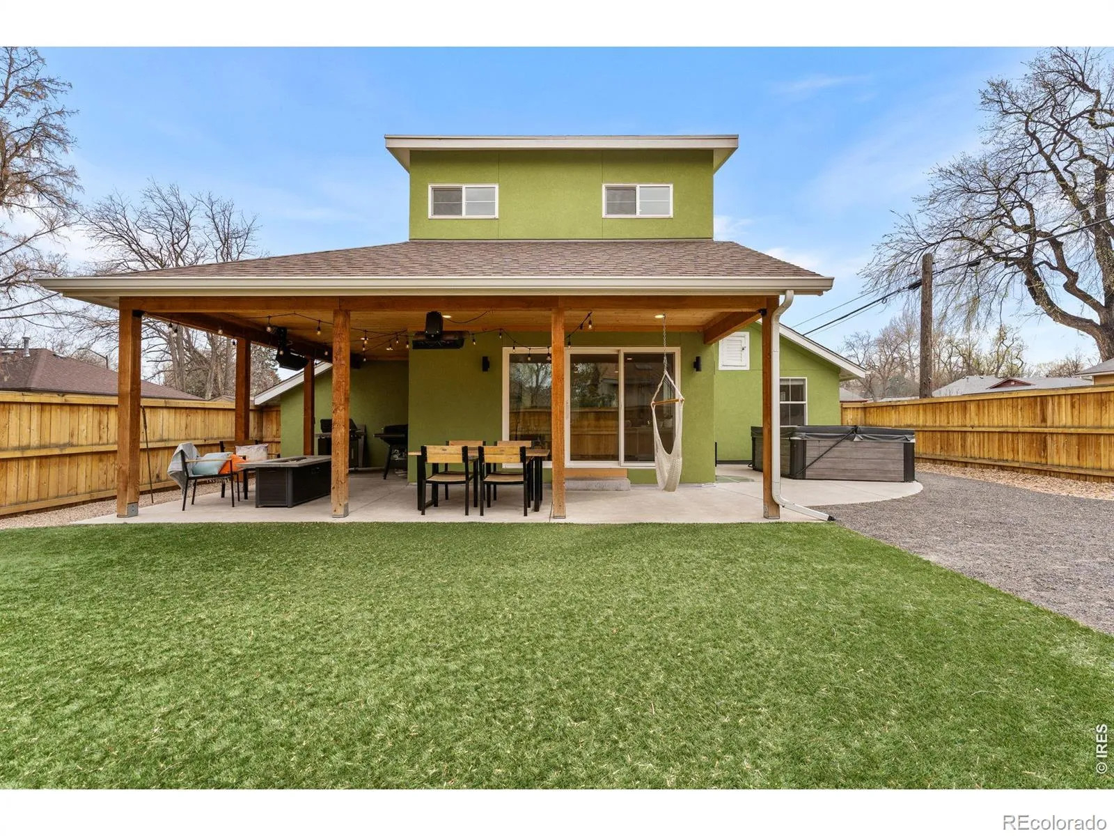 Architectural Excellence in Old Town: A Bold Modern Sanctuary. Rarely does a property so perfectly balance bold architectural expression with intimate, high-end comfort. This stunning Old Town residence has been meticulously reimagined, offering a “new construction” feel within one of Fort Collins’ most iconic neighborhoods. Remodeled and completed in 2023, this home shows beautifully.Inside, the home lives large with soaring vaulted ceilings and an influx of natural light. The chef’s kitchen is a showpiece of design, featuring sage-green custom cabinetry, a geometric tile backsplash, and a professional Monogram gas range. Transition seamlessly from the open-concept living area-anchored by a minimalist steel-railed staircase and designer chandelier-to a versatile layout that includes a private home office and a lower-level fitness studio/rec room.The main floor primary bedroom is a true retreat, tucked behind a custom barn door and featuring a spa-like en-suite with dual vanities, hexagonal gold-framed mirrors, and premium stonework. Functional potential defines the lower level: adjacent to the laundry room sits a massive, unfinished storage and utility room, offering a rare “blank canvas” for a workshop, wine cellar, or future expansion.The experience continues outdoors to an unrivaled entertainment oasis. A massive, wrap-around timber-framed covered patio with tongue-and-groove ceilings overlooks a private, low-maintenance backyard featuring professional turf, a luxury hot tub, and a dedicated grilling station with mounted gas heaters. Zero-scaped for easy living, the backyard includes convenient side alley access for extra vehicles or future plans. Whether you are biking to Old Town Square or hosting an al-fresco dinner under the string lights, this home represents the pinnacle of modern Fort Collins living.