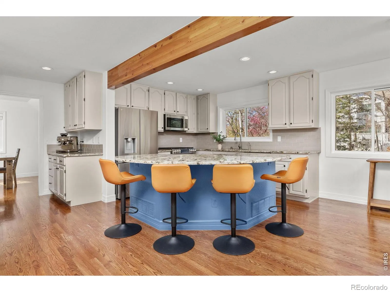 Located near Louisville’s picturesque Harper Lake and Davidson Mesa, this home features four bedrooms upstairs and sits on a generous 11,131 sqft corner lot with beautiful, established landscaping. The main level offers a sunlit front office, a 3/4 bathroom, and a welcoming living room. At the back of the home, a spacious family room features a cozy fireplace and dramatic floor-to-ceiling windows overlooking the expansive deck and level, park-like backyard. Newly added French doors in the kitchen create seamless indoor-outdoor living. The yard wraps around the home and includes a new fence along the south side, fully enclosing the backyard for added privacy and usability. A separate exterior staircase on the north side provides convenient backyard access to the basement rec room. A laundry/mudroom connects directly to the oversized three-car attached garage. Recent upgrades include all new kitchen appliances, a new furnace (2025), and an upgraded service panel (2024) for added efficiency and peace of mind. Upstairs, the thoughtfully designed layout includes four bedrooms, highlighted by plush carpet and a spacious primary suite with a walk-in closet and ensuite bath featuring new quartz countertops & a large glass enclosed shower. Three additional bedrooms and a full bathroom complete the upper level. With over 4,000 finished sqft, the basement expands the living space with a large recreation room featuring a second fireplace, two additional bedrooms, abundant storage, and refreshed countertops. If you’re looking for a spacious home surrounded by mature trees, lush landscaping, and an expansive yard, 987 Estes Way delivers!