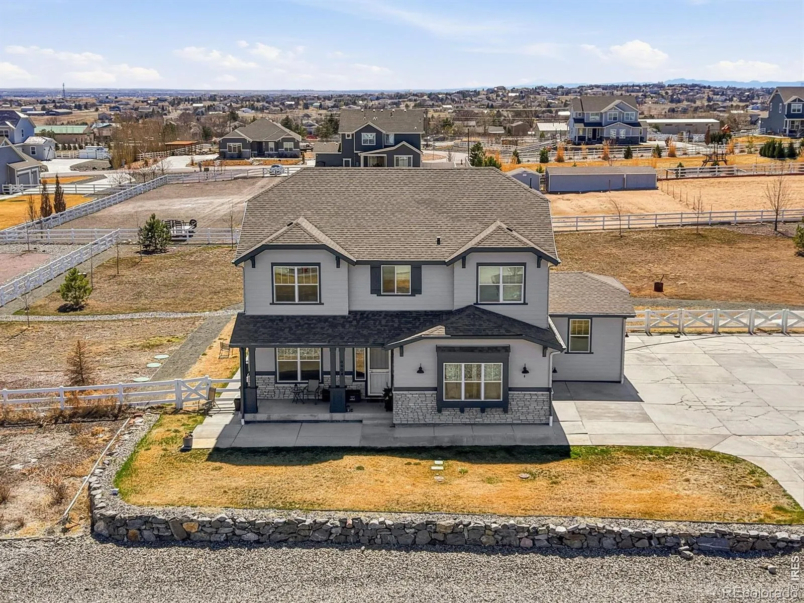 Welcome to this exceptional two-story residence in the highly sought-after Promontory Subdivision, ideally located just minutes from the beautiful fairways and clubhouse at Todd Creek Golf Club. Perfectly positioned on a premium, flat 1-acre lot, this spacious home offers the perfect blend of comfort, functionality, and refined living in a peaceful setting.Inside, you’ll find a bright and inviting open floor plan designed for both everyday living and effortless entertaining. Large windows throughout the home allow natural light to pour in, creating a warm and welcoming atmosphere. The chef-inspired kitchen serves as the heart of the home, featuring stainless steel appliances, expansive upgraded cabinetry, elegant granite countertops, and a generous walk-in pantry that provides ample storage and organization.The kitchen flows seamlessly into the impressive vaulted family room, where a cozy gas fireplace creates the perfect space to relax with family or gather with friends. The open layout enhances the sense of space while maintaining a comfortable and connected feel throughout the main living areas.Step outside through the sliding patio doors to enjoy a large covered back patio that overlooks the beautifully landscaped 1-acre property. This outdoor space is ideal for morning coffee, summer barbecues, or simply taking in the peaceful surroundings. The expansive yard offers endless possibilities for recreation, gardening, or future outdoor enhancements.Thoughtfully designed for convenience, the property includes four exterior spigots positioned at each corner of the lot, making irrigation and maintenance easy and efficient. With its desirable location near golf, spacious lot, open layout, and impressive outdoor living areas, this home offers an outstanding opportunity to enjoy both luxury and lifestyle. Experience comfort, space, and Colorado living at its finest. Schedule your private showing today.