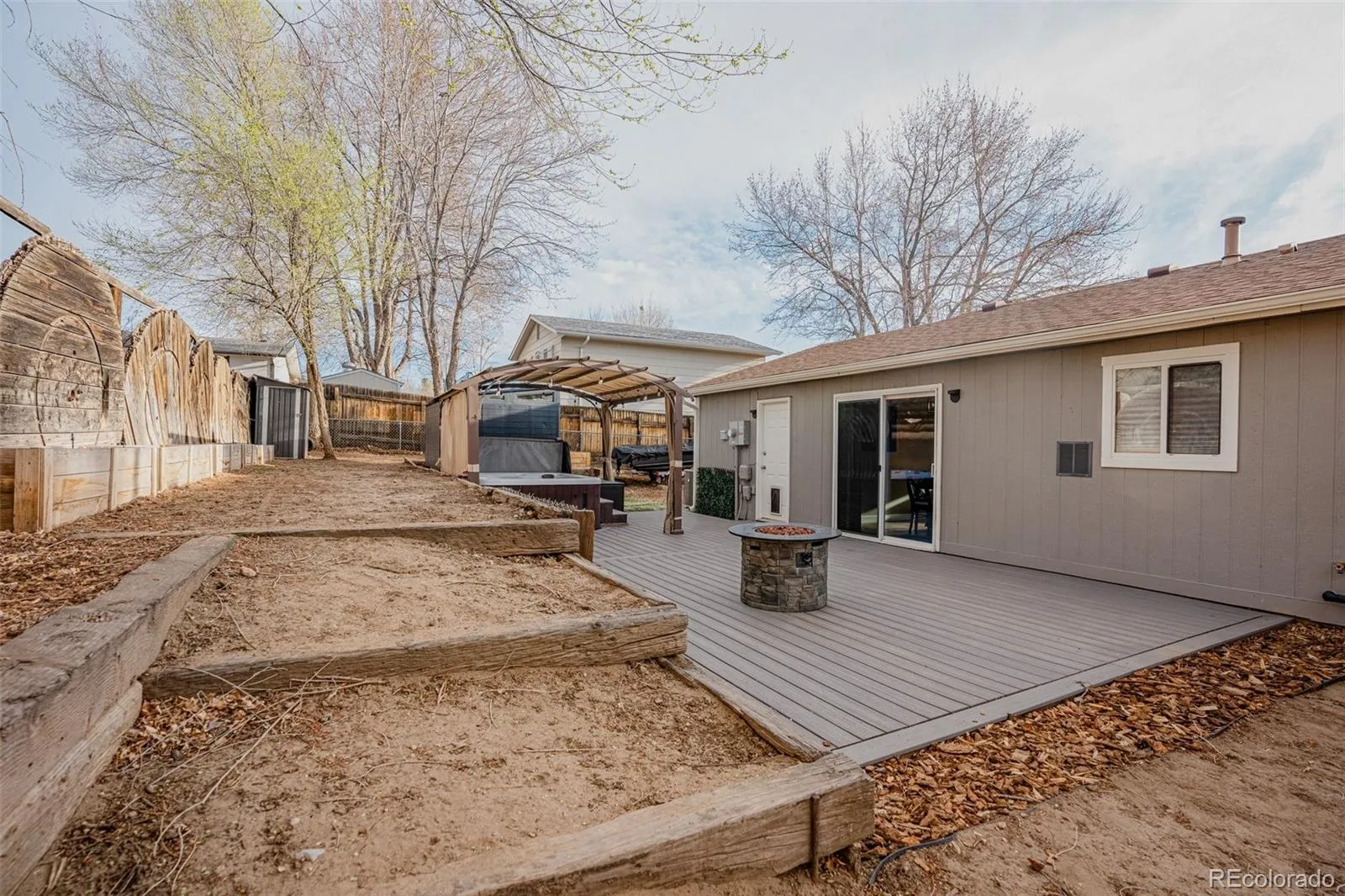 UPDATED RANCH • 3 BED • 1 FULL + 3/4 BATH • NEW GRANITE + QUARTZ • HOT TUB + COMPOSITE DECK + PERGOLA • NO HOA • NEW HVAC SYSTEM Step into the front living room with updated flooring, new front windows, and a functional layout that flows into the dining area with direct access to the backyard deck. The kitchen features new granite countertops, stainless steel appliances, new sink, updated and refinished cabinetry, and a newly built pantry for added storage. The primary bedroom offers a larger footprint, new carpet, and access to a fully updated 3/4 bathroom with luxury vinyl plank flooring, quartz countertop, new vanity, toilet, lighting, plumbing, and a walk-in shower. Two additional bedrooms include new carpet and updated windows, with a full guest bathroom featuring a new slab countertop and updated finishes. A dedicated office with built-in shelving adds flexible use space. Outdoor area includes a new composite deck, pergola-covered hot tub (included), tiered yard with garden beds on drip system, sprinkler system in front and back, and a storage shed (2024). Additional updates include new exterior paint, new siding, newer electrical panel, newer water heater, new air conditioner and furnace, new baseboards, and a Nest thermostat. Roof replaced in 2017. No HOA. Nearby Amenities: 0.3 mi to Wagner Park 0.6 mi to Sand Creek Trail 1.2 mi to Palmer Park 1.0 mi to Safeway 1.1 mi to King Soopers 1.5 mi to Powers Blvd access 2.5 mi to Peterson Space Force Base Information provided herein is from sources deemed reliable but not guaranteed and is provided without the intention that any buyer rely upon it. Listing Broker takes no responsibility for its accuracy and all information must be independently