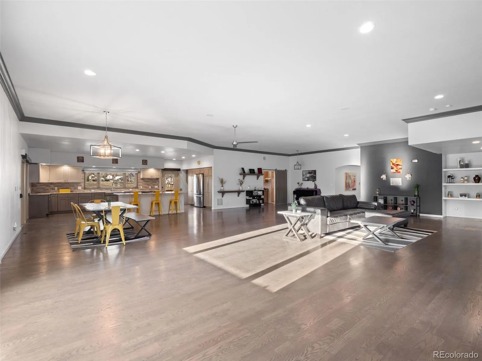 VIDEO + WALKTHROUGH TOUR: https://bit.ly/8415W80th ** Welcome to a rare opportunity in Arvada where thoughtful design, accessibility, and Colorado lifestyle come together on nearly a full acre. This fully custom, ADA-compliant home offers 3,294 square feet of beautifully designed living space all on one level with no stairs, providing exceptional functionality for wheelchair accessibility or anyone seeking effortless single level living. The expansive great room creates an impressive and flexible living space with room for multiple sitting areas, a dining table for 12+, and a remodeled gourmet kitchen designed for entertaining. The kitchen features stainless steel appliances, a large island, granite countertops, new cabinetry, glass block backsplash, generous pantry storage, and a five-burner gas stove. Built-in speakers throughout the home and outdoor patio make hosting large gatherings seamless. The private bedroom wing includes a spacious south-facing primary suite with two large closets, including one lockable for medical supplies, direct outdoor ramp access, and an ADA bathroom with roll-in shower and heat lamp. Two additional bedrooms offer flexible space for guests or offices and share a large 3/4 bath with roll-in shower. The utility room features a washer/dryer area, sink, ironing station, built-in desk, and abundant storage. Additional highlights include automatic doors and window treatments, voice-activated lighting, wide hallways, app-controlled HVAC and ADT systems, and a Tesla solar system. The oversized 9+ ft garage fits two full-size vehicles with extra storage, while a large gravel parking area accommodates RVs, recreational vehicles, or additional cars. Backing to Pomona Lake with easy access to trails, shopping, transportation, and the mountains, this home offers a rare blend of accessibility, privacy, and location just 20 minutes to Denver and Boulder. Furnishings optional, including hospital-style adjustable beds.
