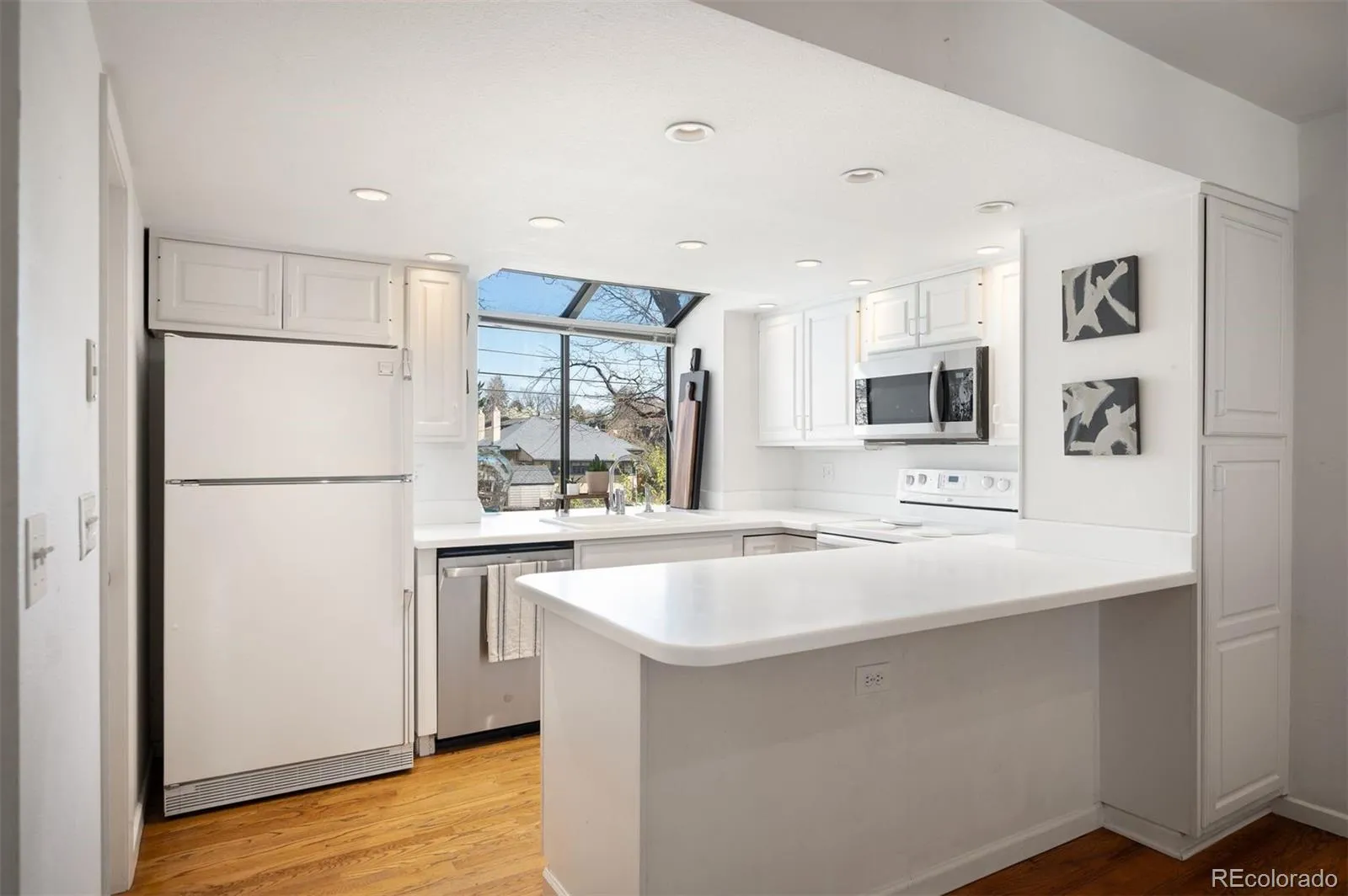 OPEN, LIGHT, SPACIOUS & RARE BACK-YARD in CHERRY CREEK NORTH – Offer a Perfect Balance of Architectural Significance, INDOOR-OUTDOOR LIVING and Opportunity for Your Personal Style. Located in a lush tree-lined community, this sun-drenched residence boasts soaring ceilings and an expansive floor plan framed by massive windows. An island kitchen with NEW 2026 STAINLESS MICROWAVE + DISHWASHER features a walk-in pantry and seamless flow into the dining area. The living room, anchored by a cozy gas fireplace, opens directly to a Large Deck and Private Backyard—True luxury and rarity’s for the neighborhood. The Private, Primary Suite is a sanctuary of comfort featuring a walk-in closet, spacious 5 piece bath and secondary air condition mini-split for precise-optimal climate control. A convenient laundry closet includes NEW 2026 Washer/Dryer. A Garden Level “basement” is full of natural light while hosting two spacious bedrooms, a full bath, and versatile flex space perfect for a media room, art studio, home gym, etc. The staggered design of the complex allows rare privacy in the backyard and easy access to the Oversized Two Car Garage with attic storage. 11 Unit Complex has Cost Effective & Efficient HOA.