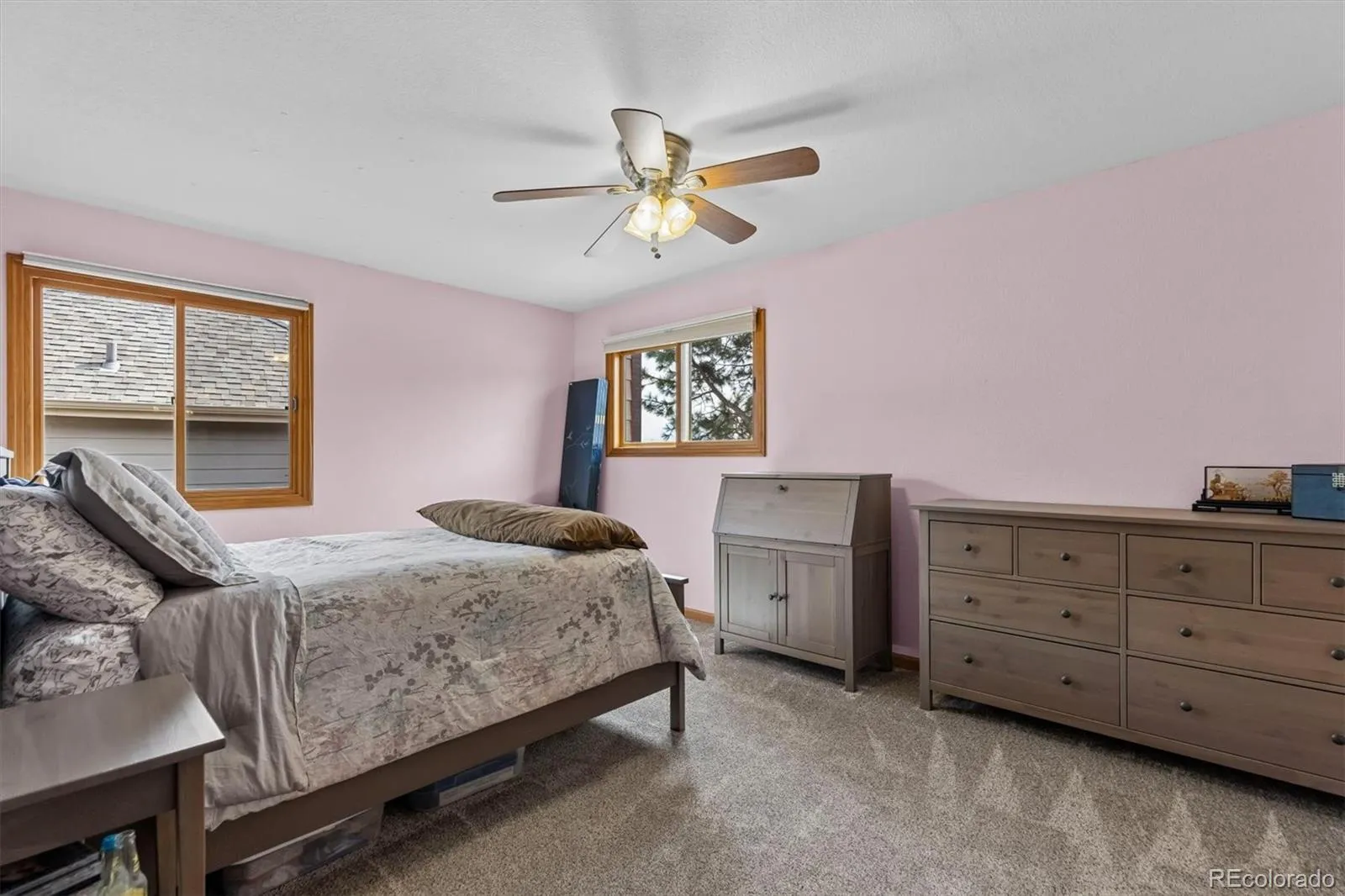 Perfectly situated in one of Golden’s most desirable neighborhoods, this exceptional 4 bedroom and 4.5 bathroom home captures the essence of Colorado living with sweeping views of the front range. Step inside to a light-filled main level where vaulted ceilings and newly refinished oak hardwood floors create an inviting sense of warmth and openness. Updated lighting adds a modern feel, while the formal living room welcomes you with a cozy gas fireplace. At the heart of the home, the chef’s kitchen is a true showpiece-expertly designed with granite countertops, an oversized island, butcher block prep station, wine refrigeration, and premium appliances. Seamlessly connected, the family room offers a warm atmosphere, centered around a second gas fireplace. Everyday living is elevated with a main-floor laundry and mudroom, complemented by advanced voice-activated home automation controlling lighting, climate, and security for effortless modern convenience. Upstairs, the primary suite is a private sanctuary. French doors open to an exclusive deck where breathtaking north-facing views extend toward Boulder. The spa-inspired en-suite bath features heated floors, five-piece design, and an oversized soaking tub. A versatile loft and dedicated office space provide flexibility for work and relaxation. Two additional bedrooms share a Jack-and-Jill bath, while a junior en-suite bedroom offers privacy and comfort for guests. The walk-out lower level offers expansive recreation space, a dedicated fitness area, and abundant storage-all opening to a covered patio. Car enthusiasts and hobbyists will appreciate the oversized three-car garage complete with new insulated garage doors featuring 7-foot openings. Residents have access to amenities including tennis, pickleball, basketball and volleyball, and playground. Surrounded by miles of trails, yet just minutes from downtown Golden, Denver, and world-class mountain destinations, this location offers an unparalleled Colorado lifestyle.