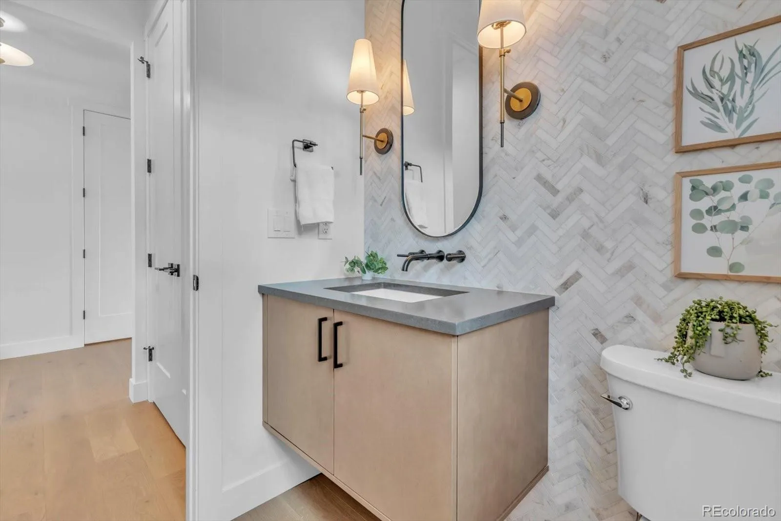 A dedicated main-floor office offers a quiet, stylish space to work or create, tucked away yet connected to the heart of the home.