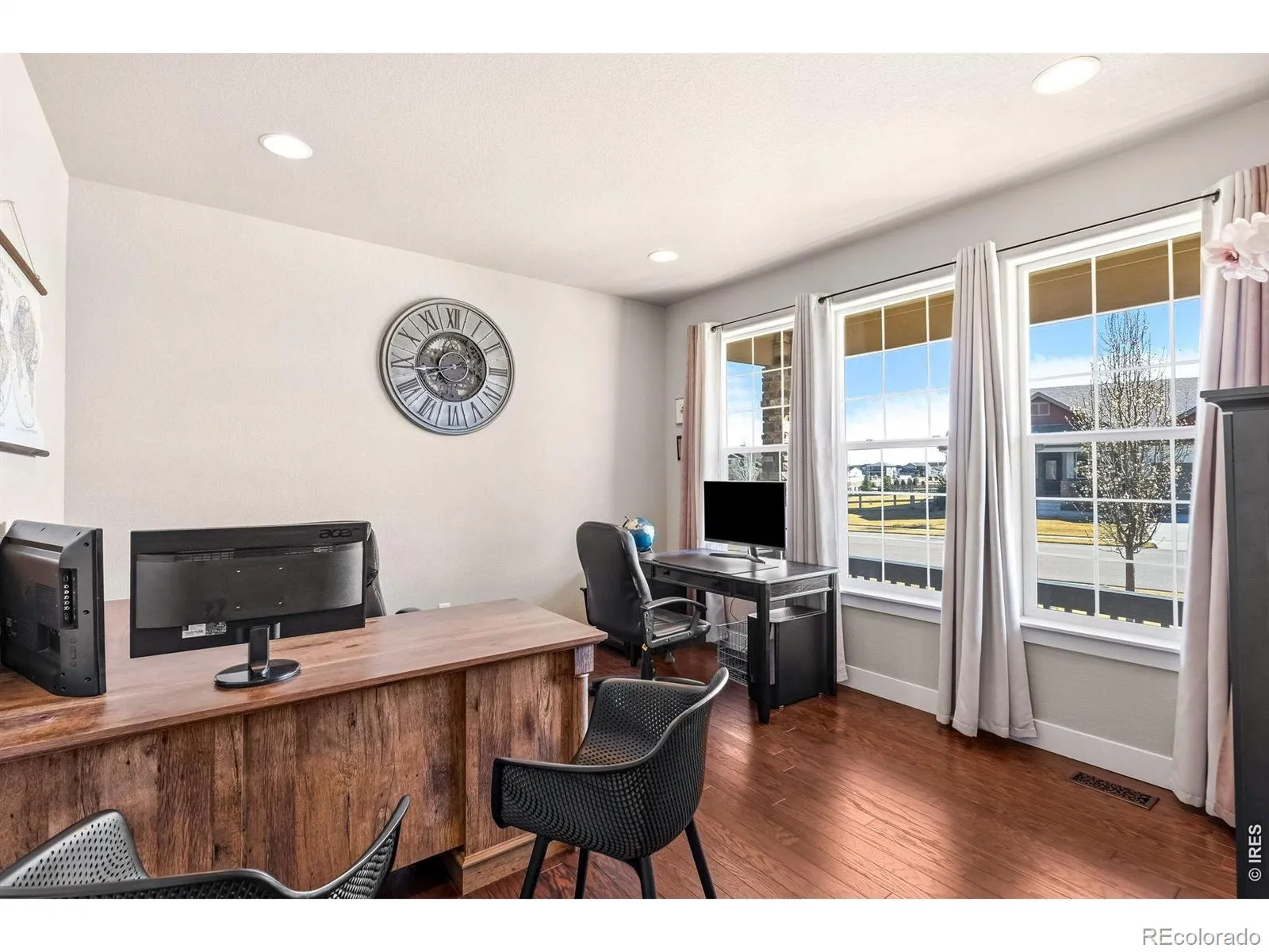 Space, privacy, and views all in one! Set on nearly three-quarters of an acre in a cul-de-sac, this two-story home offers a location that truly stands out. With gorgeous mountain views and a spacious lot surrounding you, the outdoor setting creates a peaceful backdrop that enhances everyday living and gives you room to spread out. Inside, you’ll find quality finishes at every turn and newer major components, ensuring comfort and peace of mind from day one. Engineered hardwood flooring extends throughout the main level, from the foyer to the kitchen that features granite countertops, stainless steel appliances, subway tiled backsplash, a pantry, and a large center island, all of which come together to create a space with plenty of prep room and storage. A comfortable living area includes a fireplace, which serves as the centerpiece for gatherings and relaxation. Multiple dining areas are available to fit your routine, with a separate dining room for more formal gatherings, or a breakfast nook that overlooks the backyard. A dedicated office by the entrance provides a quiet and comfortable spot for productivity. The upper level includes a loft-style family area and four generously sized bedrooms, creating a comfortable separation from the main living spaces. The primary suite boasts a larger space and includes a 5-piece ensuite bath and a walk-in closet. The unfinished basement offers massive potential for expansion, storage, or customization, giving you the freedom to create additional living space to fit your needs. Step outside to a covered deck perfect for relaxing or entertaining, along with a dedicated firepit area that makes the most of the open space and views. The 3-car garage is finished with epoxy floors for a clean, polished look while offering plenty of room for vehicles and storage. Located in Hunters Crossing, this home puts you near the area’s best dining, shopping, and entertainment, plus quick routes to Windsor, Greeley, and Fort Collins.