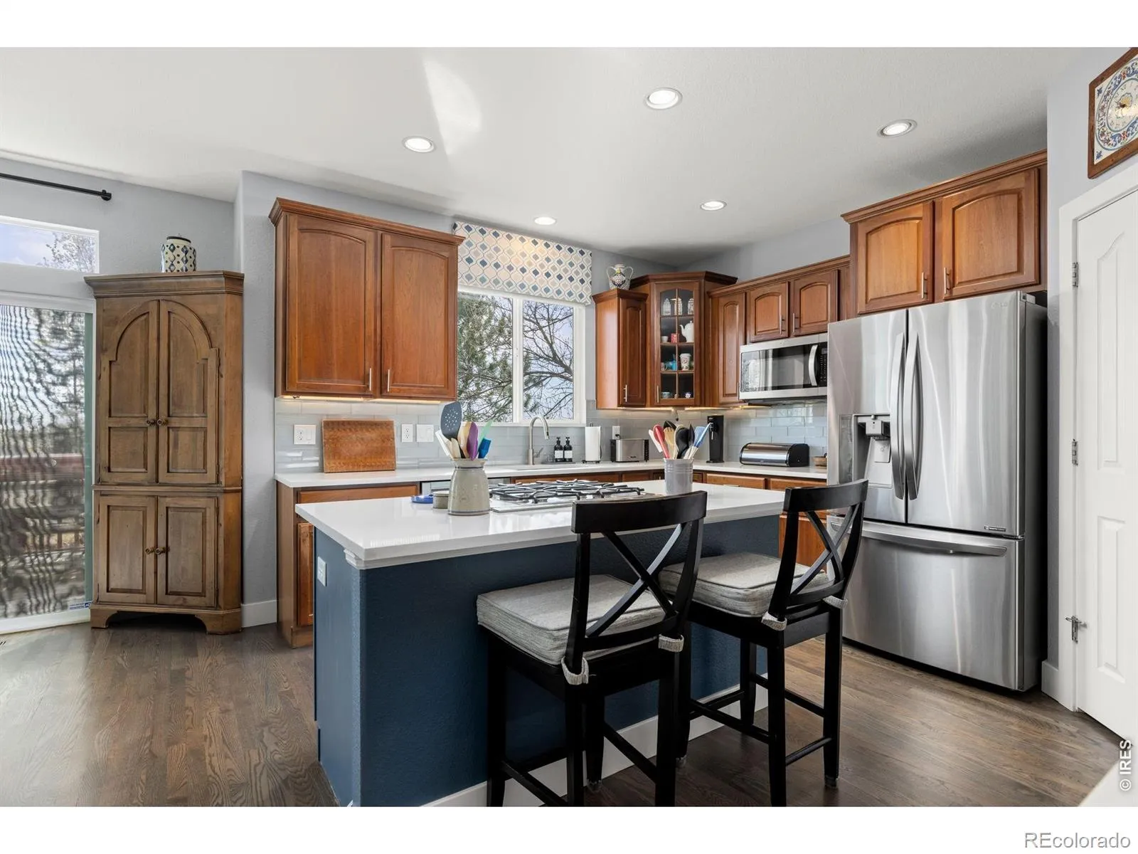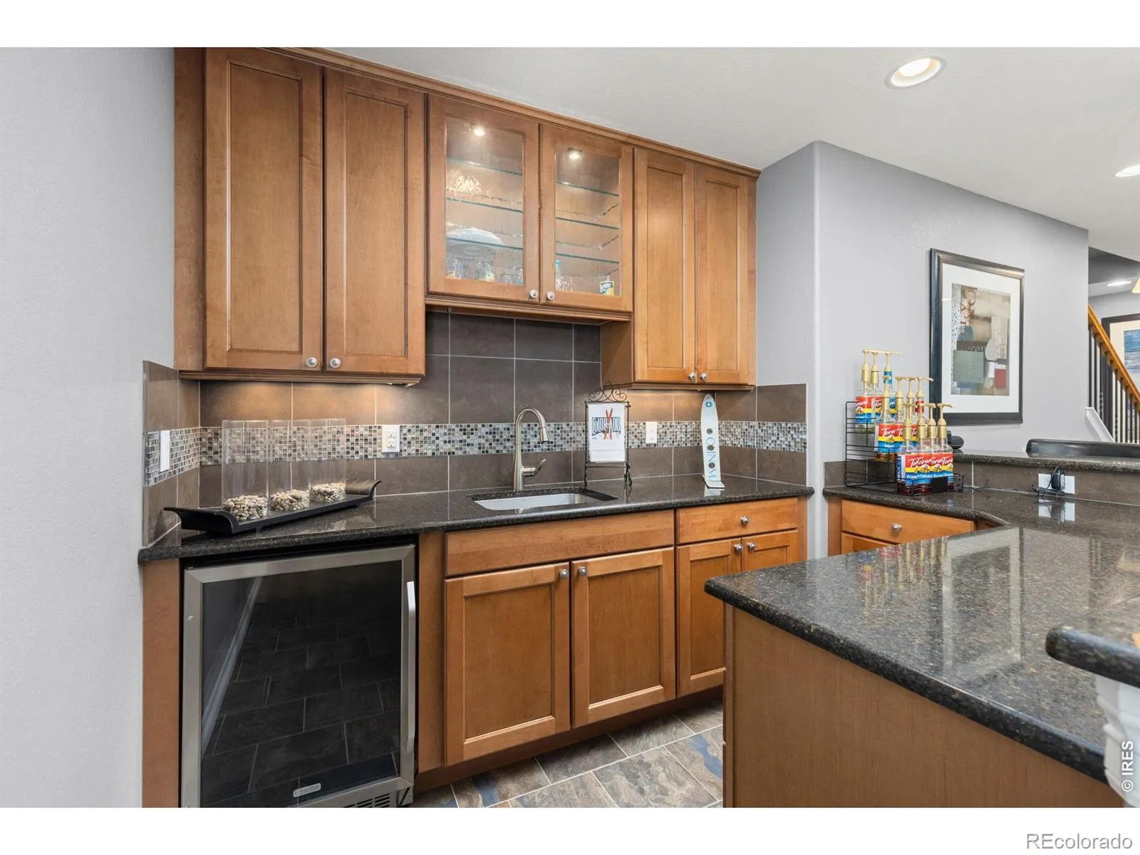Beautifully updated home in the highly sought-after Red Leaf neighborhood, backing directly to a walking path with private gate access and close to parks, schools, and the Paul Derda Recreation Center. The main level offers a functional layout, including a dedicated office with a two-sided gas fireplace shared with the living room. The kitchen features both formal and eat-in dining options, ideal for everyday living and entertaining. Natural light fills the home. Upstairs, the spacious primary suite includes an upgraded bathroom and a comfortable retreat feel, with well-sized secondary bedrooms nearby. The garden-level basement adds exceptional versatility with a wet bar, workout room, additional living space, and unfinished square footage for storage or future expansion-giving buyers flexibility for future needs. Step outside to enjoy a thoughtfully designed backyard with a deck, flagstone patio, and gas fire pit-perfect for relaxing or hosting-with direct access to the walking path for an extended outdoor lifestyle. Additional features include a leased solar system for energy efficiency, EverLights exterior lighting for hassle free customizable holiday and seasonal lighting, and a 3-car garage with epoxy floors, built-in storage, and workbench. This home offers a rare combination of usable space, thoughtful upgrades, and a location that connects seamlessly to the surrounding community-making it as functional as it is enjoyable day to day.