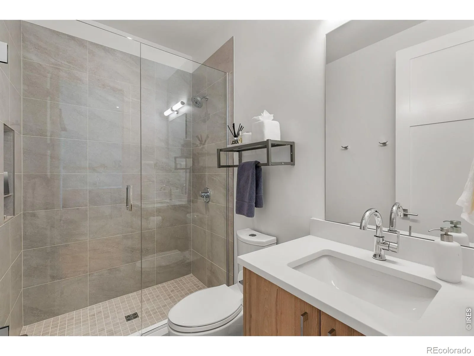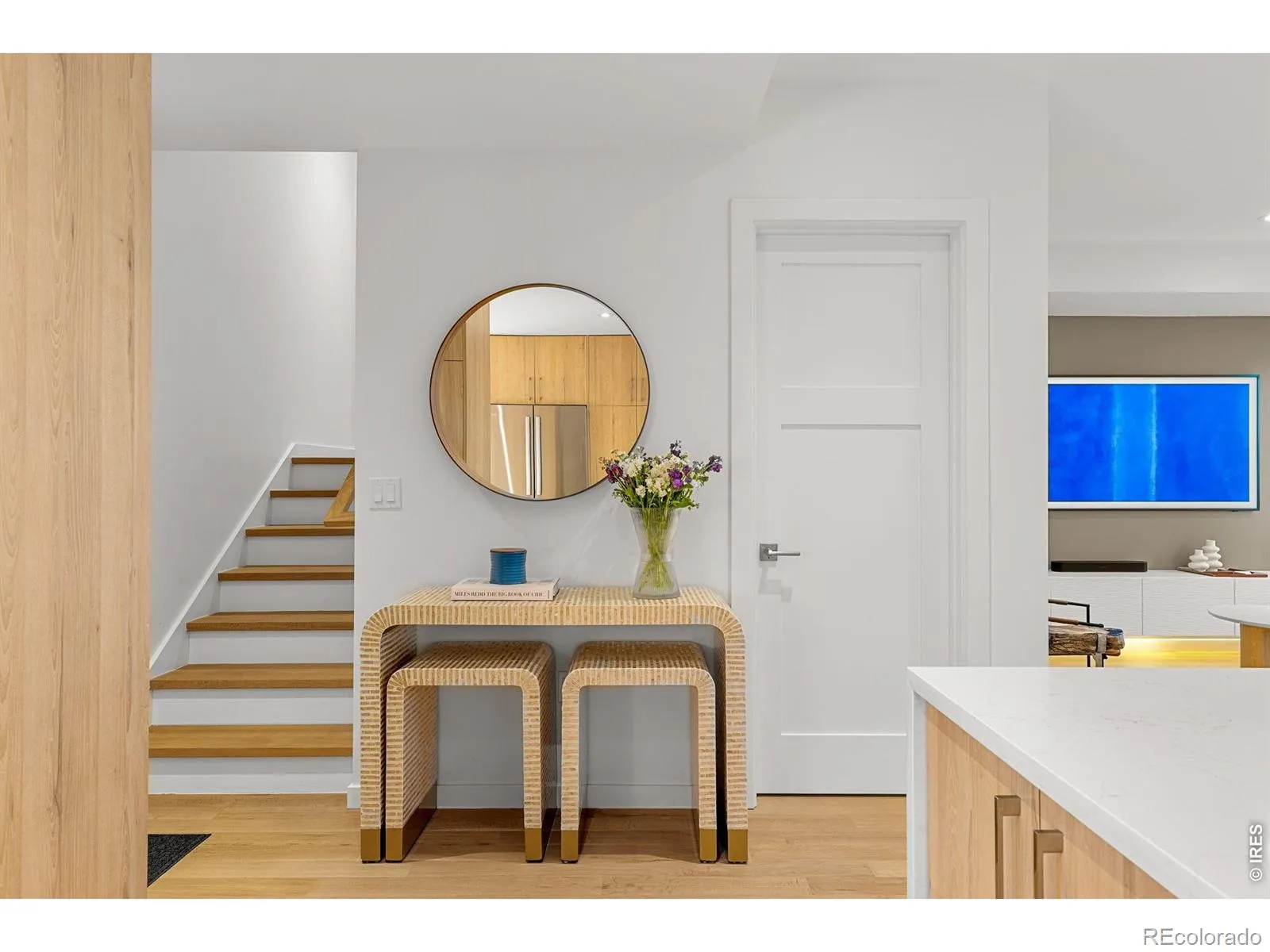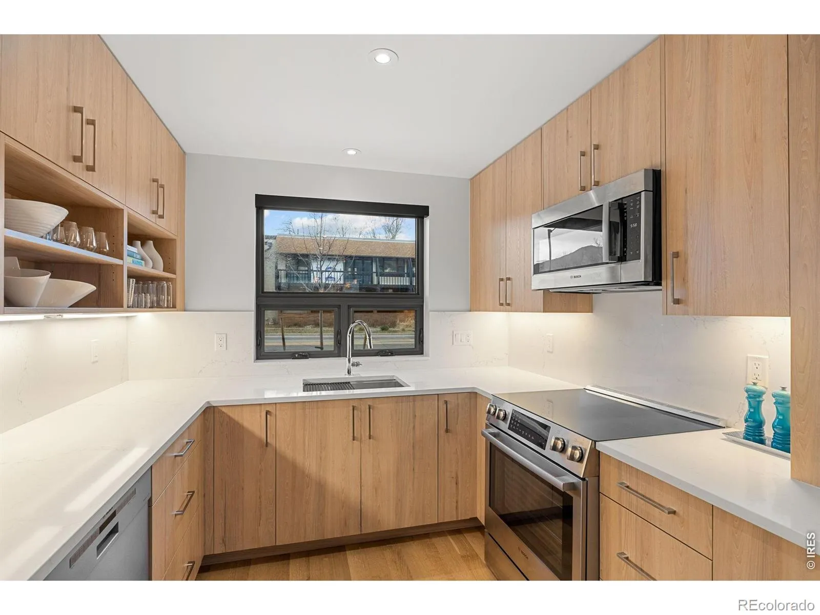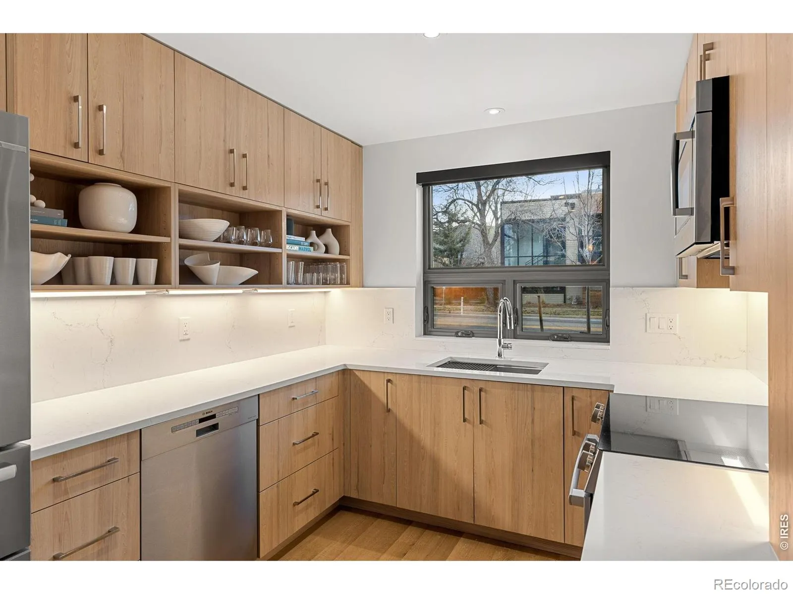 Experience the pinnacle of modern Boulder living in this exceptional, low-maintenance dwelling, where architectural sophistication meets unobstructed Front Range views. Part of the exclusive Flatiron Vista collection, this home lives like a single-family residence, featuring a private entrance, forecourt gardens, & a striking facade of cedar, metal, & stucco. Inside, walls of windows bathe the open-concept floor plan in natural light, seamlessly connecting the chef’s kitchen to the spacious living & dining areas. The interior has been thoughtfully elevated with high-end designer touches, including a custom floating media console with integrated lighting & a 75-inch framed TV with concealed wiring for a sleek, gallery-like aesthetic. The living experience spans three meticulously planned levels, each with designated outdoor space. Smart home technology manages the convenience of custom motorized shades throughout, alongside Kasa smart lighting & a comprehensive Ring security suite. The primary suite is a luxurious haven, boasting a spa-inspired bathroom & an expansive walk-in closet with custom organization & soft-close cabinetry. Two secondary bedrooms feature premium Elfa shelving complimented by the high-performance LG steam laundry center. Entertainment reaches new heights in the top-floor family room and its adjacent jaw-dropping rooftop terrace. Complete with a wet bar, floating shelving, & natural gas connection, this space is perfectly equipped for sunset grilling or cozy evenings against the backdrop of the iconic Flatirons. Extra storage & a private, detached garage showcasing an electric car lift for 2-car garage parking downtown add to the convenience and functionality of the modern design. The phenomenal central location is walking distance to the Google campus, Pearl Street Mall, & staples like Whole Foods & Target, with growing, vibrant surroundings. This home offers an unparalleled urban lifestyle with the quiet luxury of a private retreat.