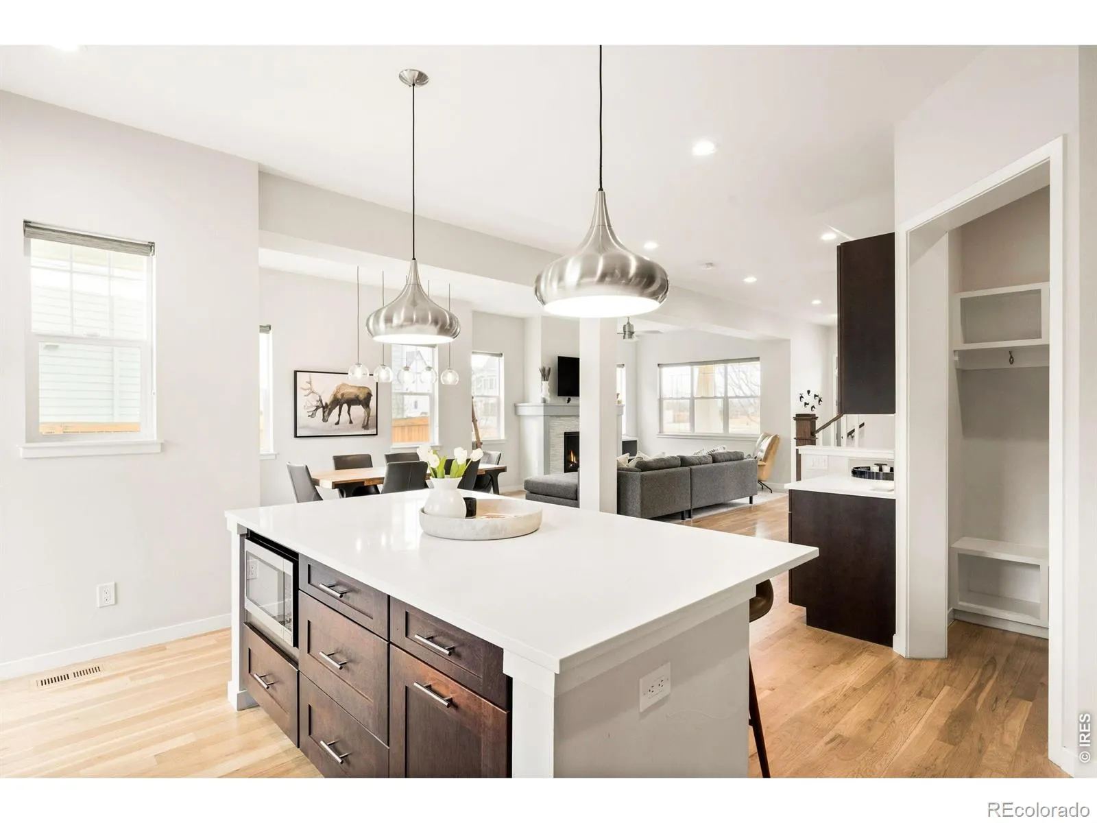 Set within Erie Village, a thoughtfully designed community where no two homes share the same elevation or color palette, this impeccably maintained, original-owner custom residence blends design, functionality & lifestyle in all the right ways. Positioned to capture sweeping foothills & Flatiron views, the home offers a rare combination of privacy, natural light & immediate access to Boulder-bound trails just moments away & ideal for daily walks, biking. Inside, an open-concept layout is elevated by extensive upgrades, including newly refinished wood floors & hardwood extended throughout the staircase, upper-level bedrooms & hallways. Skip trowel wall texture, curated finishes & exceptional care throughout create a home that shows beautifully at every turn. Morning & afternoon light pour through the space, enhancing both warmth & livability. The main level features a sun-filled office, while the upper level offers a flexible loft originally designed as a fourth bedroom, easily converted if desired. All bedrooms feature vaulted ceilings, with a well-designed layout including a private ensuite for the 2nd bedroom, a hall bath serving the 3rd bedroom & loft, & walk-in closets throughout. The primary suite is a true retreat with a private covered balcony oriented toward mountain views & a thoughtfully designed walk-in closet with direct access to the upper-level laundry room. Additional highlights include whole-house water filtration, a rare 4-car finished tandem garage with 11′ ceilings & built-in storage, & a beautifully designed backyard with a built-in firepit, perfect for entertaining or enjoying Colorado evenings under the stars & front-row seats to fireworks! This is a home where thoughtful upgrades, architectural intention & everyday livability come together seamlessly all within one of Erie’s most distinctive & sought-after neighborhoods with community playgrounds & parks. Enjoy Erie’s award-winning 63,000 SF. Community Center & 20,000 SF Community Library.
