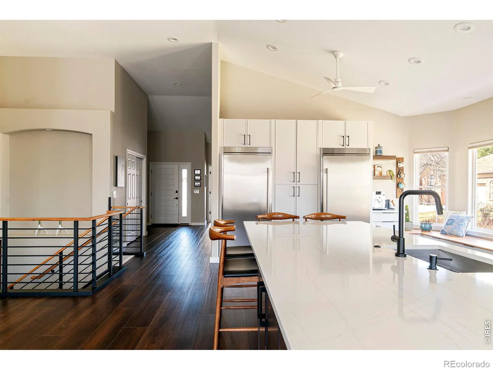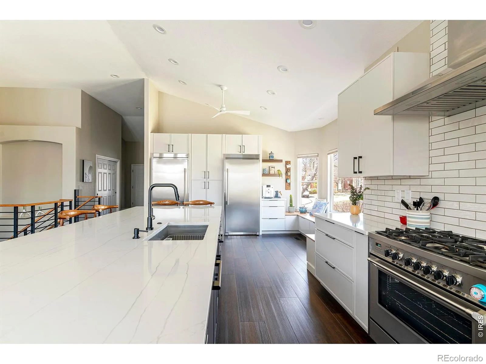 Thoughtfully Reimagined Intentionally Designed Effortlessly Livable. A completely renovated patio home where every surface has been thoughtfully redesigned with exceptional attention to detail and high-quality finishes throughout. The interior features a chef-inspired kitchen with modern micro-shaker style cabinetry, full-extension soft-close drawers and doors, quartz countertops, a large center island, and professional-grade appliances including a Verona 6-burner gas range.The living room is filled with natural light from dramatic floor-to-ceiling windows and soaring vaulted ceilings, creating a bright, open living environment that seamlessly connects to the outdoor living spaces. The main level continues with a spacious primary suite offering a peaceful retreat, enhanced by expansive windows and vaulted ceilings that create an airy, calming atmosphere. A dedicated office and secondary bedroom provide flexibility, while custom storage solutions throughout the home enhance organization and everyday functionality.The fully finished lower level adds versatility with two additional bedrooms, a bathroom, gym, and workshop. Outside, professionally designed xeriscape landscaping, a custom patio, and a built-in gas firepit create an inviting setting for relaxing or entertaining-extending the home’s living experience outdoors. Designed for comfort and convenience, this home is ideally suited for a low-maintenance, lock-and-leave lifestyle in one of Longmont’s desirable neighborhoods.A comprehensive re-imagination focused on quality, design, and livability provides peace of mind and long-term value. From the redesigned kitchen and baths to updated systems, lighting, flooring, and finishes, the home has been meticulously improved to deliver elevated design and everyday functionality.A truly turnkey, fully renovated home where thoughtful design, quality craftsmanship, and everyday comfort come together seamlessly.