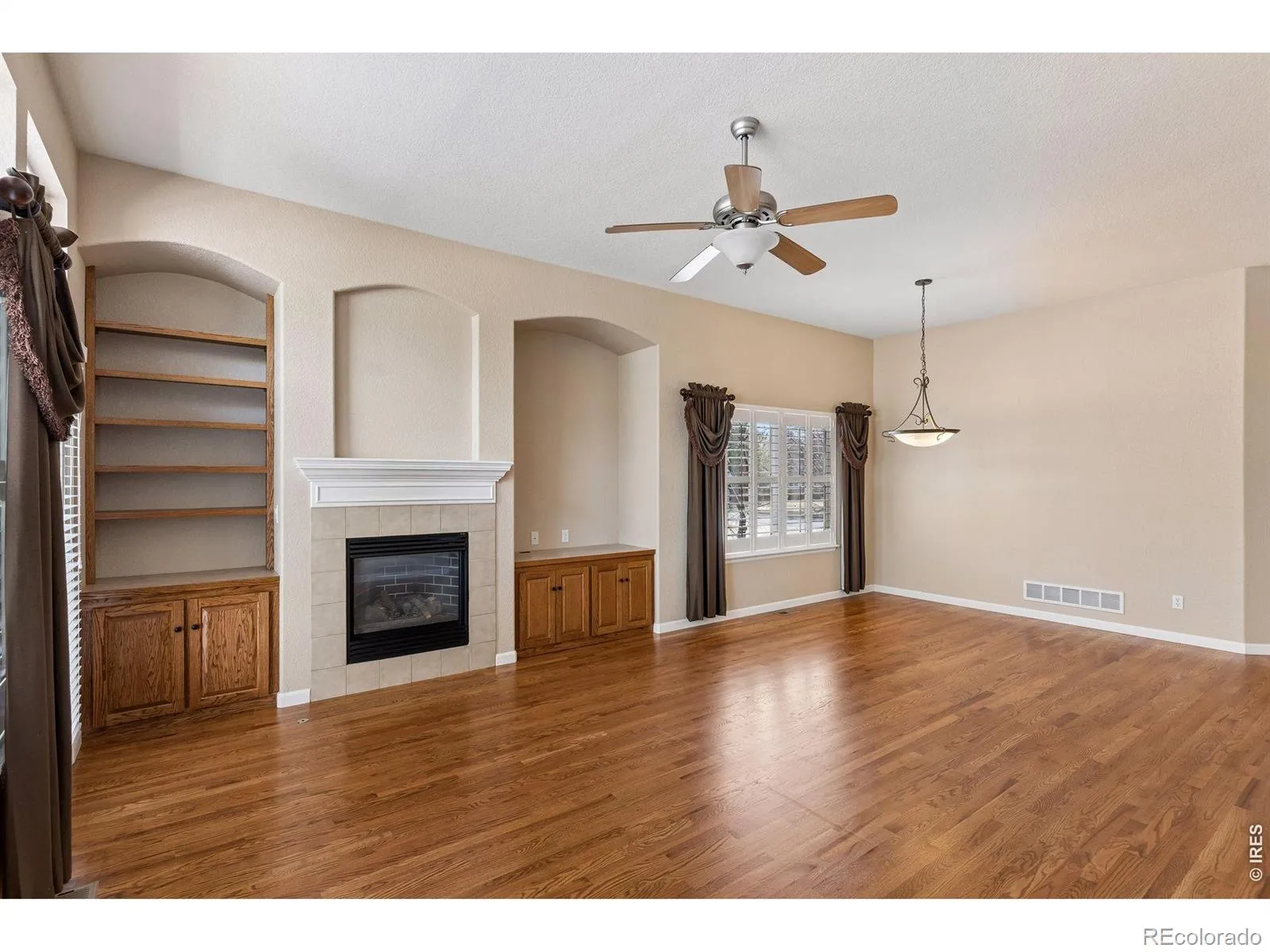 This impeccably maintained patio home in the highly sought-after Golden Bear community offers the ultimate low-maintenance lifestyle – the HOA handles front yard mowing, snow removal, and even the backyard, thanks to this corner lot location. Step inside to gorgeous, updated wood floors, an open-concept layout with soaring ceilings, and a cozy gas fireplace perfect for Colorado winters. The main-level primary suite features a luxurious 5-piece bath and walk-in closet. A flex room serves beautifully as a home office or craft space. Updated mechanicals and a new Trex deck provide true peace of mind. The full, unfinished basement (1,692 sf) is a blank canvas ready for your vision – and there’s no shortage of storage space. Spend summer days at the community pool and evenings on your private deck. Parks, trails, golf, and mountain views are right outside your door. Single-story ranch living rarely comes available in this neighborhood. This isn’t just a home, it’s a lifestyle!