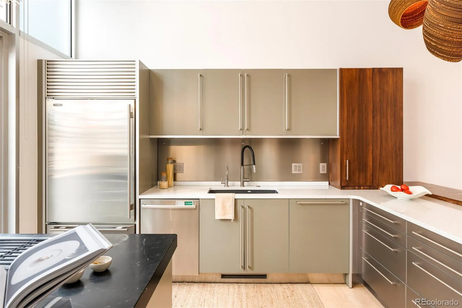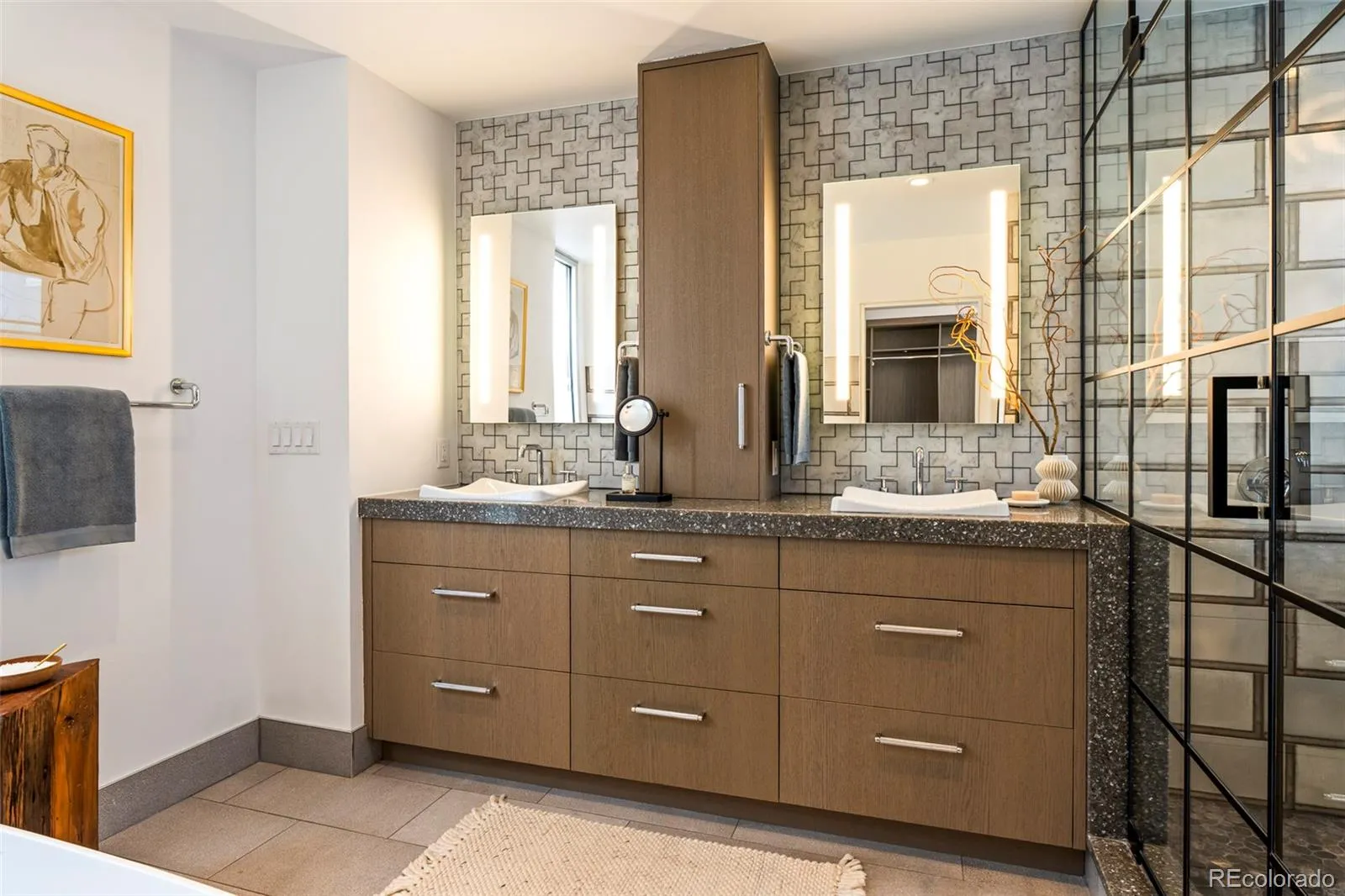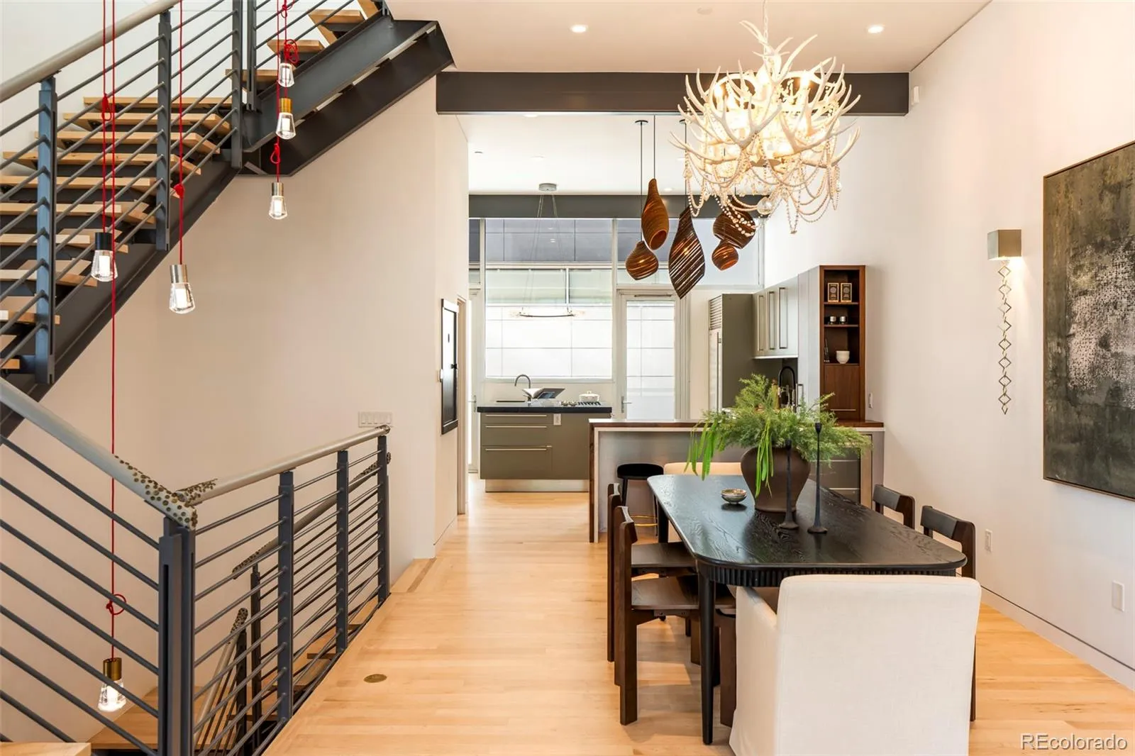 Set within the intimate 13-unit Art House Lofts community in Denver’s Riverfront Park neighborhood, tucked directly behind the Museum of Contemporary Art, this 3-bedroom, 3.5-bathroom townhouse spans 3,288 square feet across four levels. The 2018 designer renovation was featured in Colorado Homes & Lifestyles, and the details make it clear why.