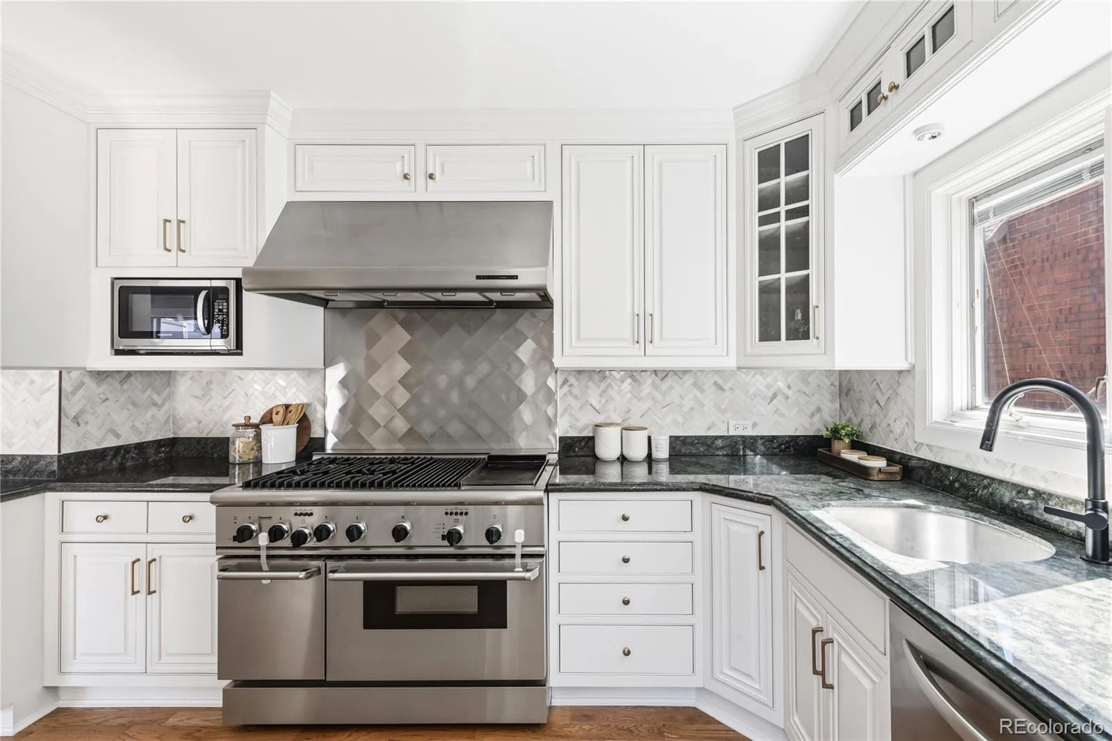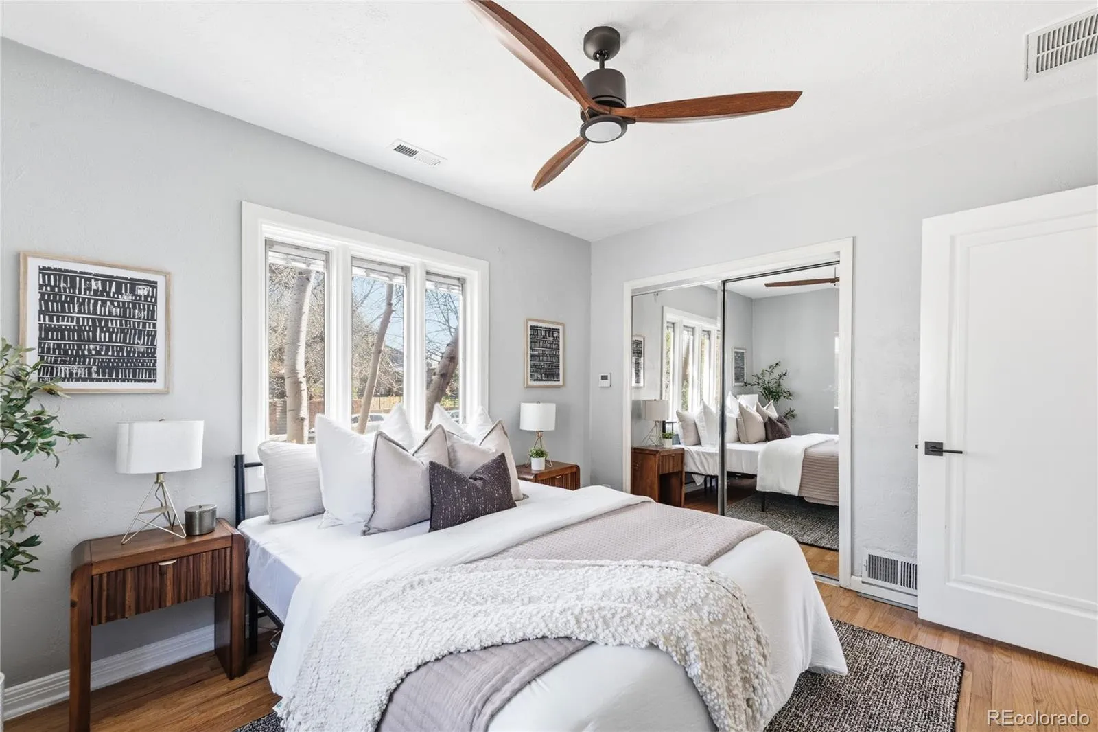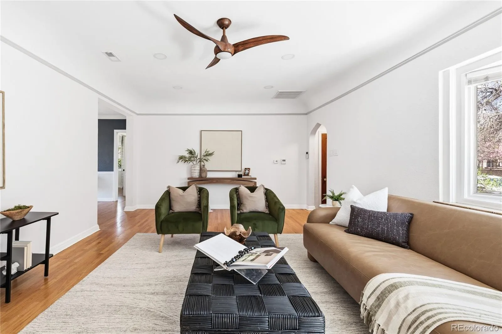 Welcome to 1265 South Elizabeth Street- a beautiful brick Tudor located on a picturesque tree-lined street in one of Denver’s most beloved neighborhoods. This 4-bedroom, 2-bath home offers a perfect blend of original architectural charm and thoughtful updates. Beautiful original hardwood floors throughout main level. French doors open to a gorgeous deck and tranquil backyard, which includes a lower-level patio with pergola and is complete with a very rare 3-car detached garage (with bonus storage room)! The fully finished basement provides even more living space, featuring a large family room, two bedrooms, a full bath, and plenty of storage space. Recent upgrades include new egress windows in both basement bedrooms (2025), remodeled kitchen (2025), insulation with air sealing for energy efficiency (2025), restored backyard deck (2025), renovated main floor bathroom (2025), recessed can lighting (2024), new refrigerator (2025), new water heater (2023), and more. This turn-key home is a rare find in the Cory-Merrill neighborhood- don’t miss it!