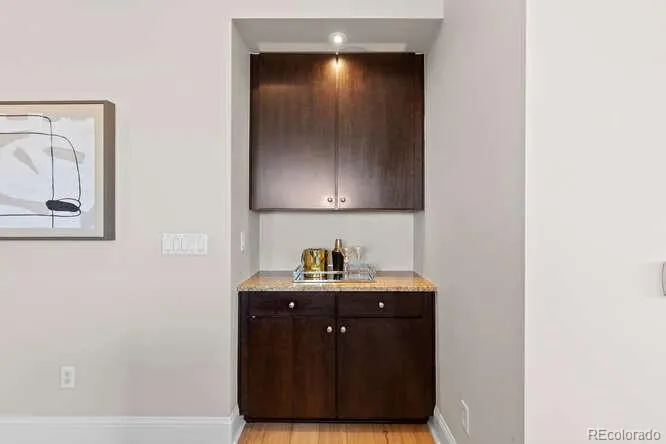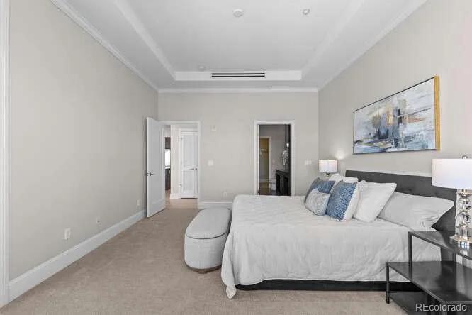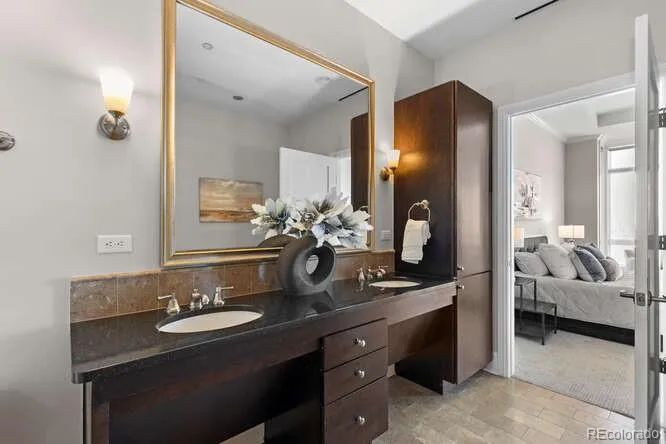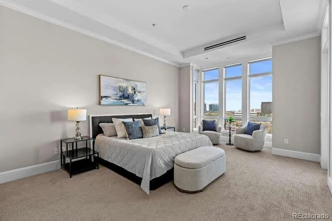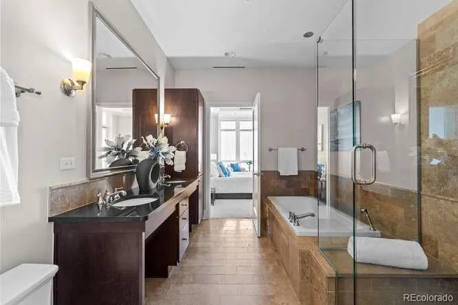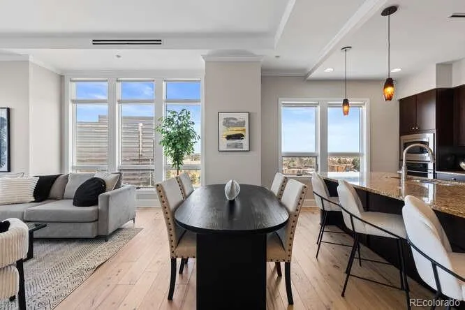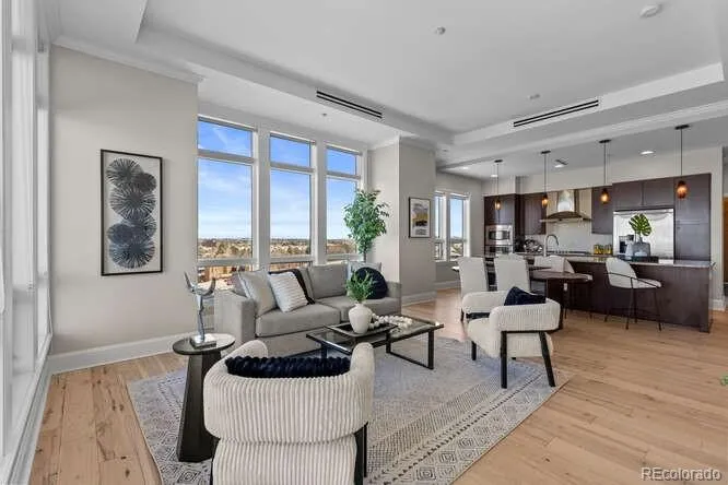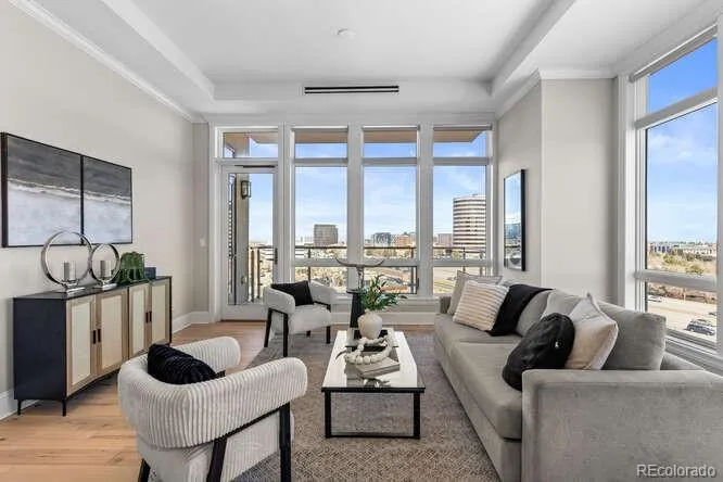 Offering a seamless blend of sophistication and convenience, this sixth-floor corner residence in the East Tower at The Landmark delivers a true lock-and-leave luxury lifestyle. Expansive windows frame both city and mountain views while filling the home with abundant natural light. Recent updates include new flooring and carpet, enhancing the residence’s fresh and move-in ready appeal. The thoughtfully designed open layout supports comfortable everyday living as well as effortless entertaining. The kitchen is equipped with stainless steel appliances, gas cooktop, granite countertops with an oversized island flowing into the main living and dining areas. A covered patio extends the living space outdoors and is accessible from both the primary suite and the main great room, creating a desirable indoor-outdoor connection. The primary suite offers a private retreat with a spacious walk-in closet and an en-suite bath featuring dual vanities and a soaking tub. A secondary bedroom and full bath provide flexibility for guests, workspace, or additional living needs. Residents of The Landmark enjoy resort-style amenities including concierge services, secure access, fitness center, pool and spa, guest suites, and community gathering spaces. Ideally located in the Denver Tech Center, the property offers immediate access to dining, shopping, entertainment, and light rail, supporting a low-maintenance lifestyle with exceptional urban convenience.